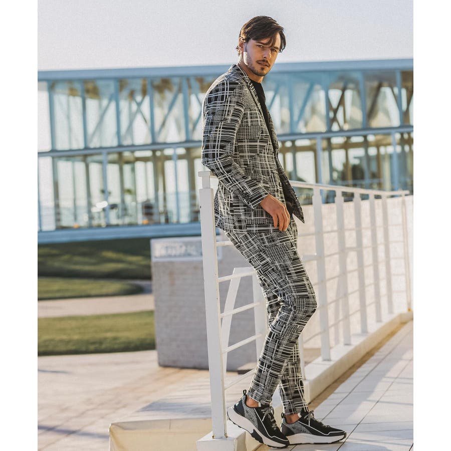 同生地のジャケットと合わせれば洗練されたセットアップスタイルに。