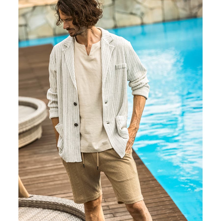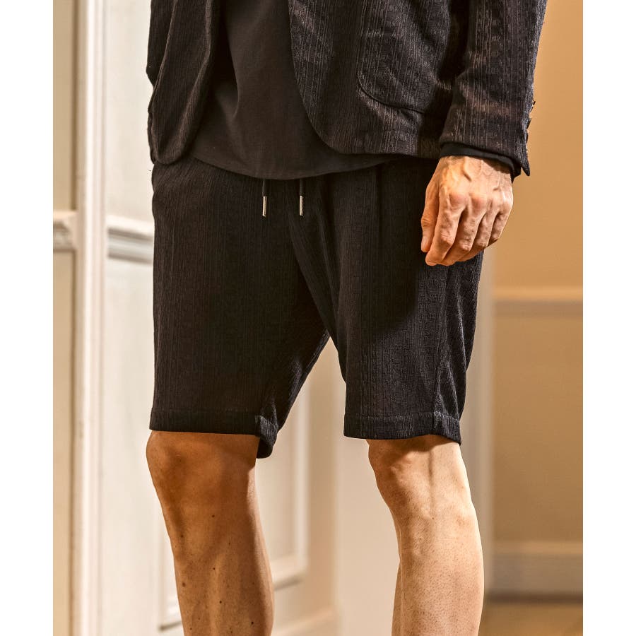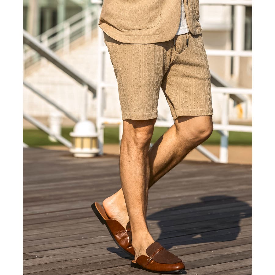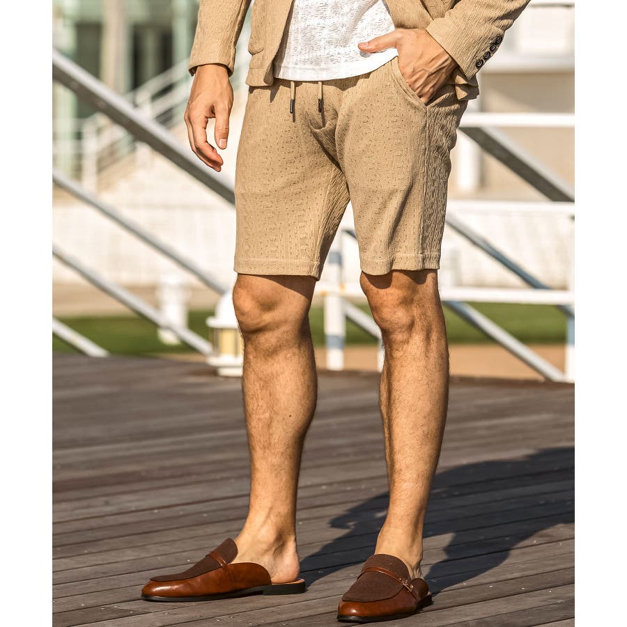 落ち感のある麻混素材をジャガード編みで表情豊かに仕上げたハーフスラックス。