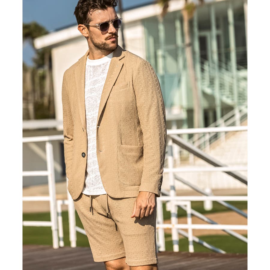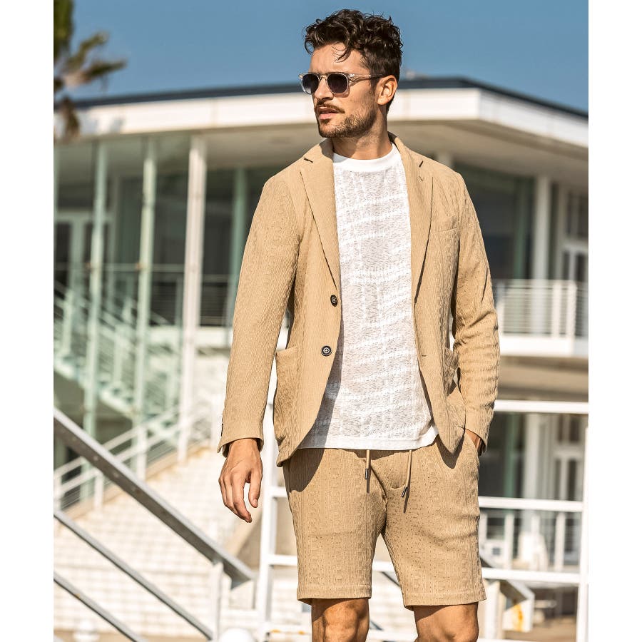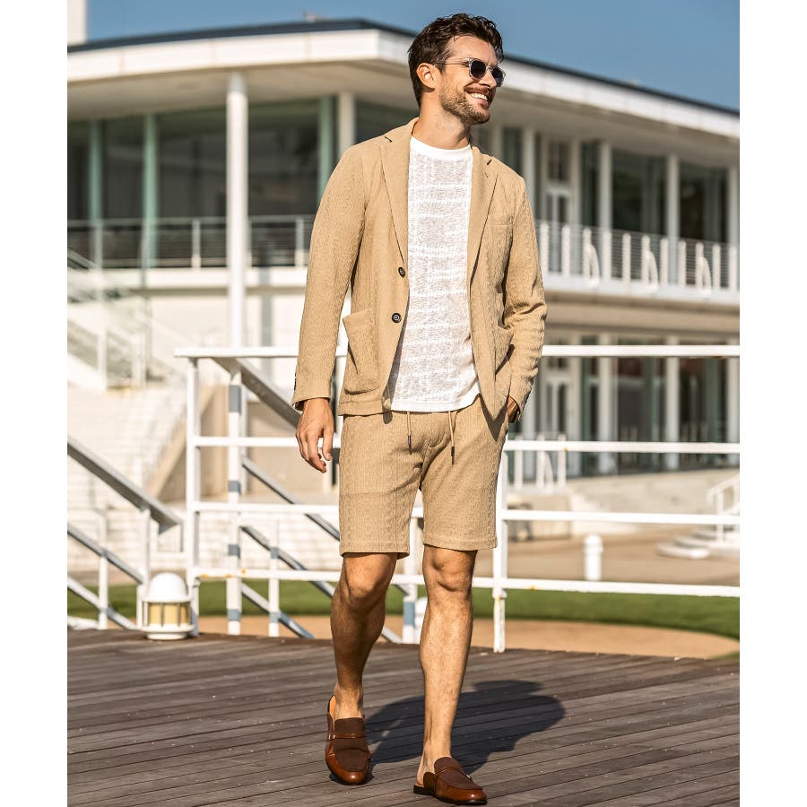 同生地のダブルジャケットやシングルジャケットと合わせれば、上質なセットアップスタイルに。