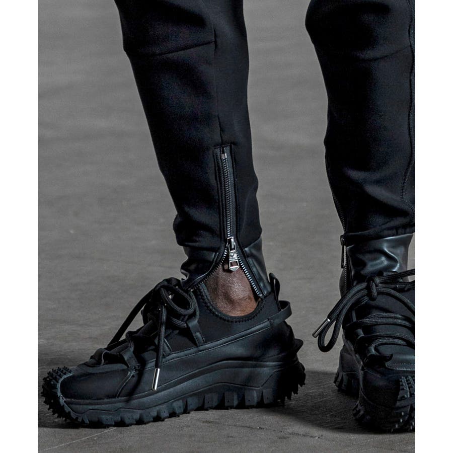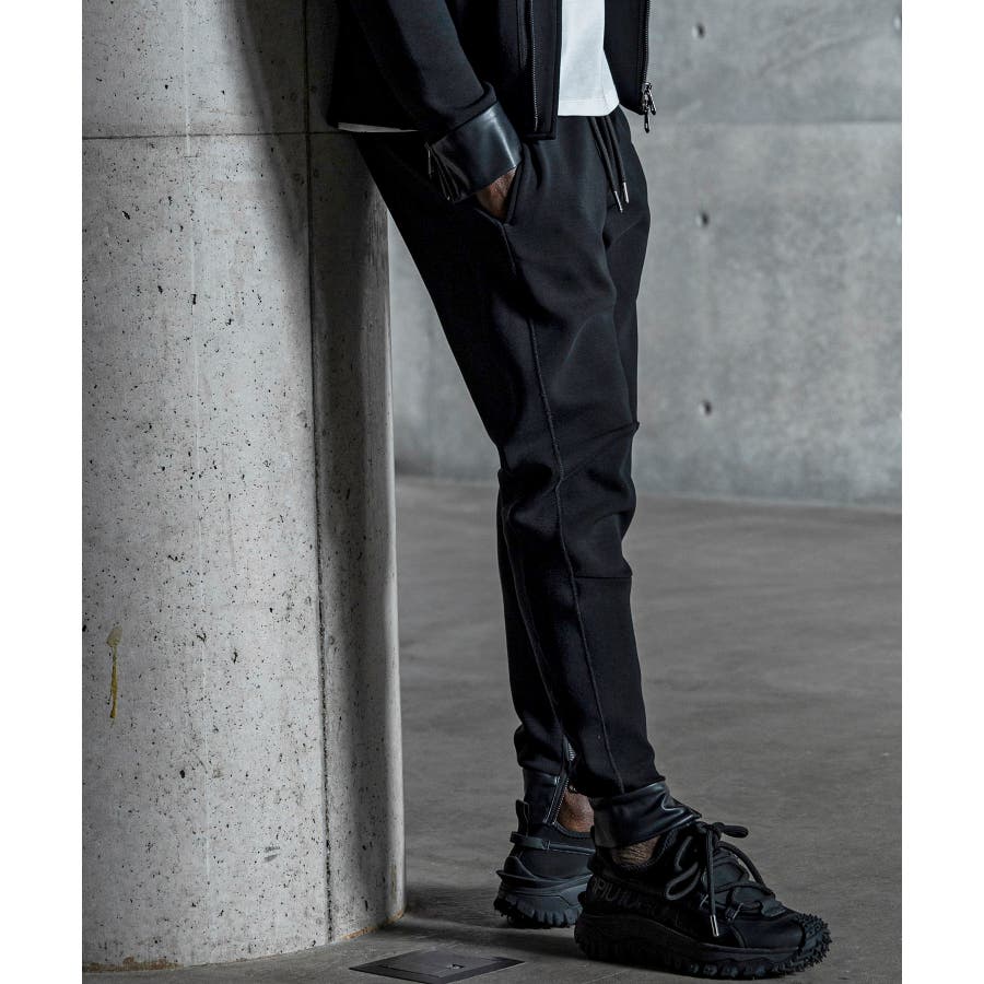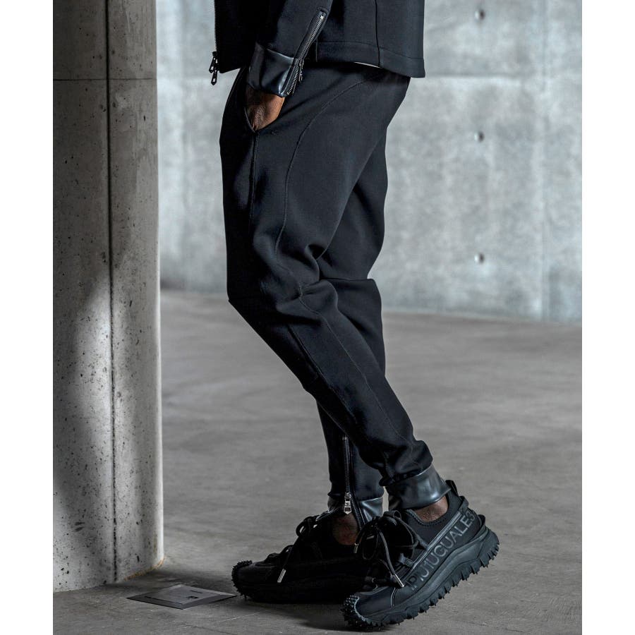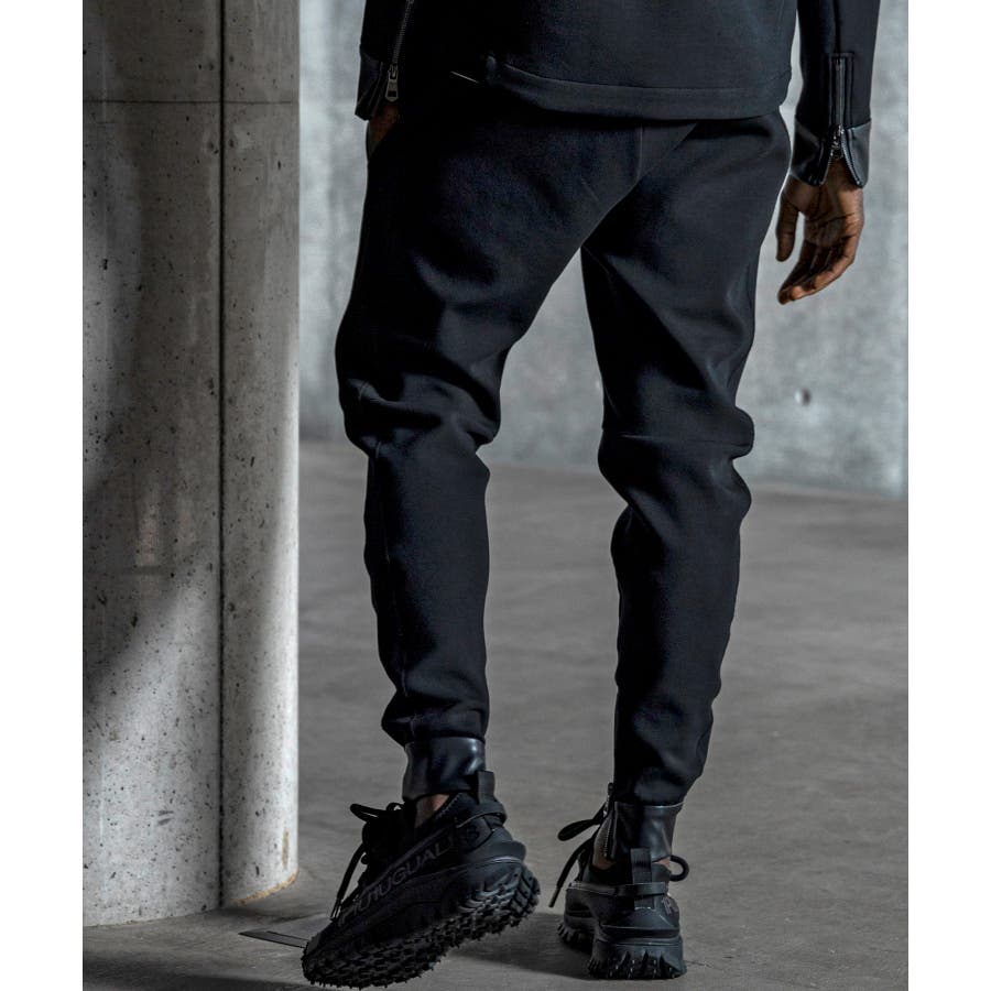 バイカーパンツの無骨なディテールと、現代的なテック素材を融合させたジョガーパンツ。