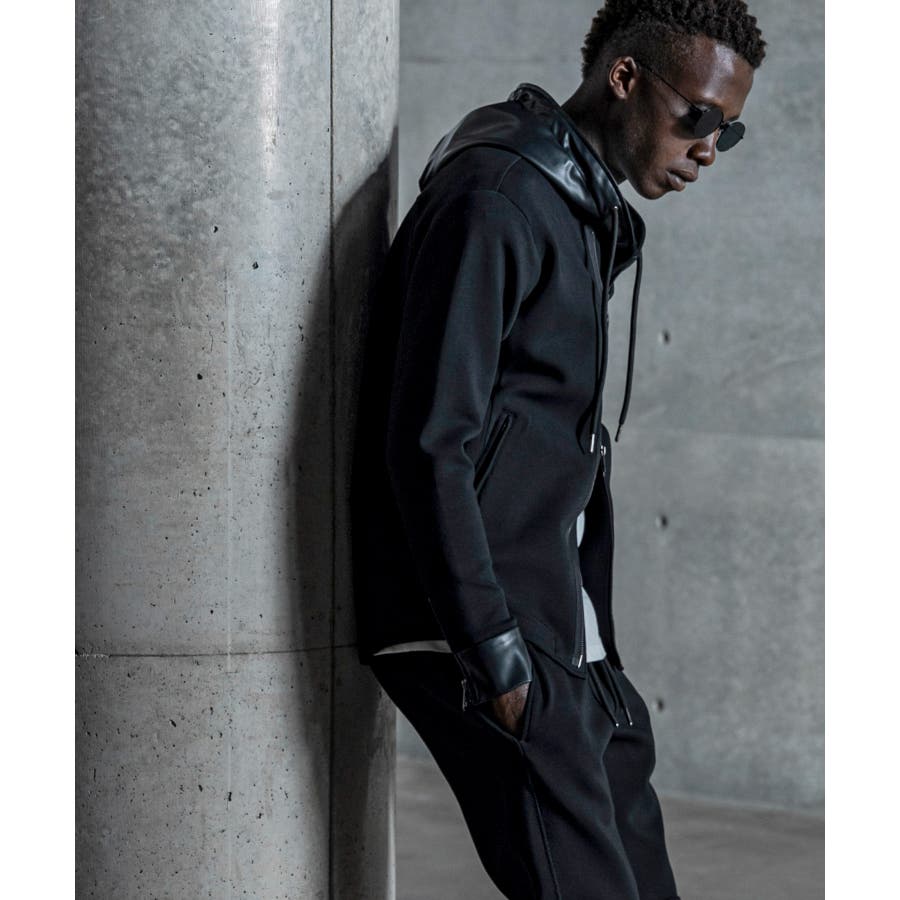 同デザインのバイカーフーディとのセットアップスタイルにも注目です。