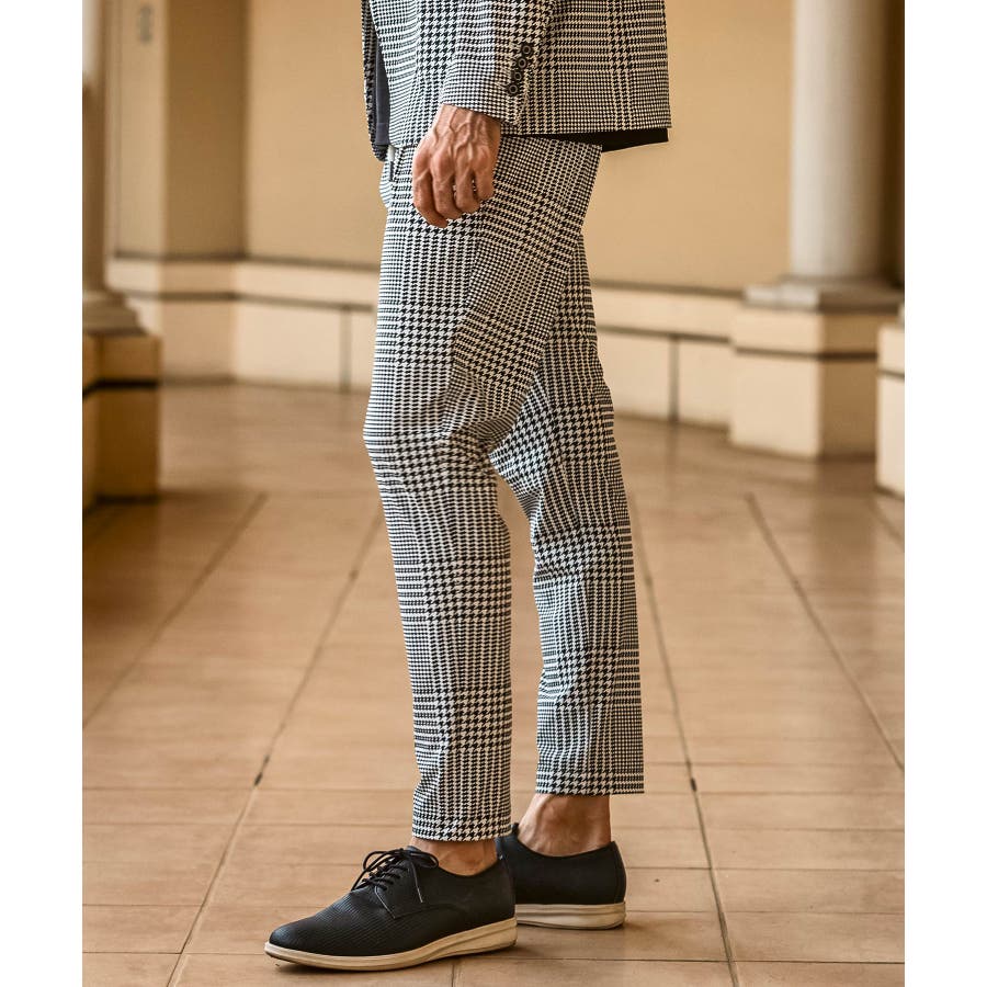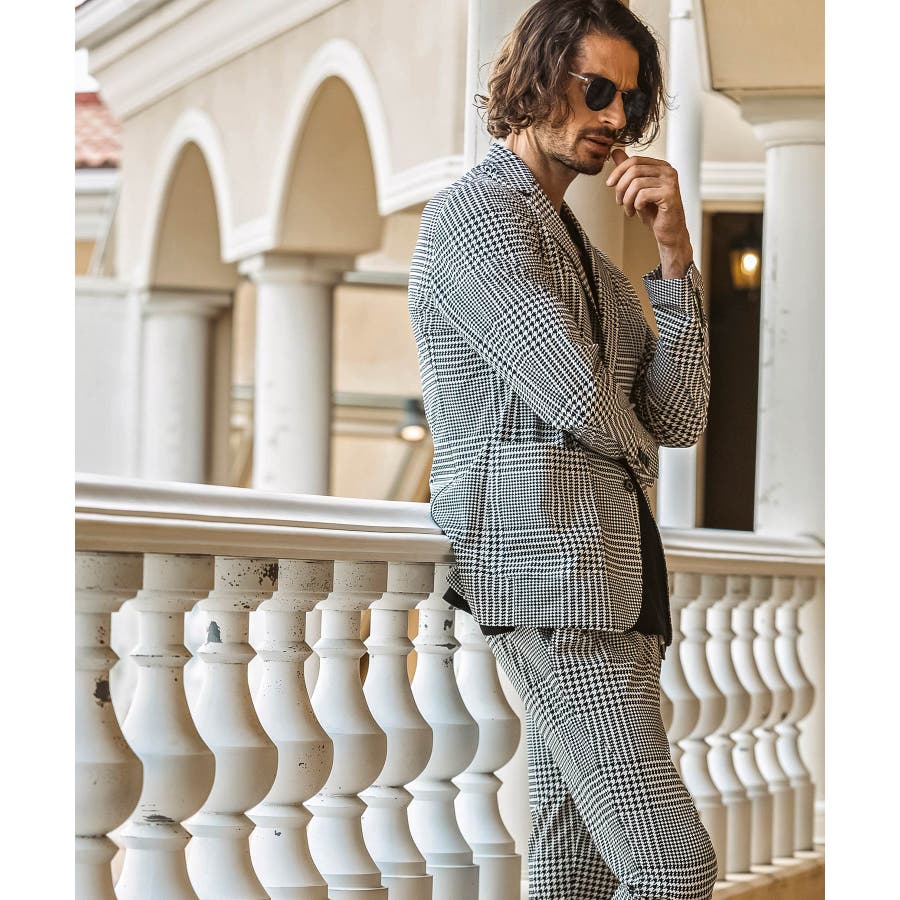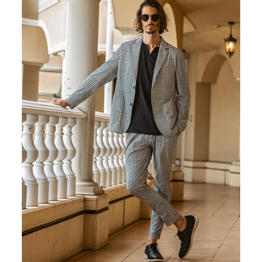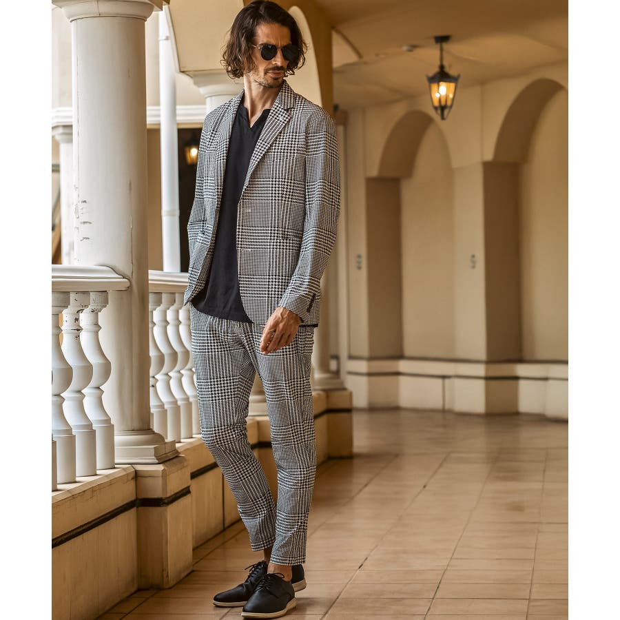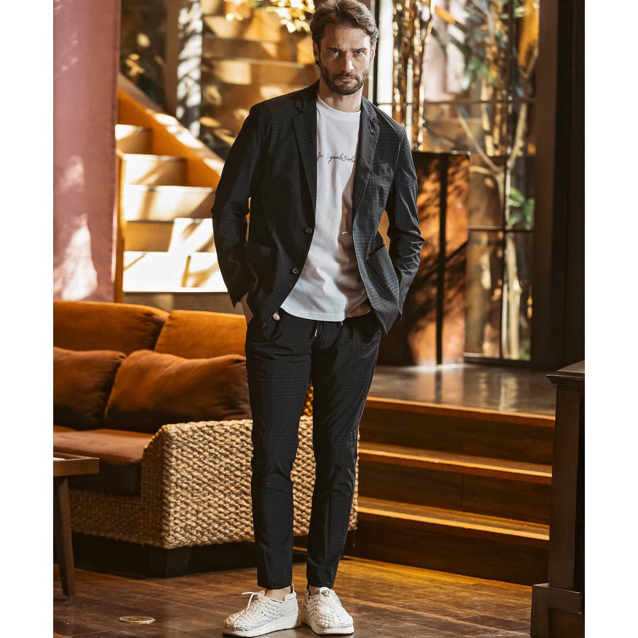 同生地のジャケットと合わせれば大人の余裕を感じさせるトラッドなスタイルに。