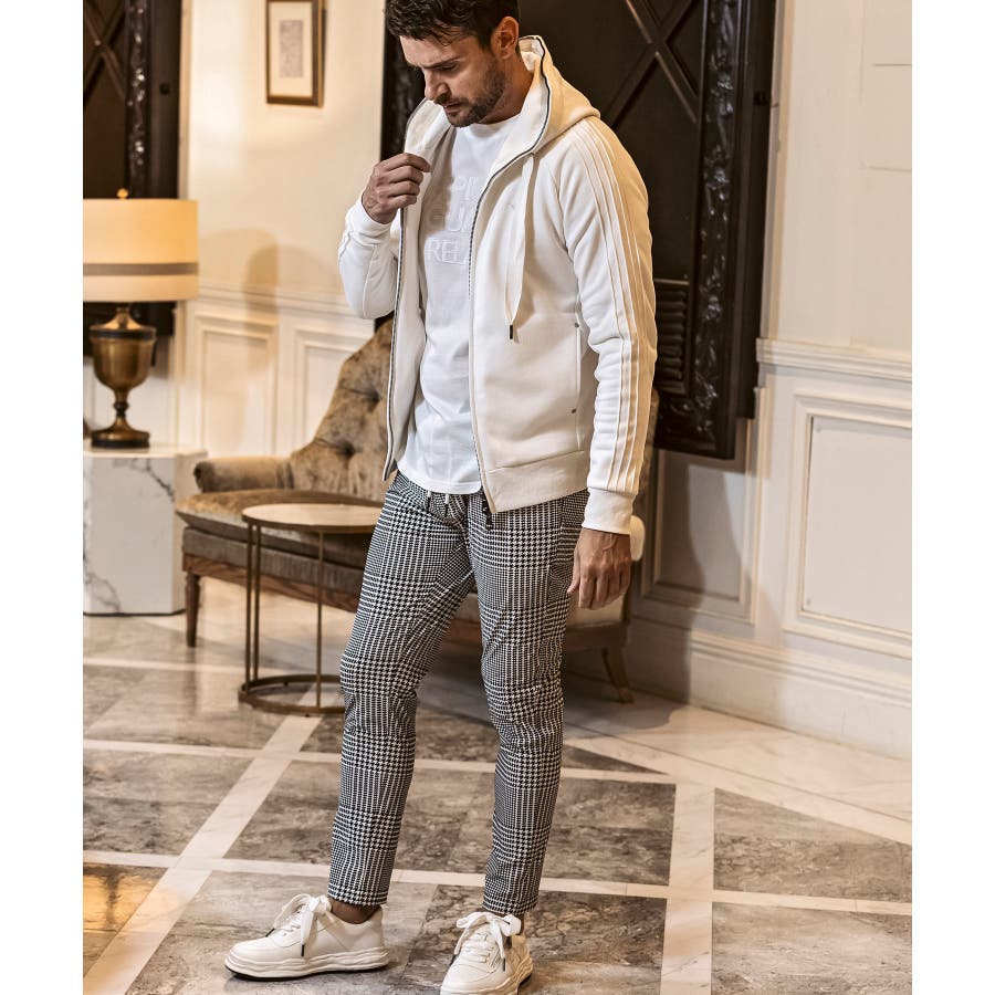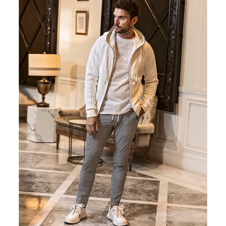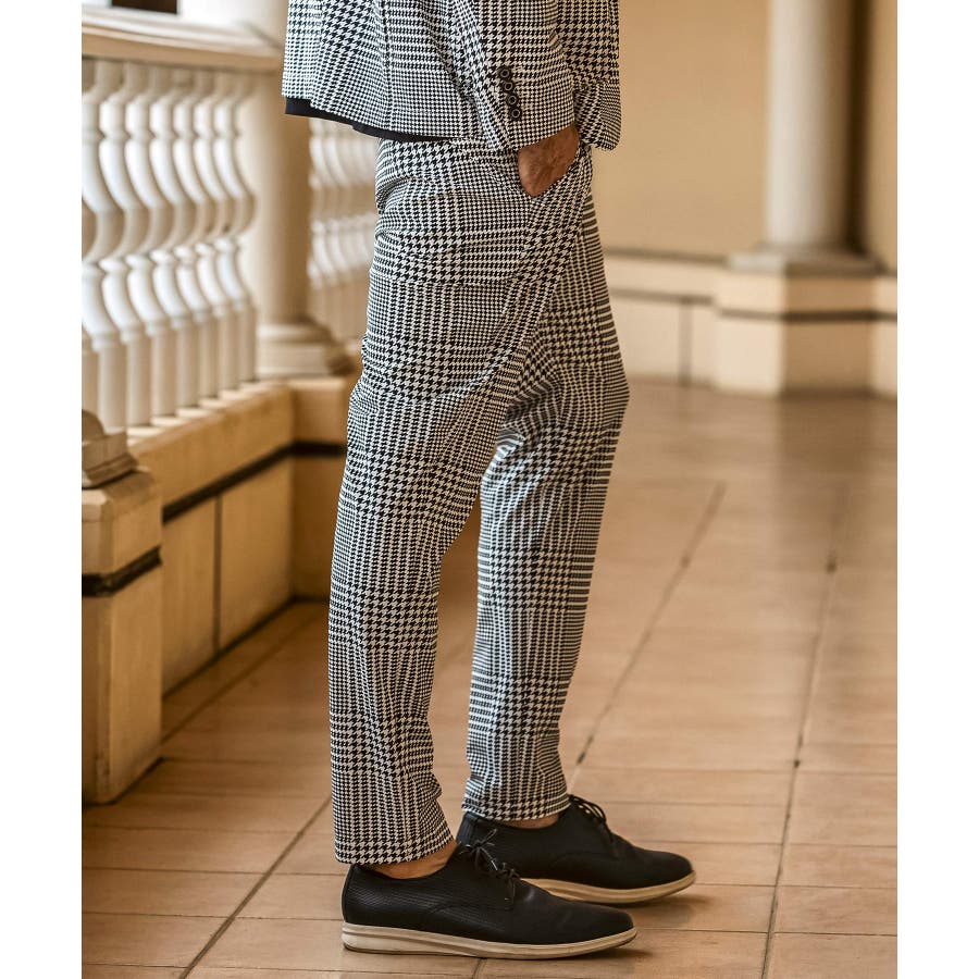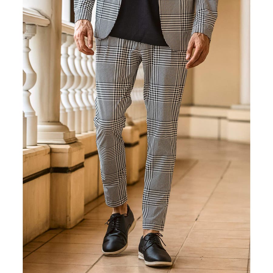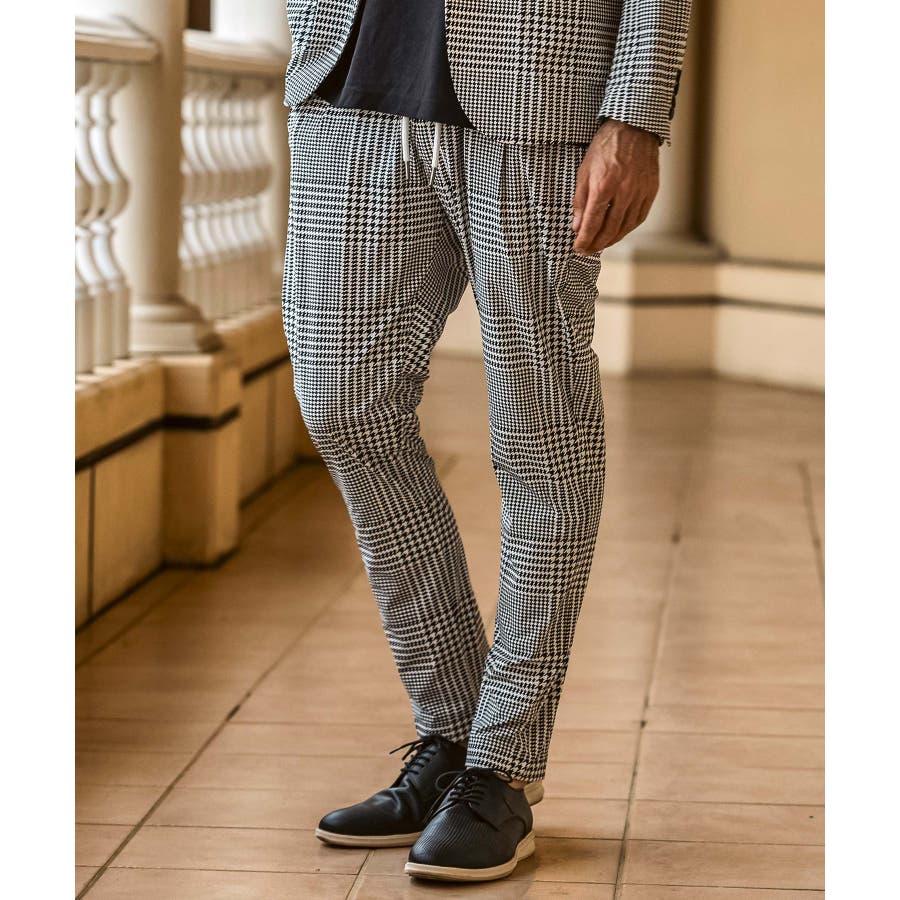 同生地のジャケットと合わせれば大人の余裕を感じさせるトラッドなスタイルに。