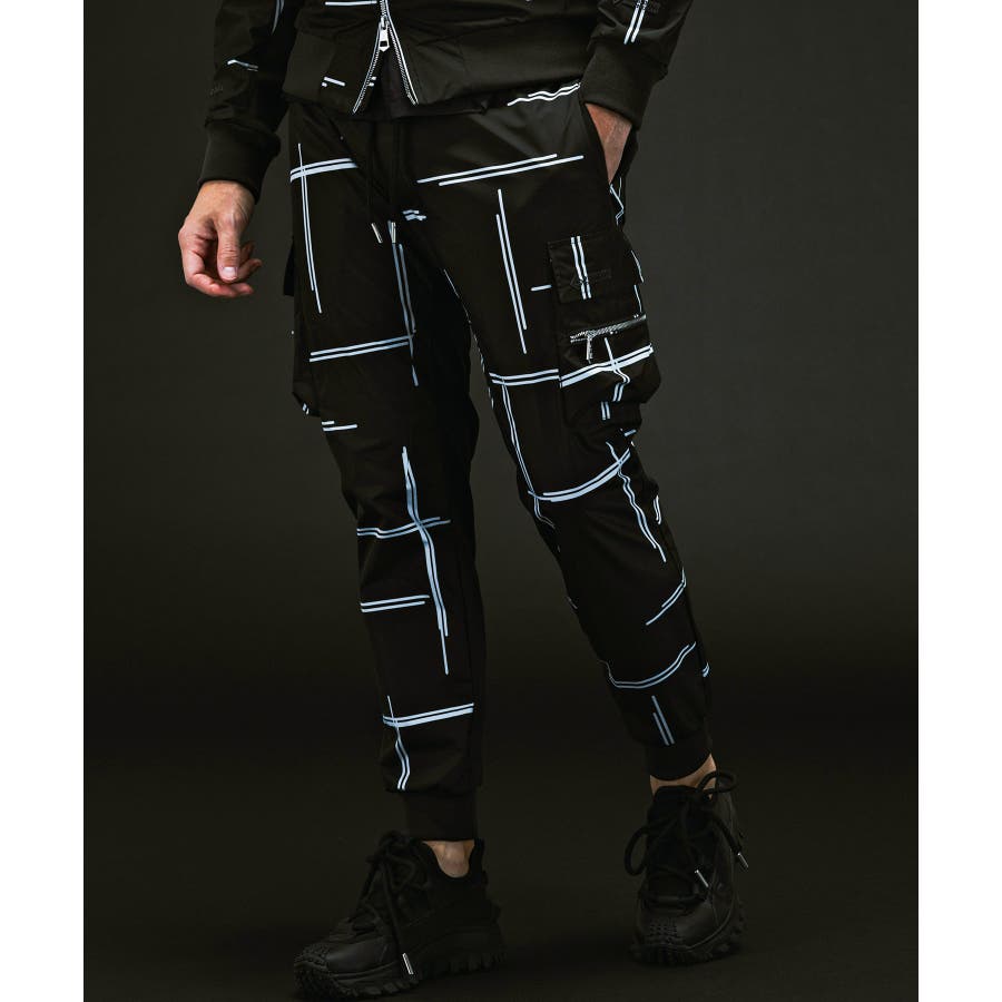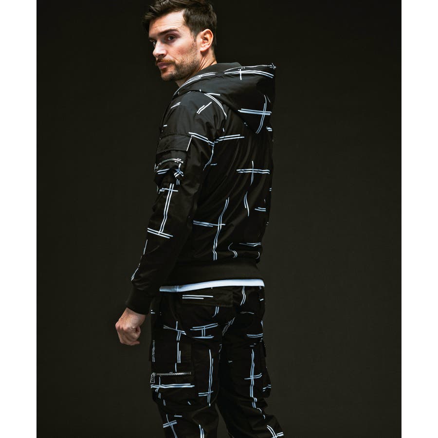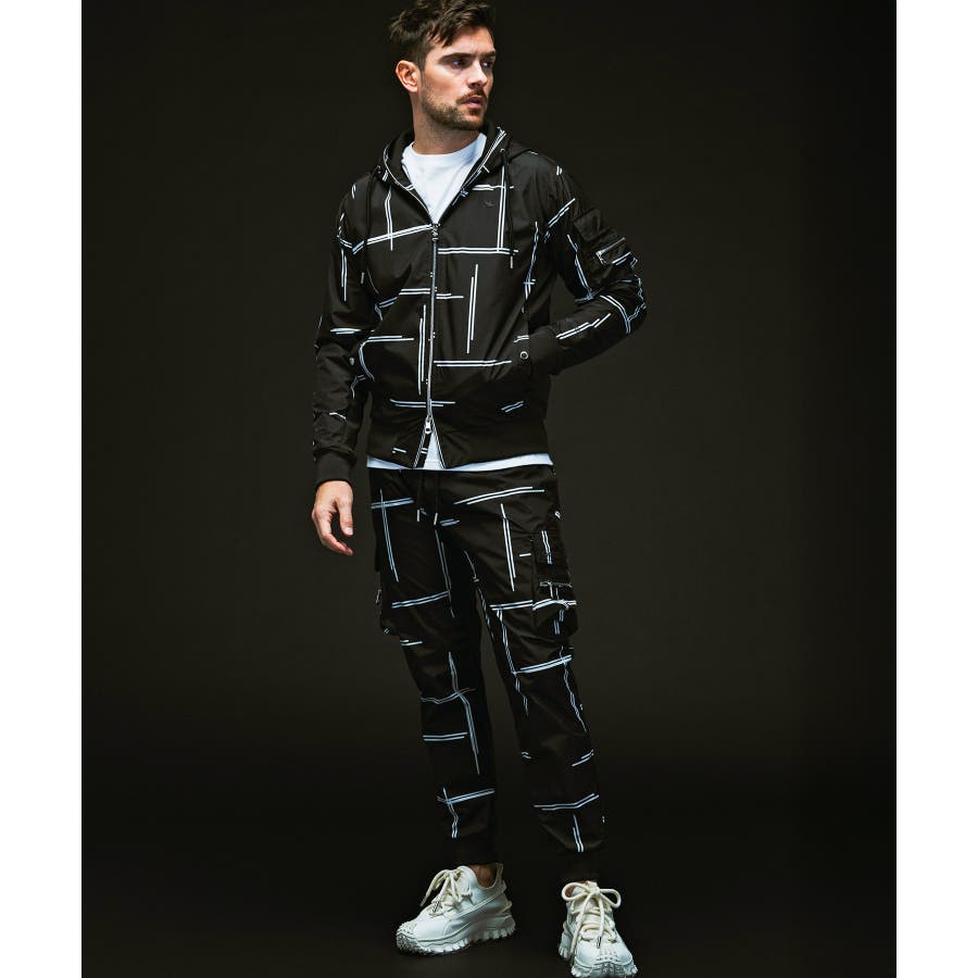 モードなオールブラックに加え、ブランドオリジナルのグラフィックを用意。
