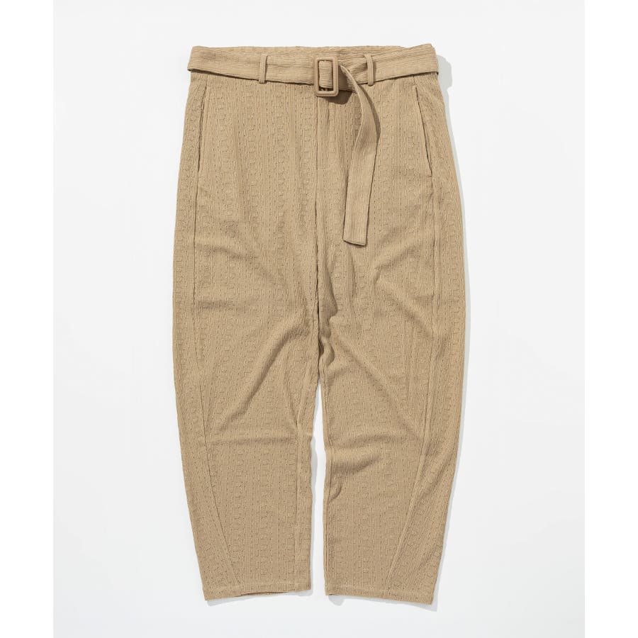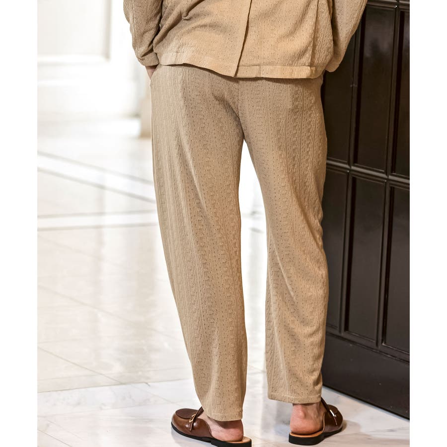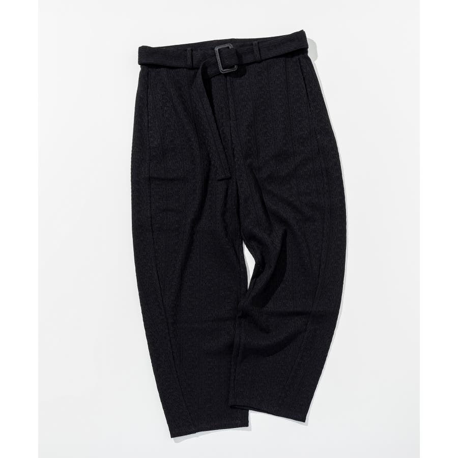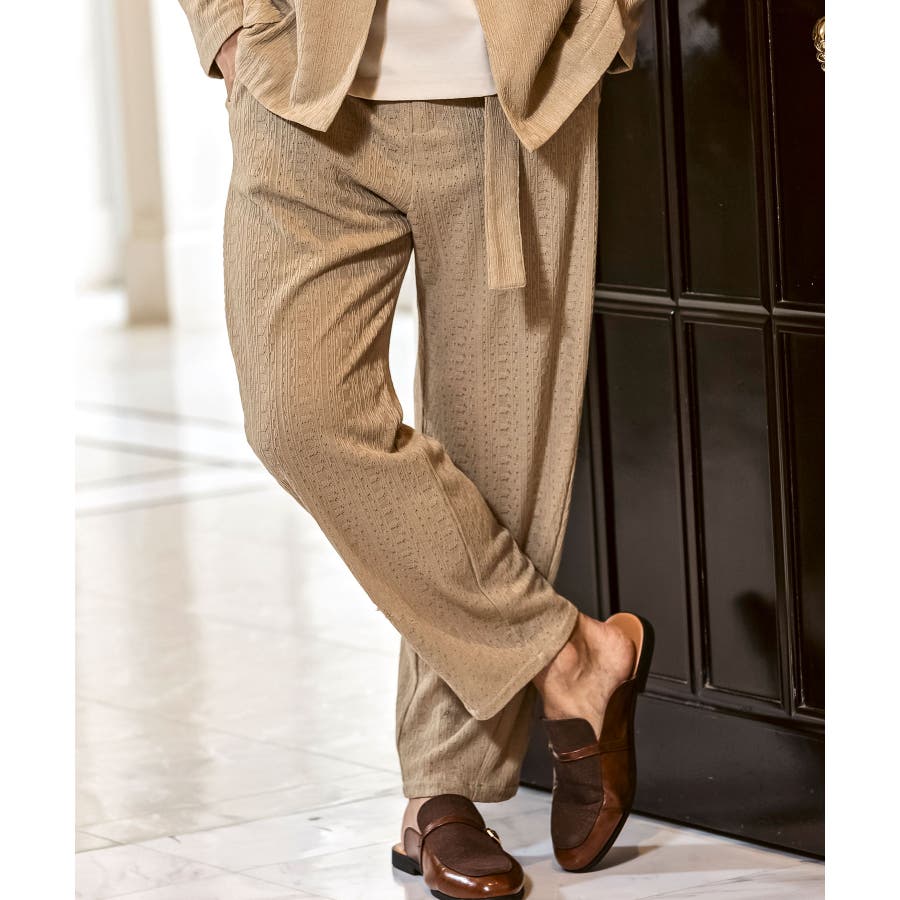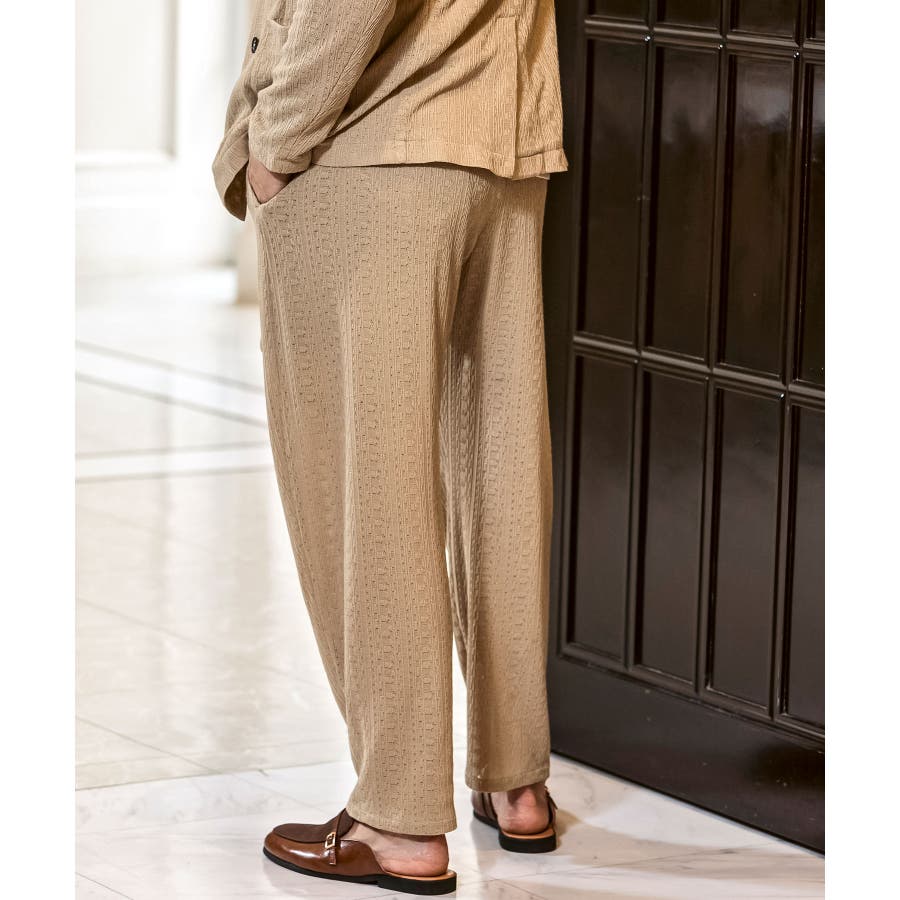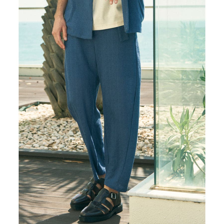 落ち感のある麻混素材をジャガード編みで表情豊かに仕上げたワイドパンツ。