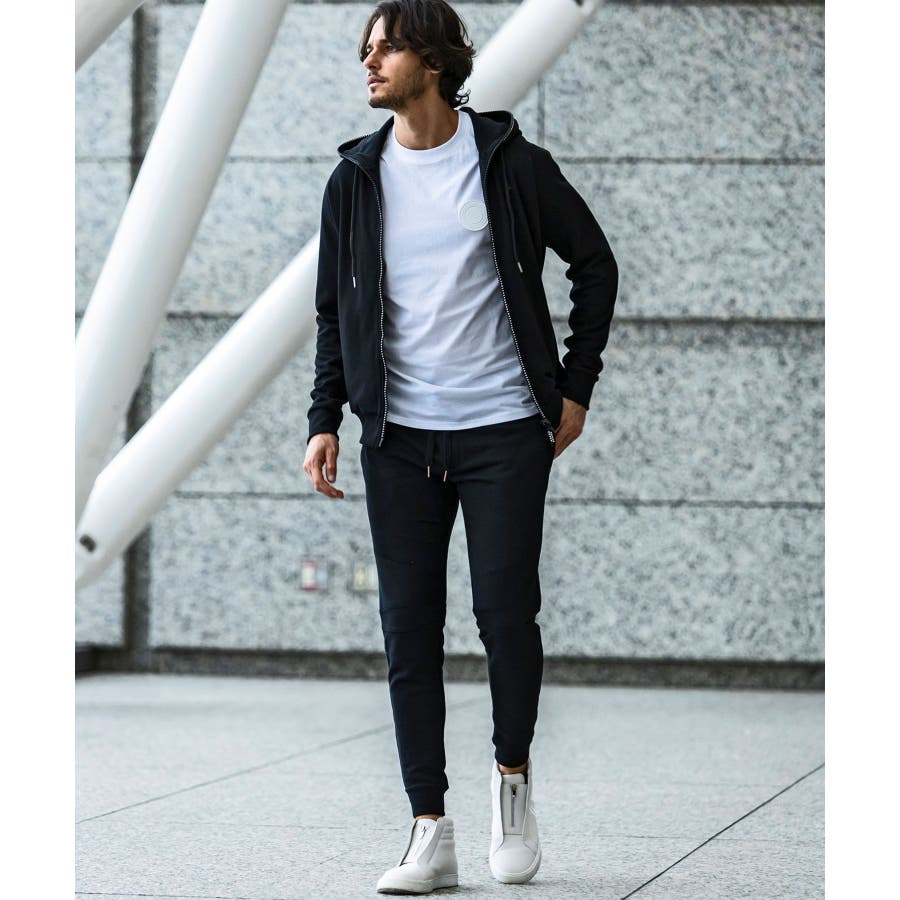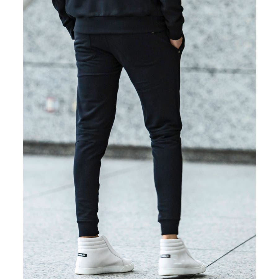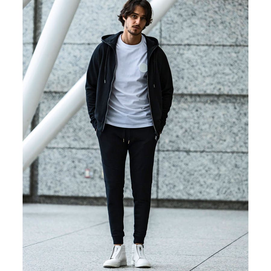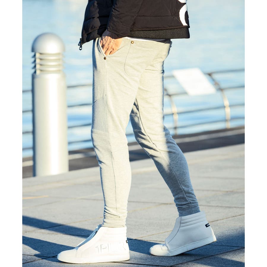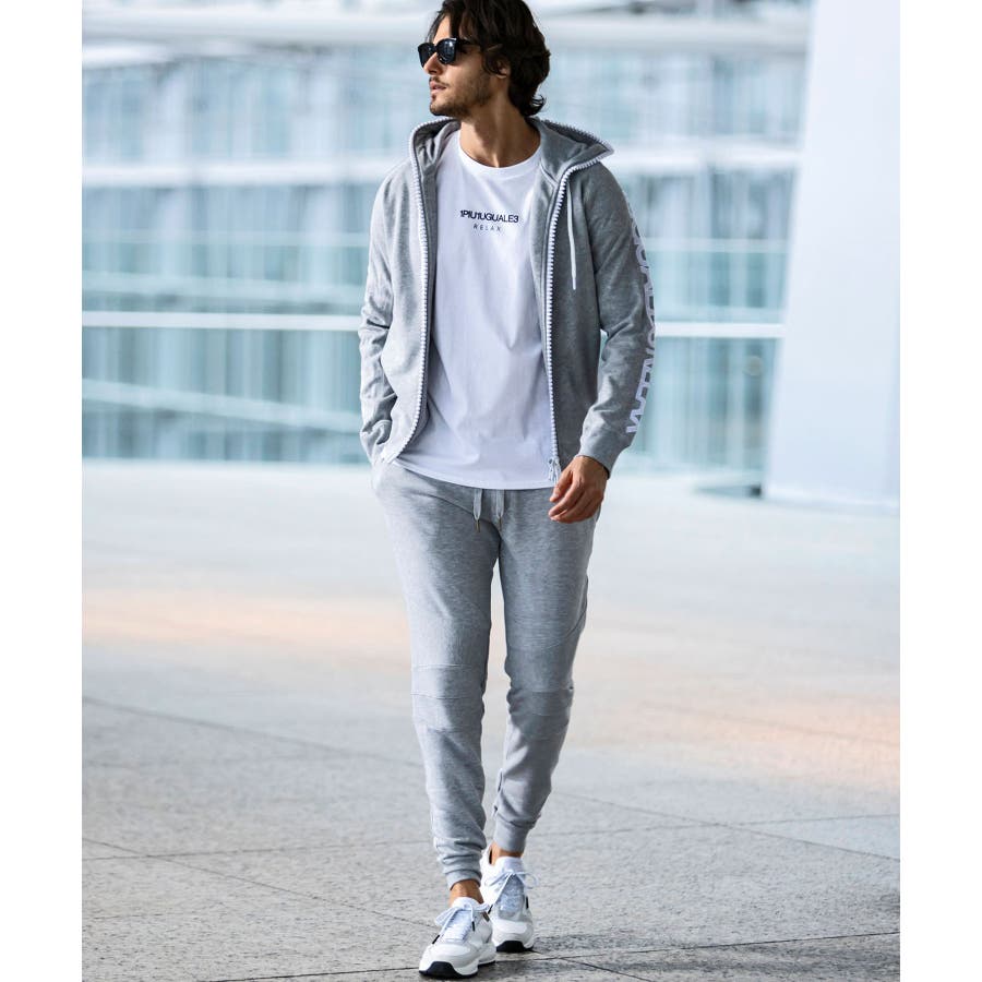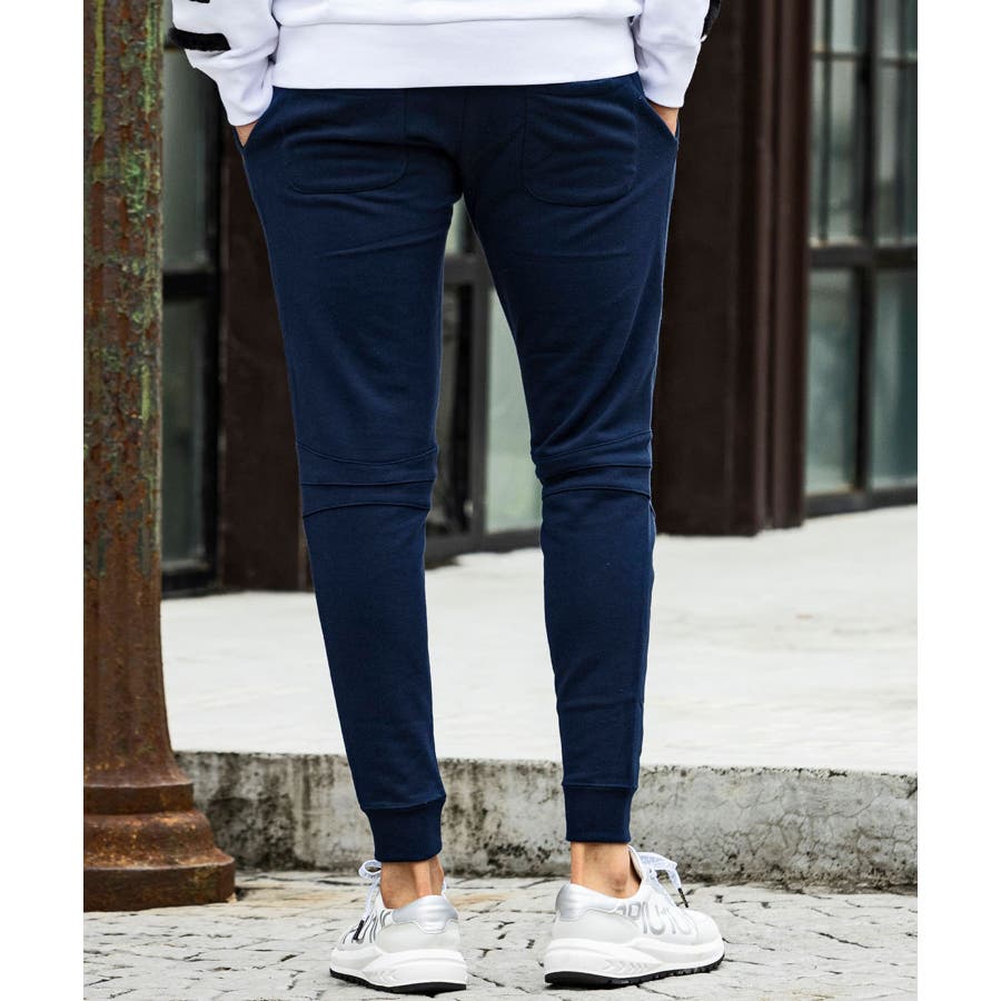 フロント膝部分のディテールがポイントのバイカースウェットパンツ。