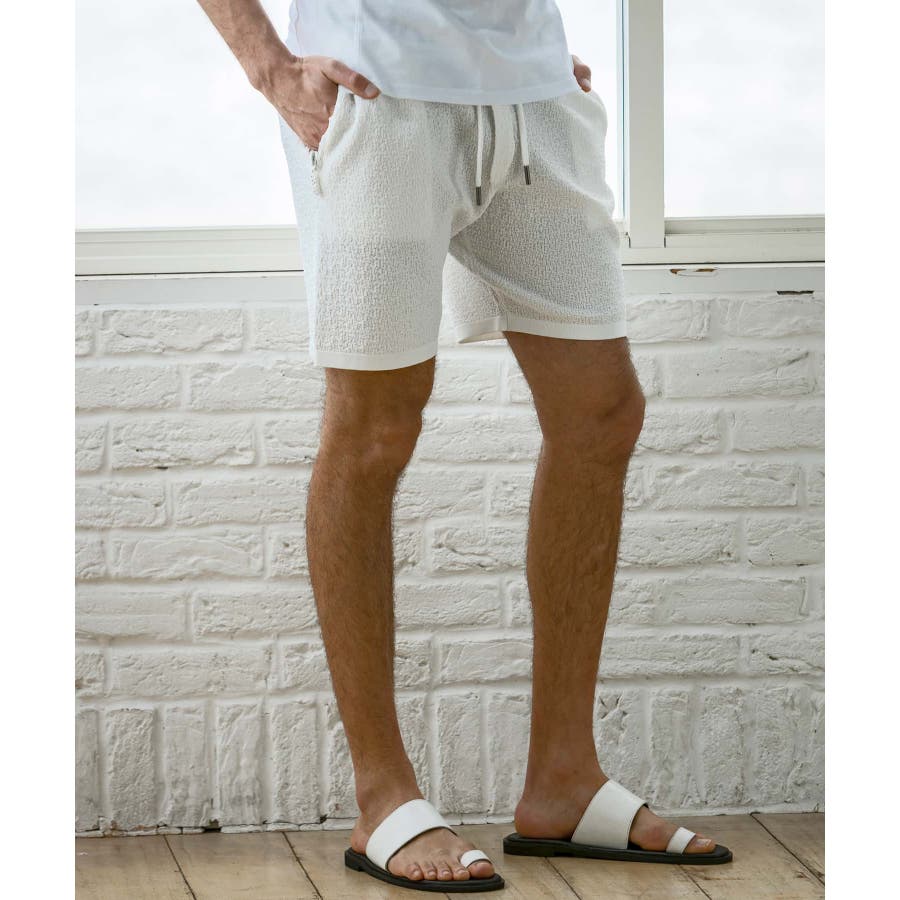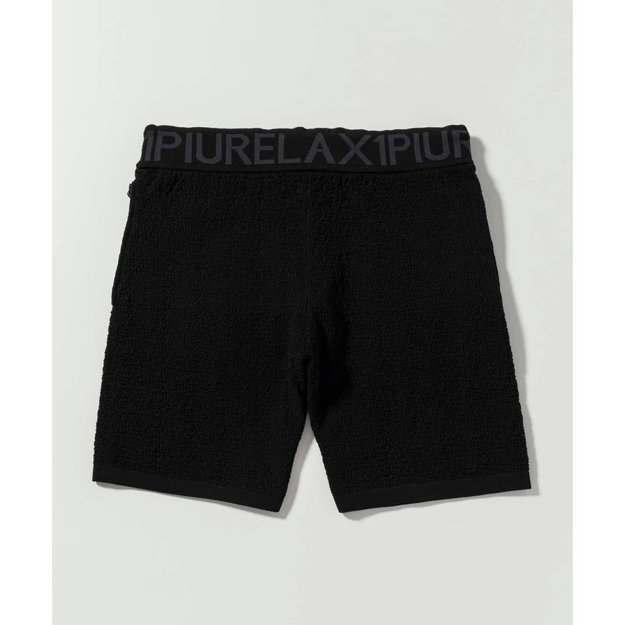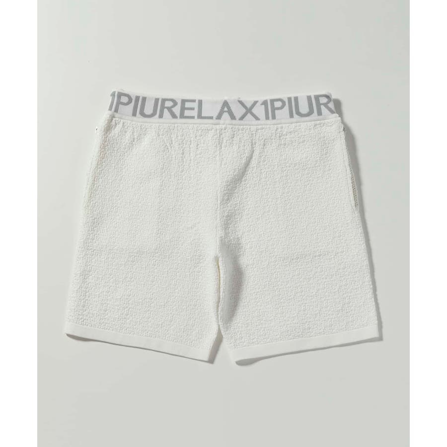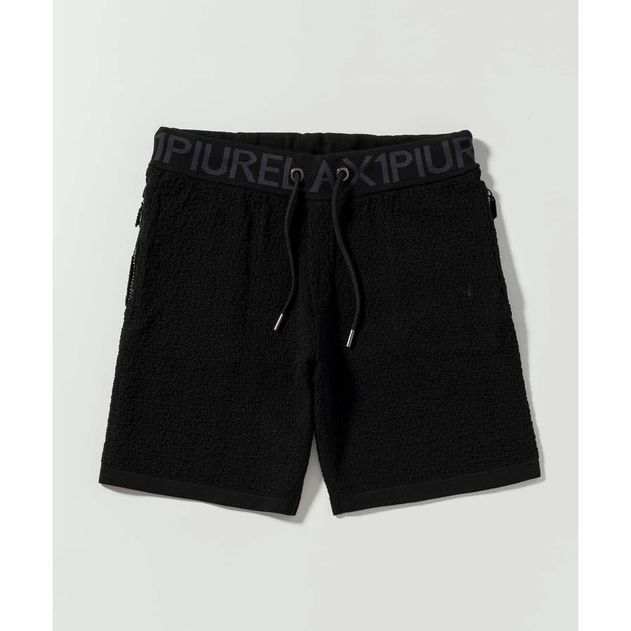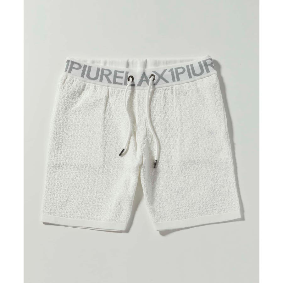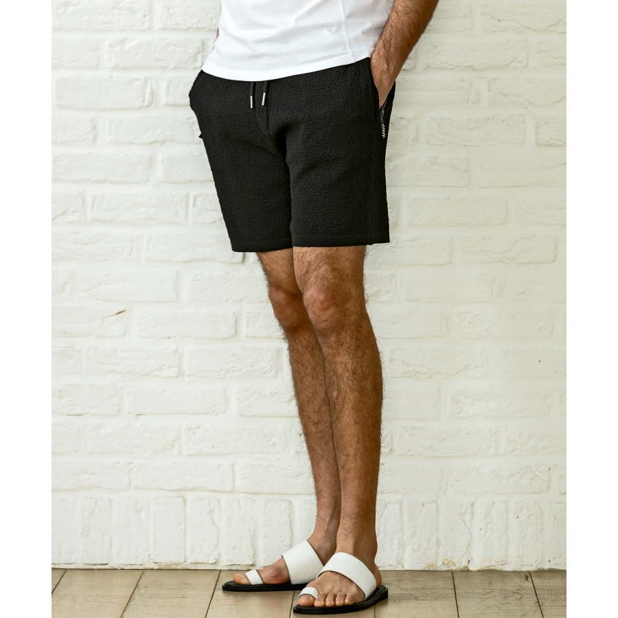 独特の表面感のあるストレッチニットで仕立てたハーフパンツ。