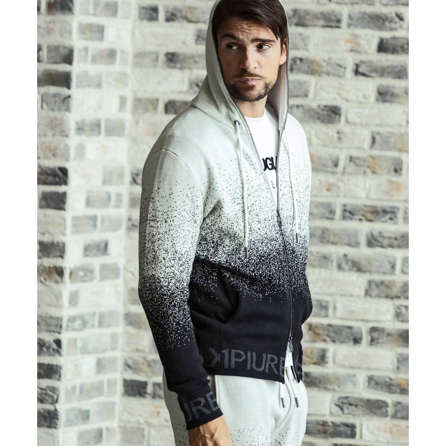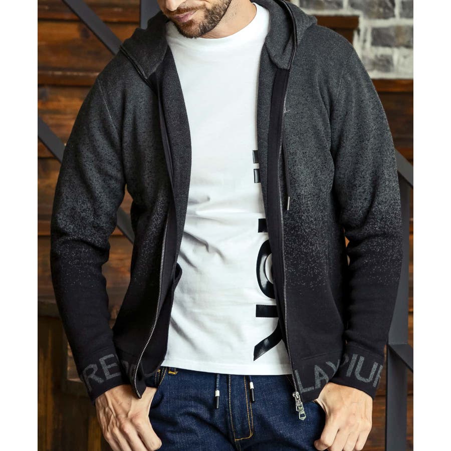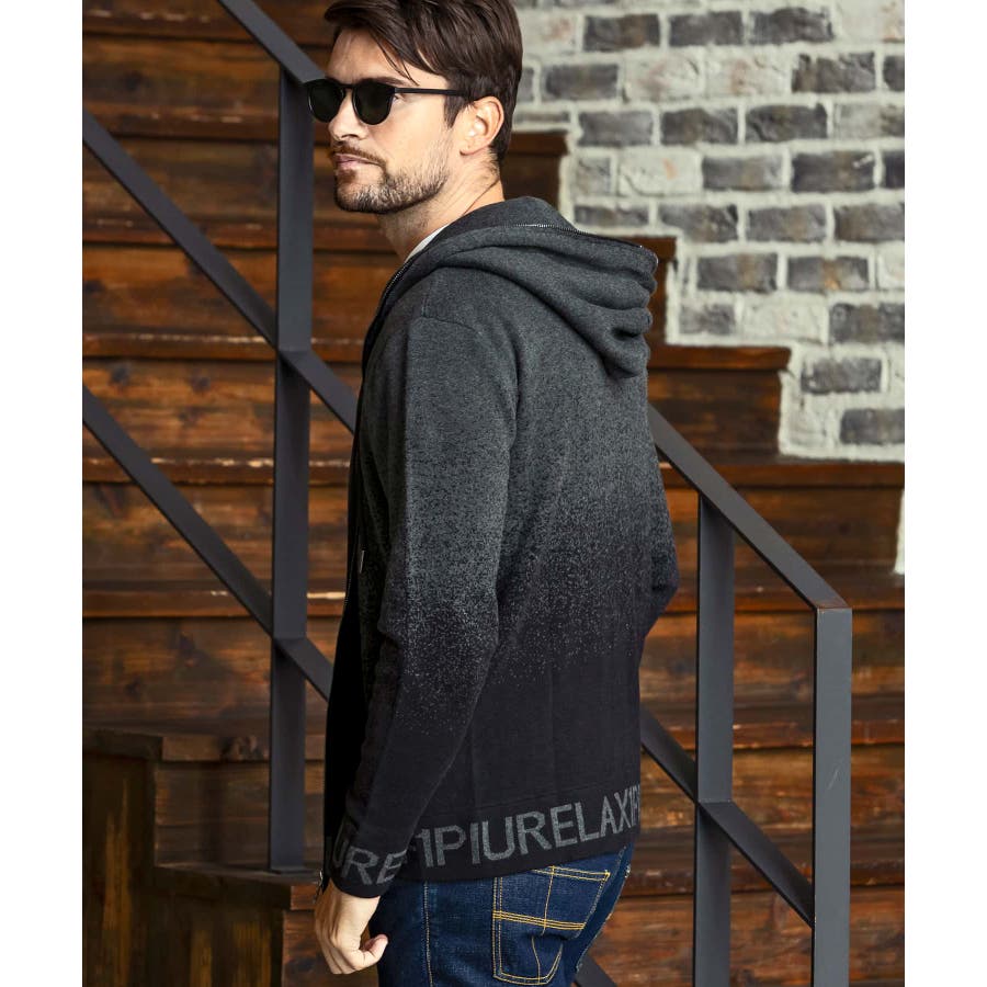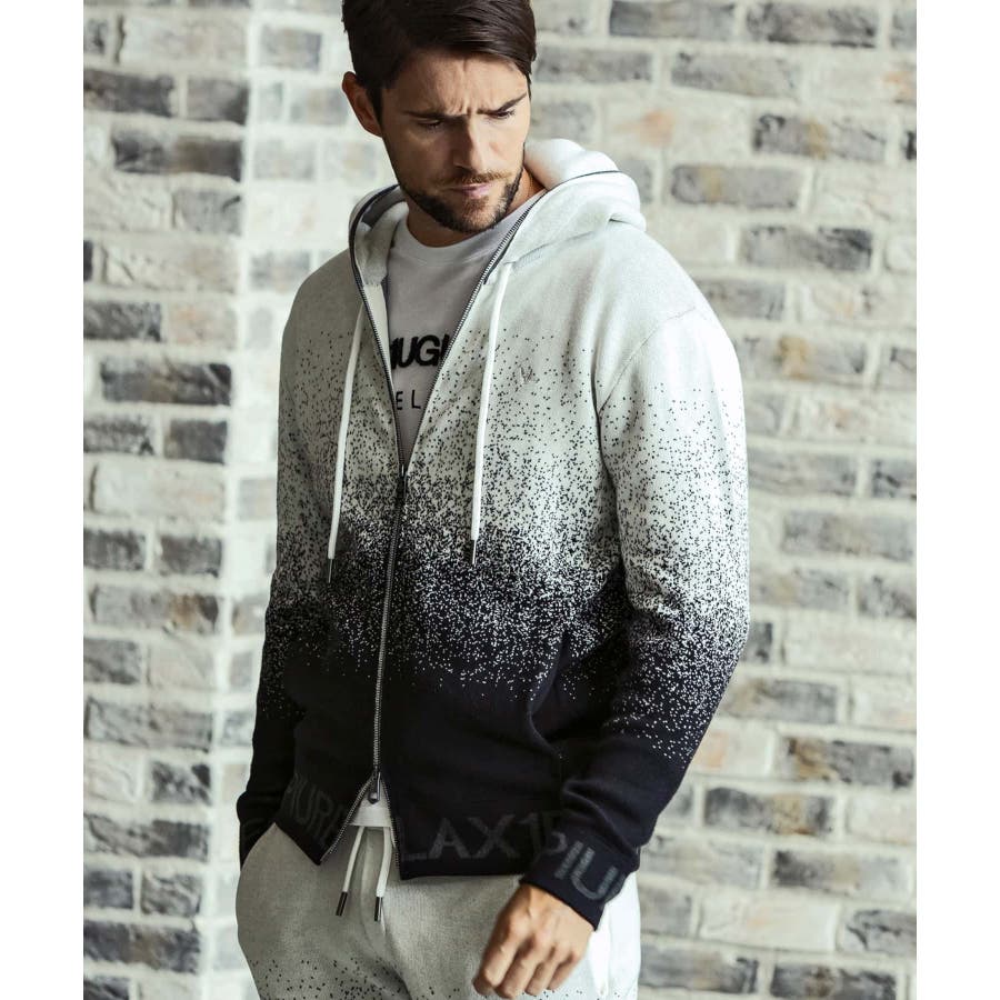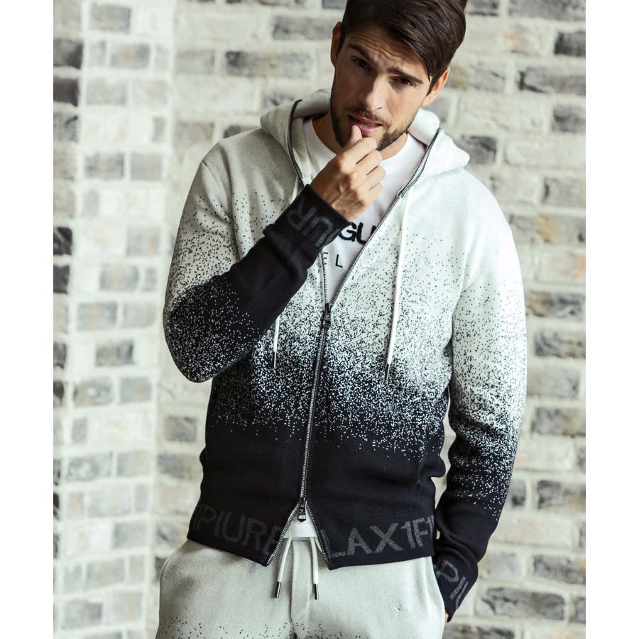 ニットの織りでグラデーションを表現したジップアップパーカー。