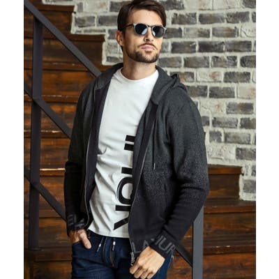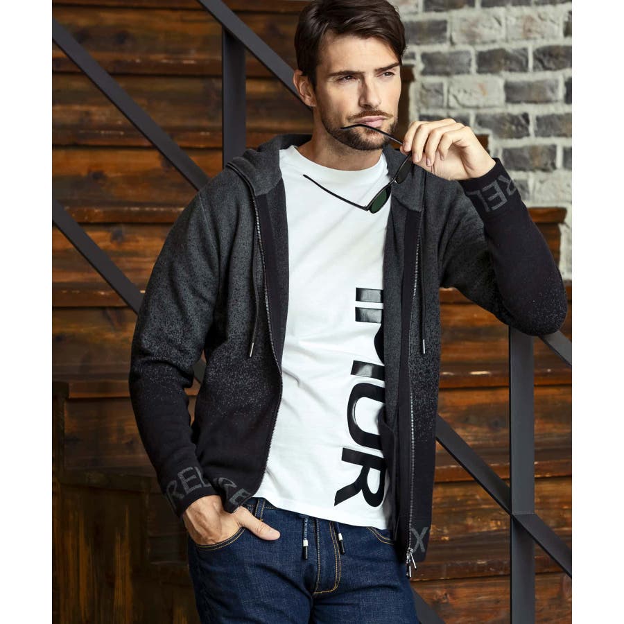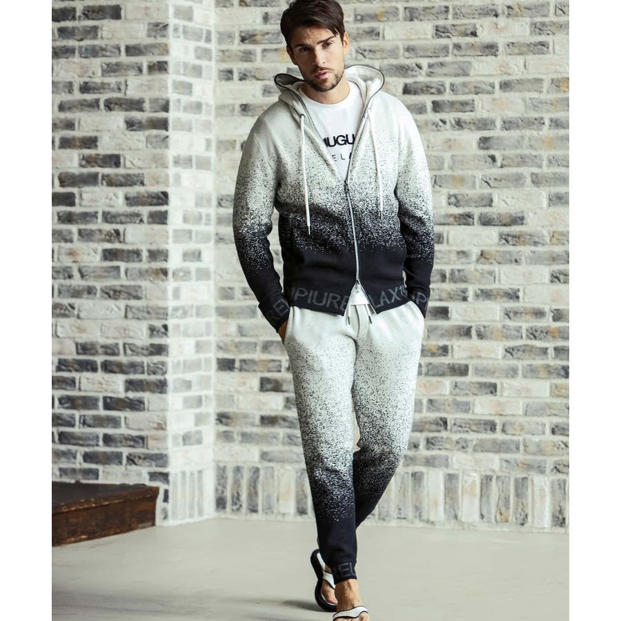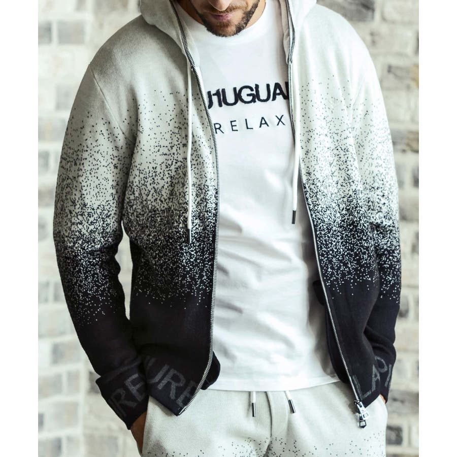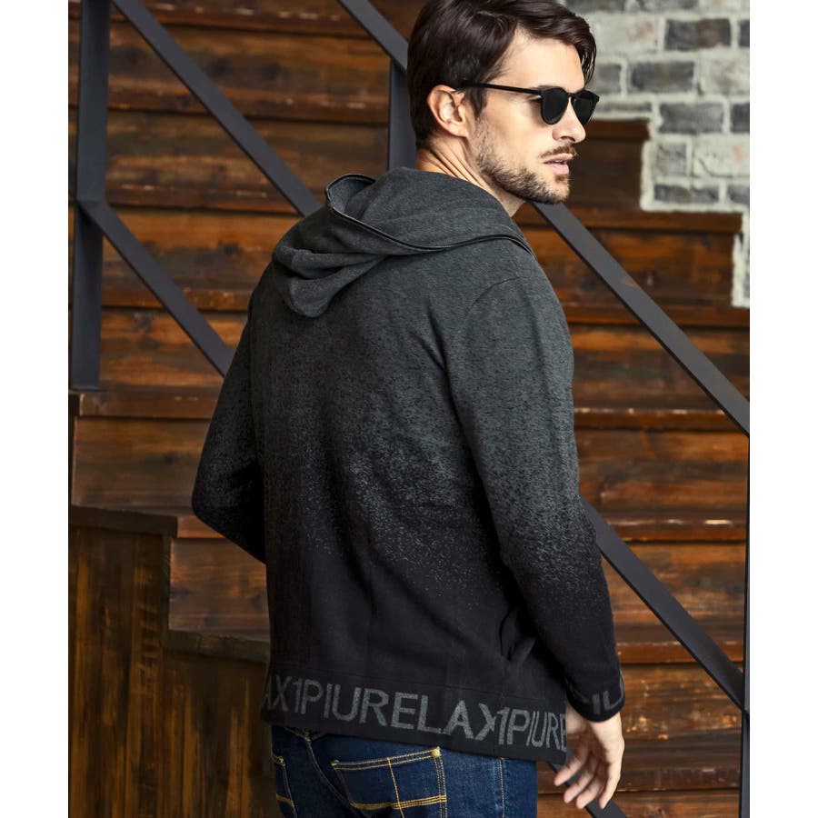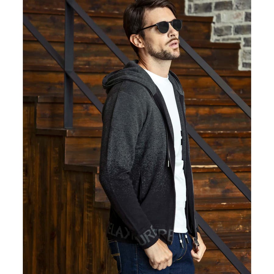 ニットの織りでグラデーションを表現したジップアップパーカー。