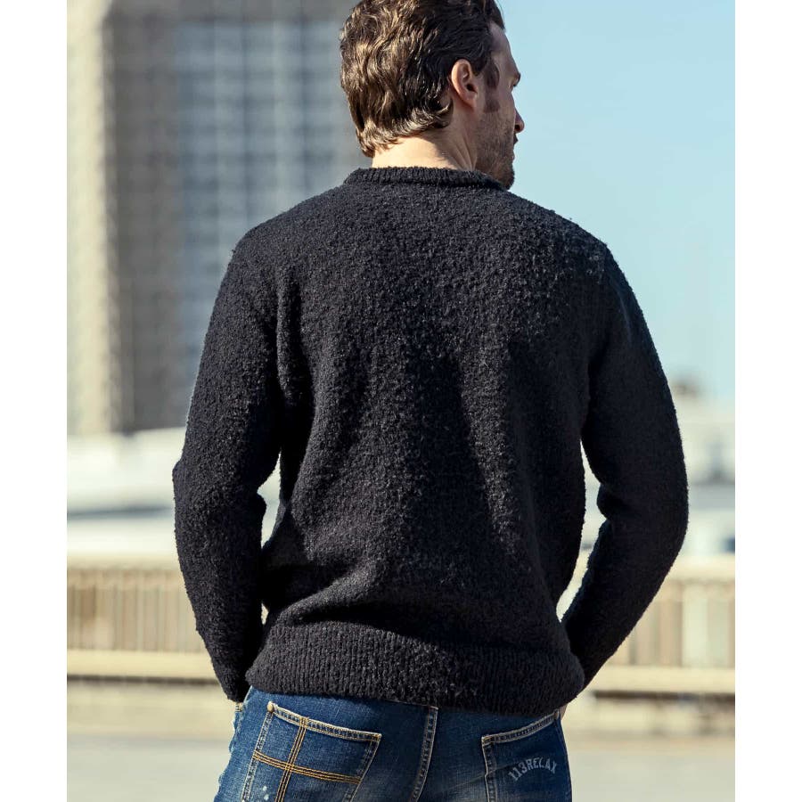 もこもことした柔らかな肌触りに加え、空気を多く含むことによる暖かな着心地が魅力。