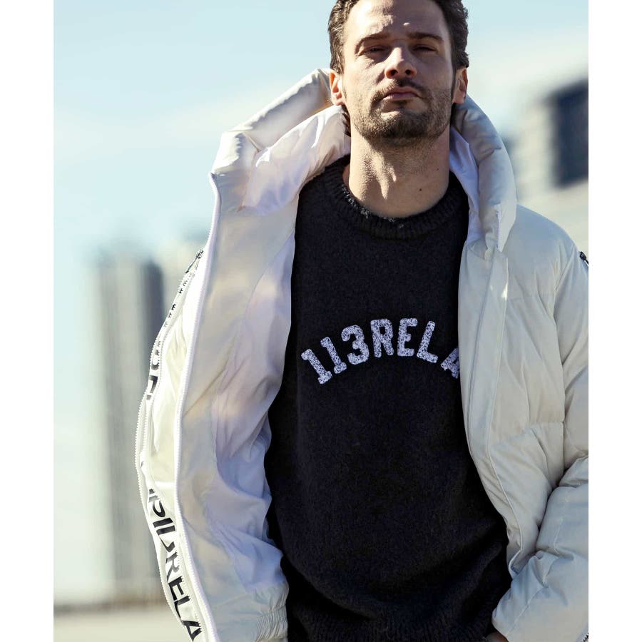 胸元には丸みのあるタイプフェイスでブランドロゴを配置。