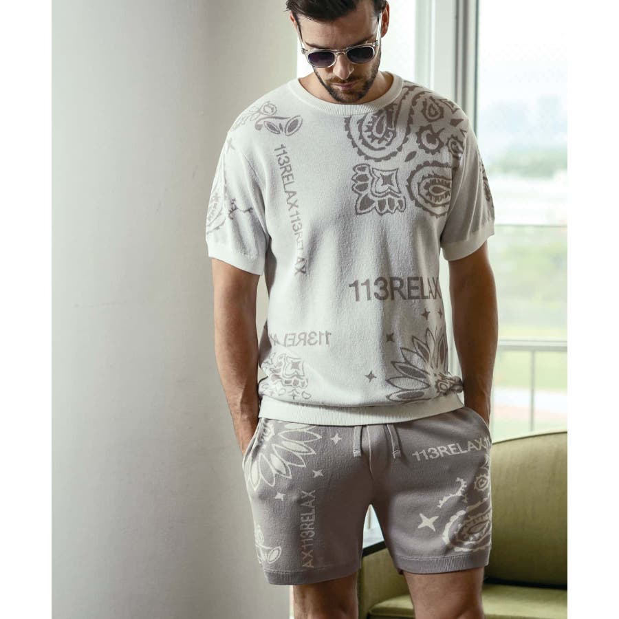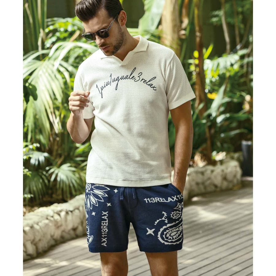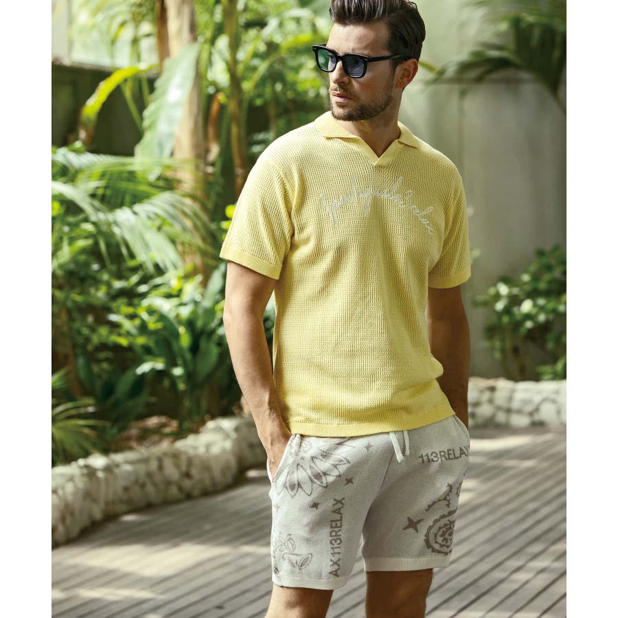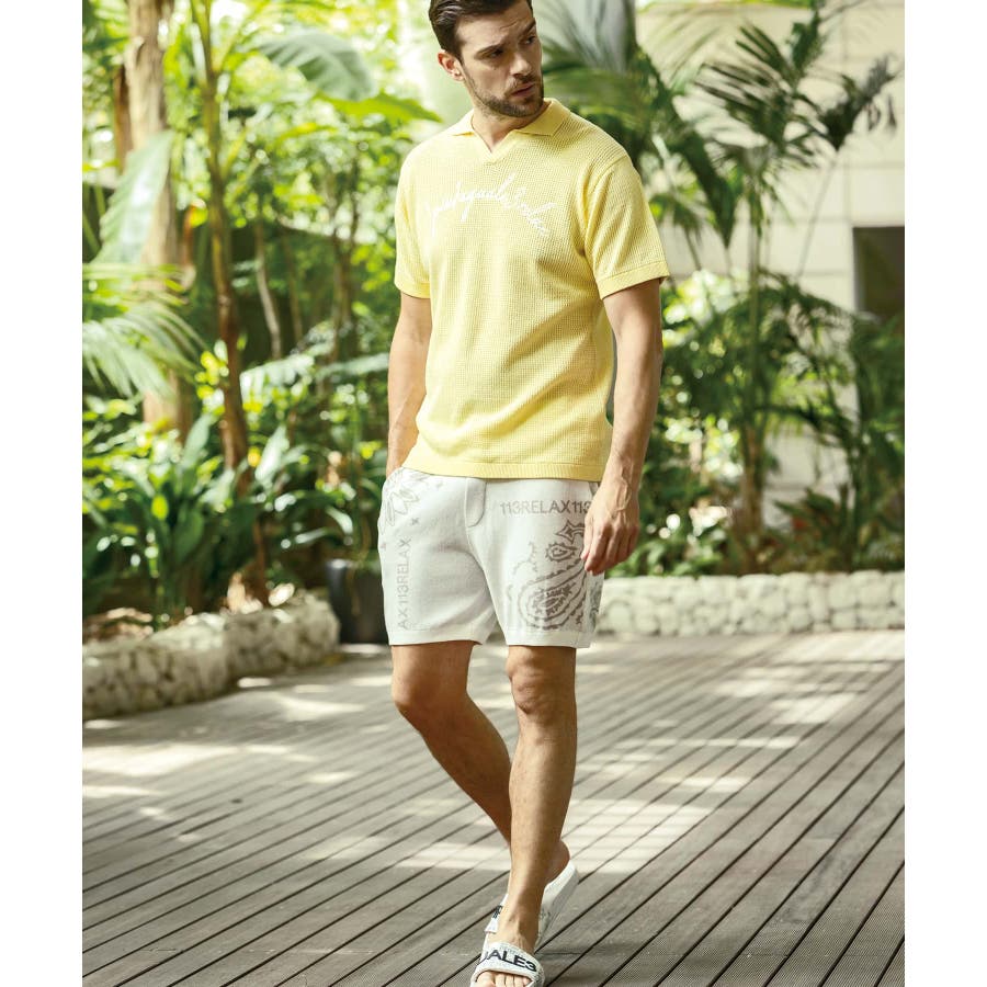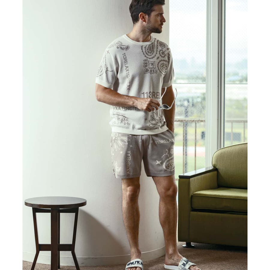 同柄のクルーネックニットと合わせれば、リゾートライクなサマースタイリングの完成です。