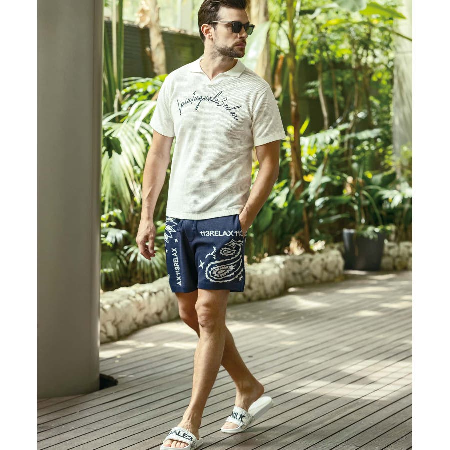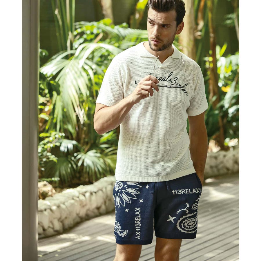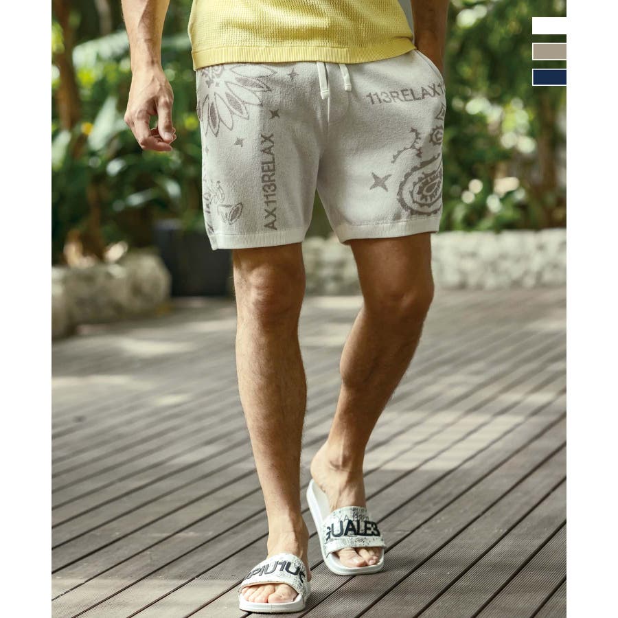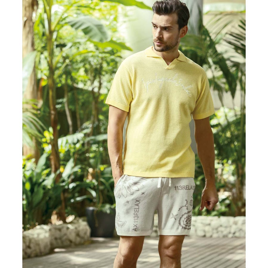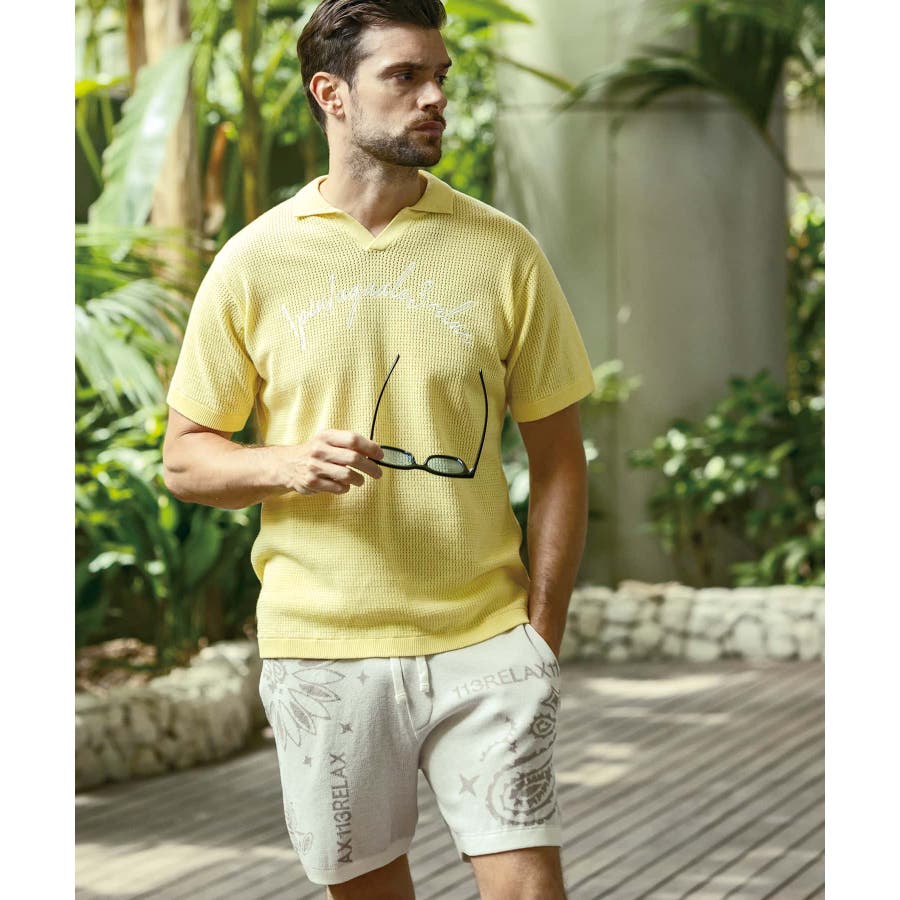 同柄のクルーネックニットと合わせれば、リゾートライクなサマースタイリングの完成です。