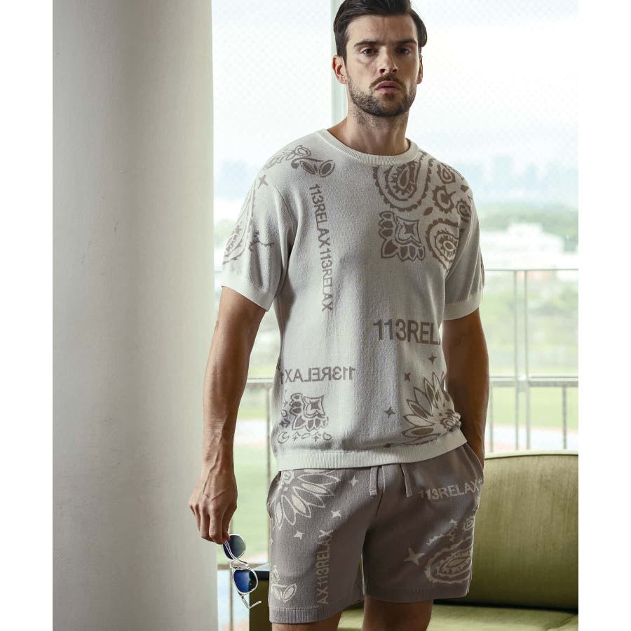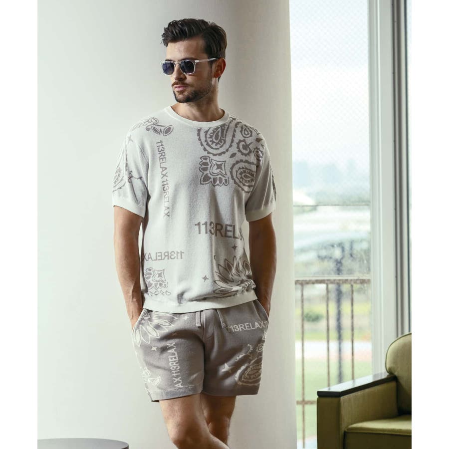 ジャガード織でペイズリー柄を表現したクルーネックニット。 ブランドロゴを組み込んだオリジナルの柄がシーズンらしい爽快感を演出。 伸縮性に優れたサマーニットは、ドライな肌触りと相俟って汗ばむ気候にも爽快な着心地を実現。