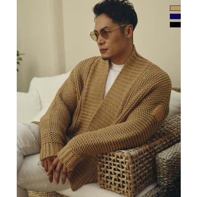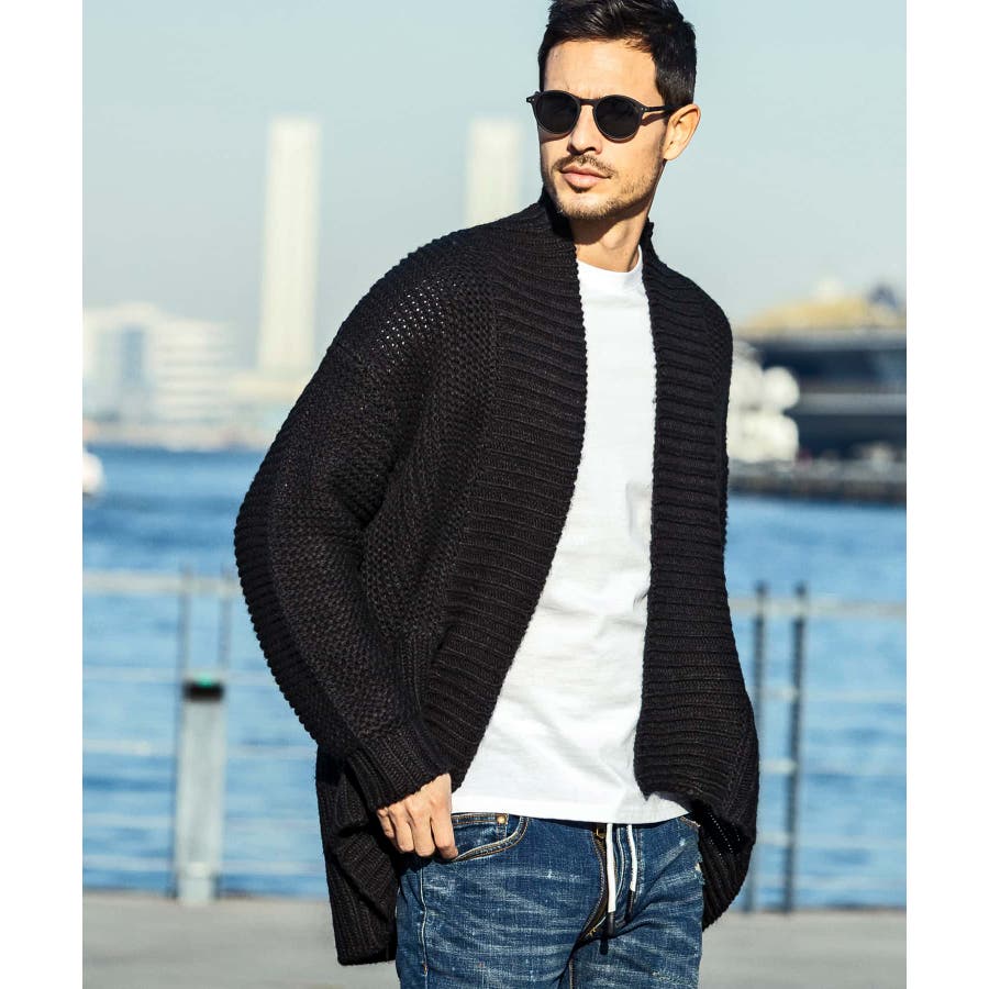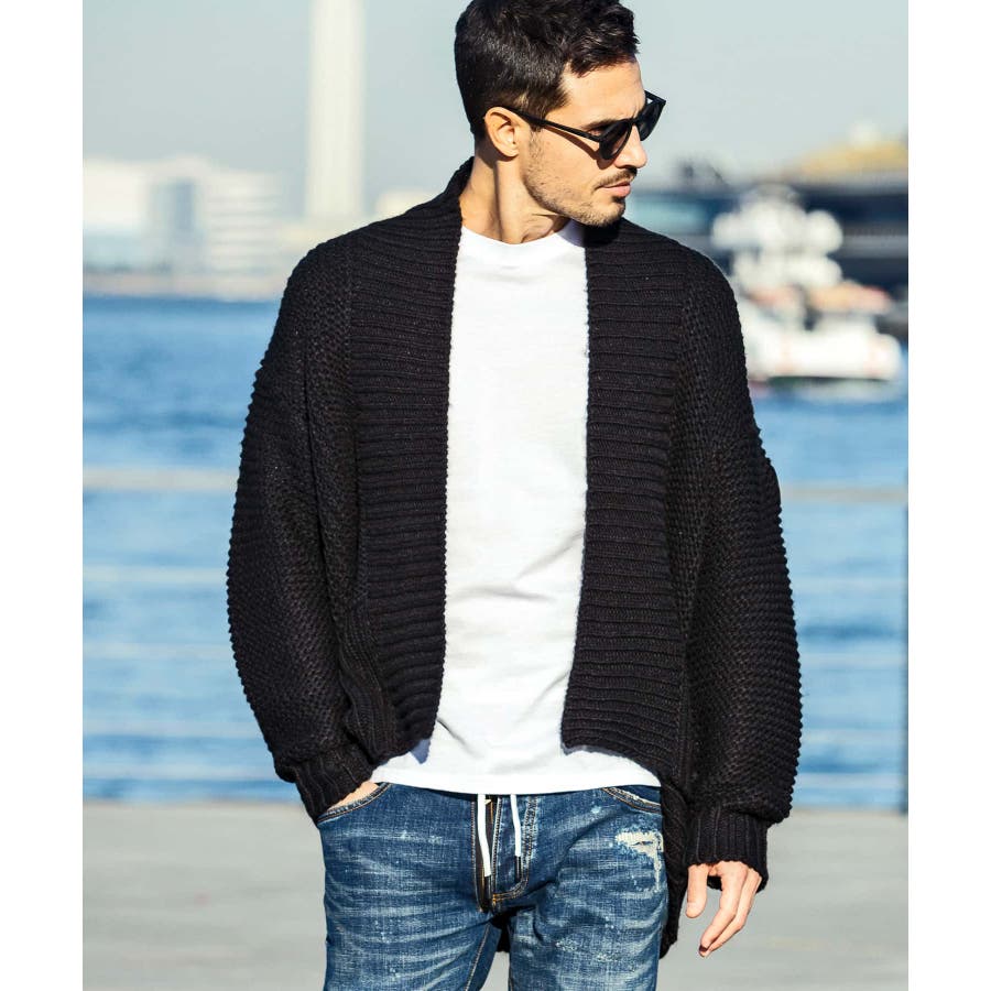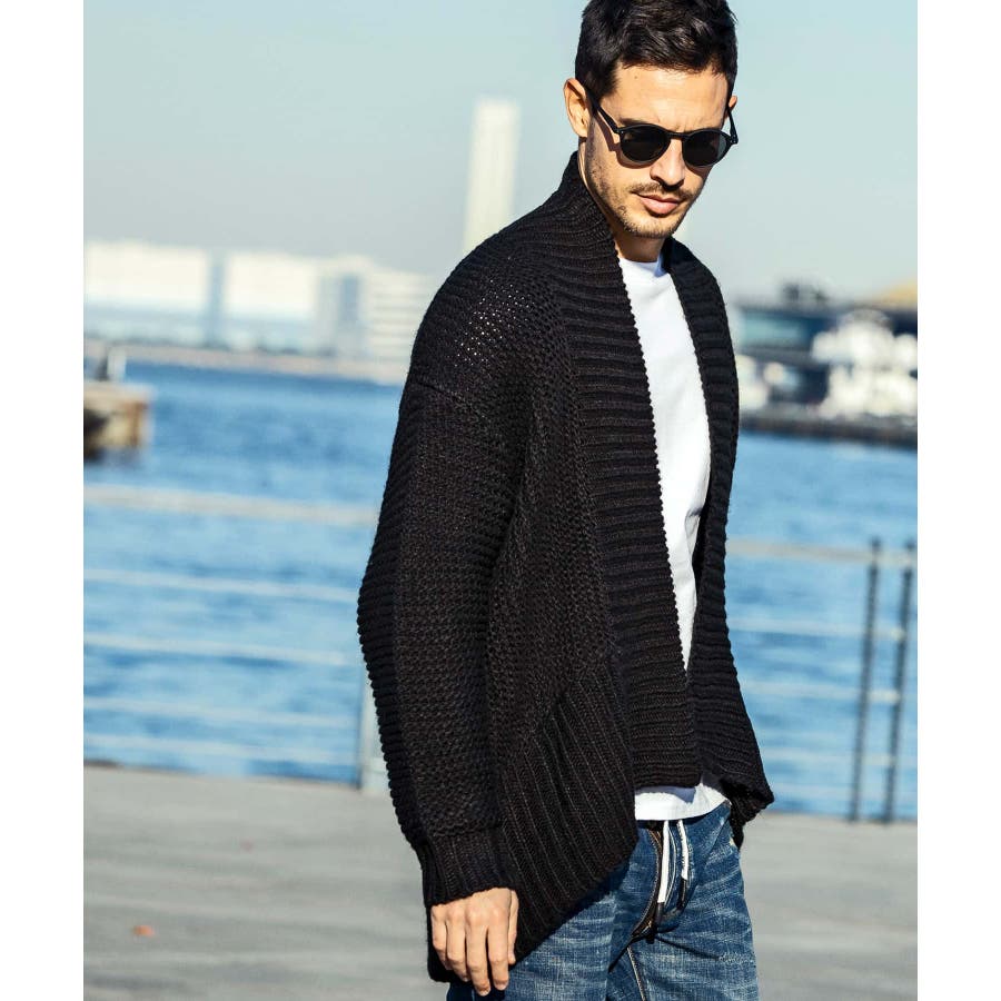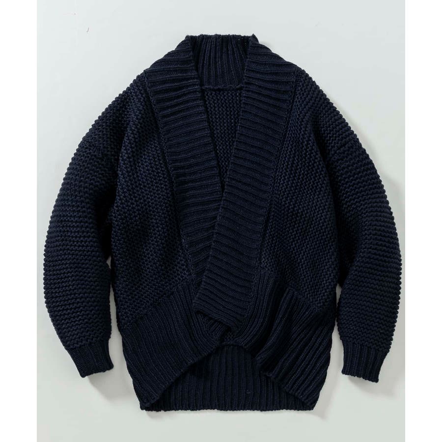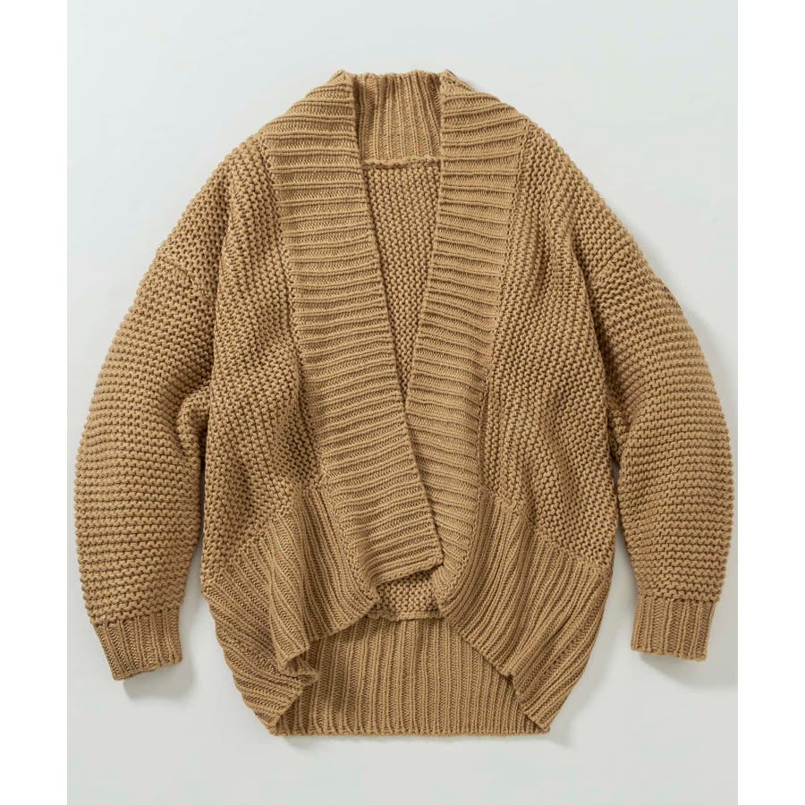 ラフに羽織れるざっくり編みのミドル丈ニットカーディガン。