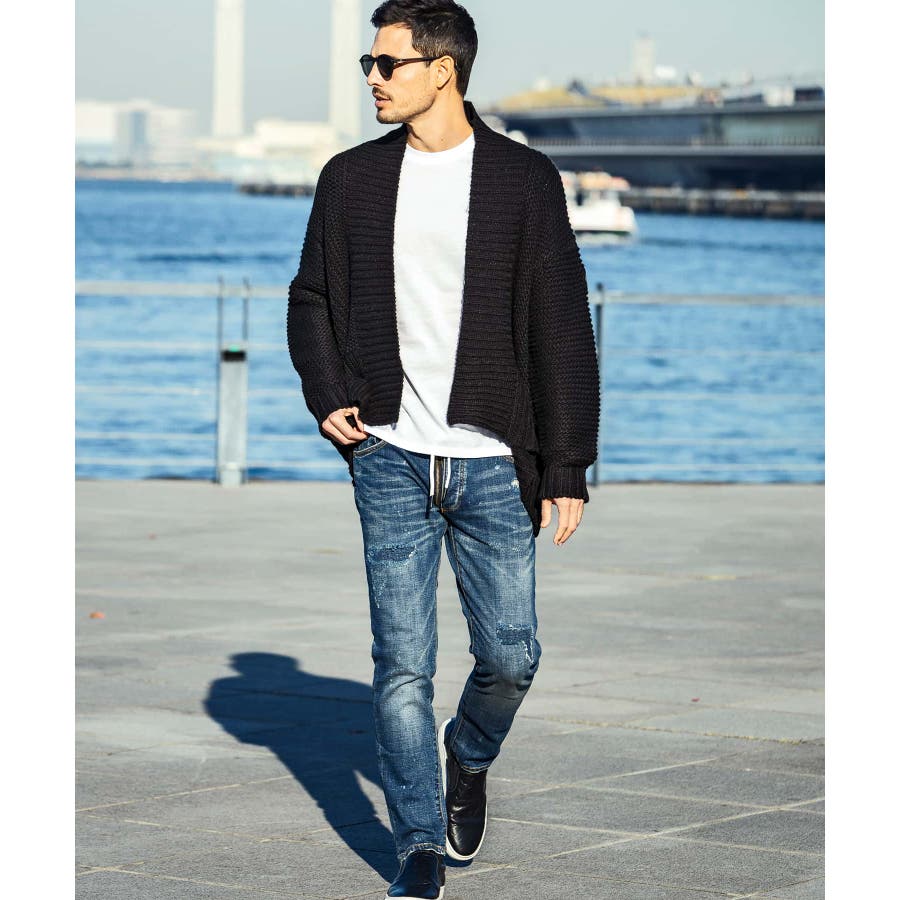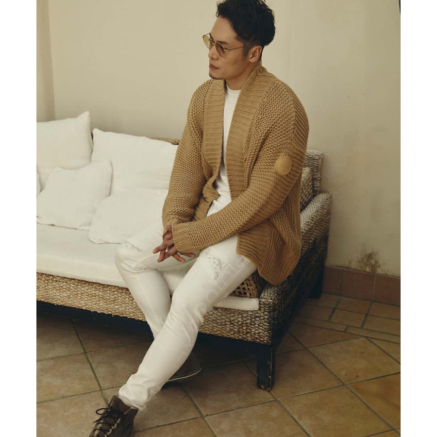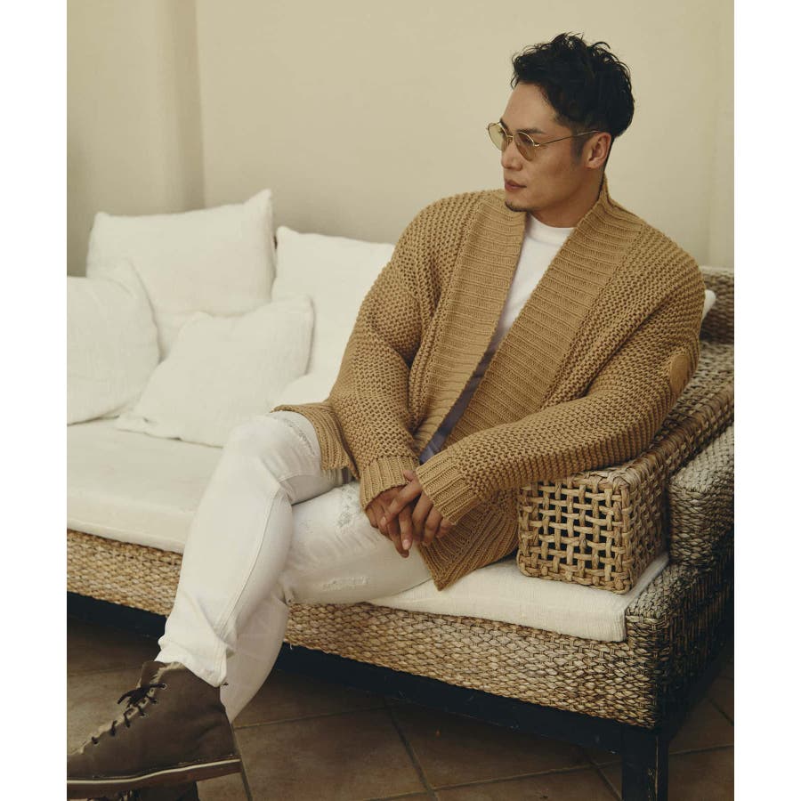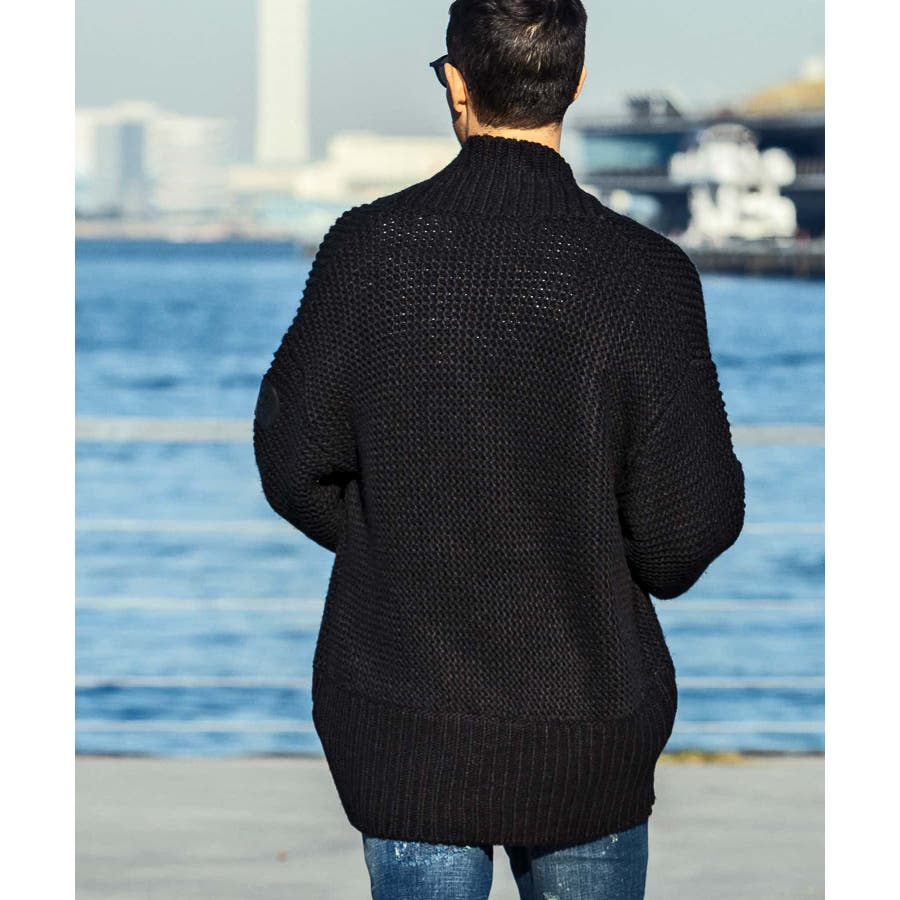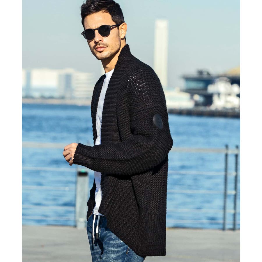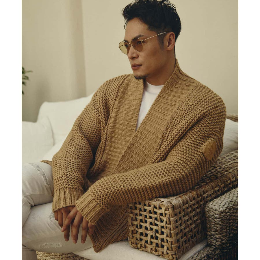 ラフに羽織れるざっくり編みのミドル丈ニットカーディガン。
