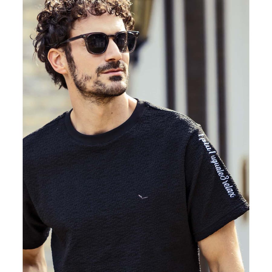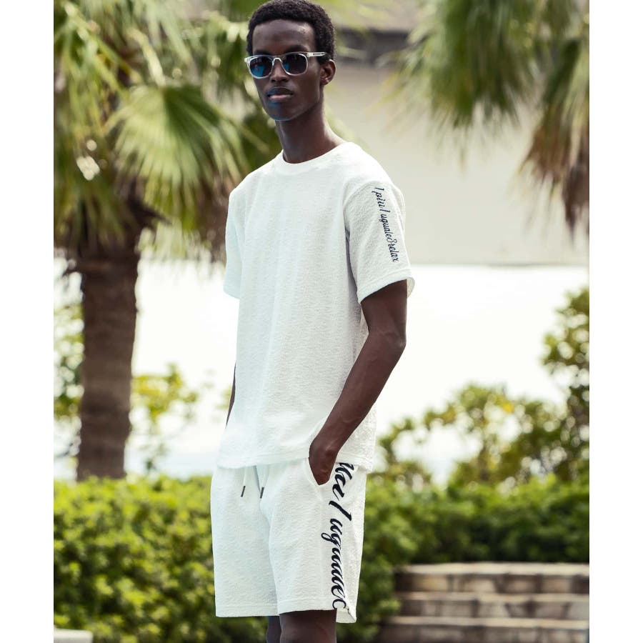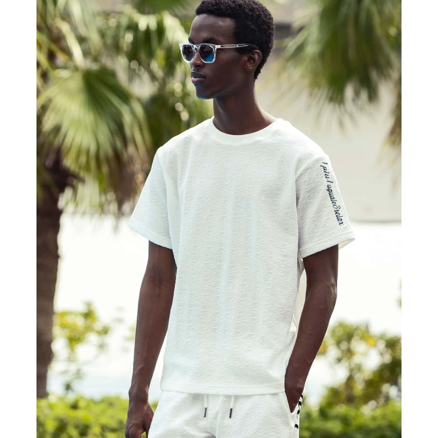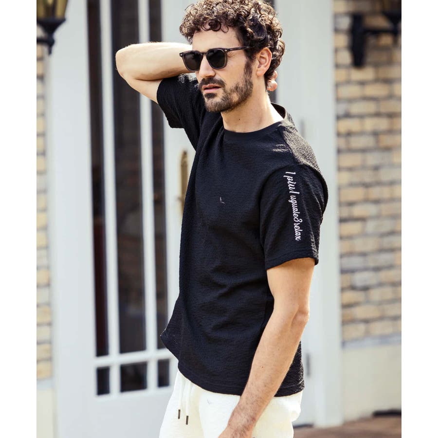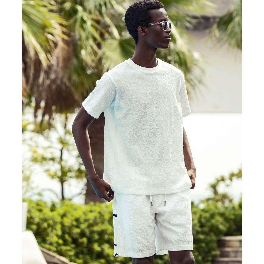 凹凸のあるシボ素材が肌に触れる面積を減らし、通気性に優れた清涼感のある着心地が魅力のクレープ生地。
