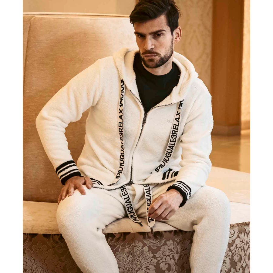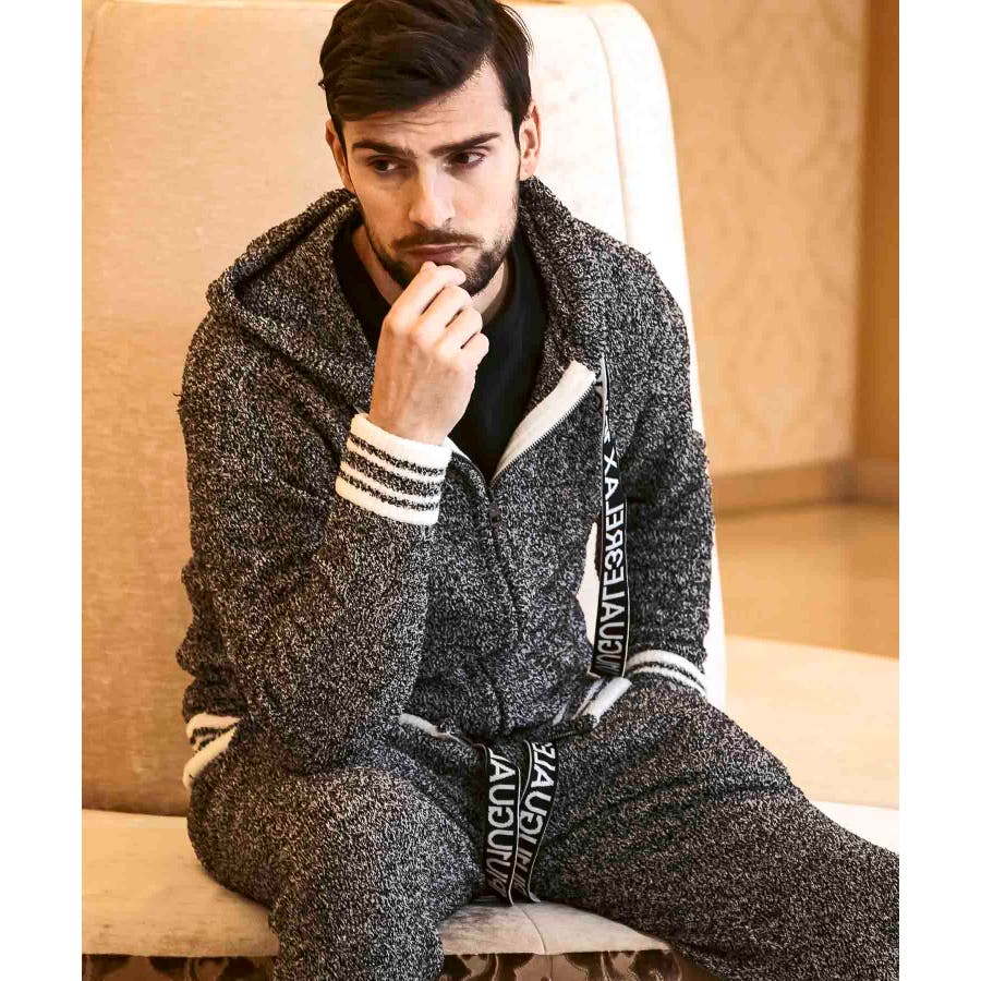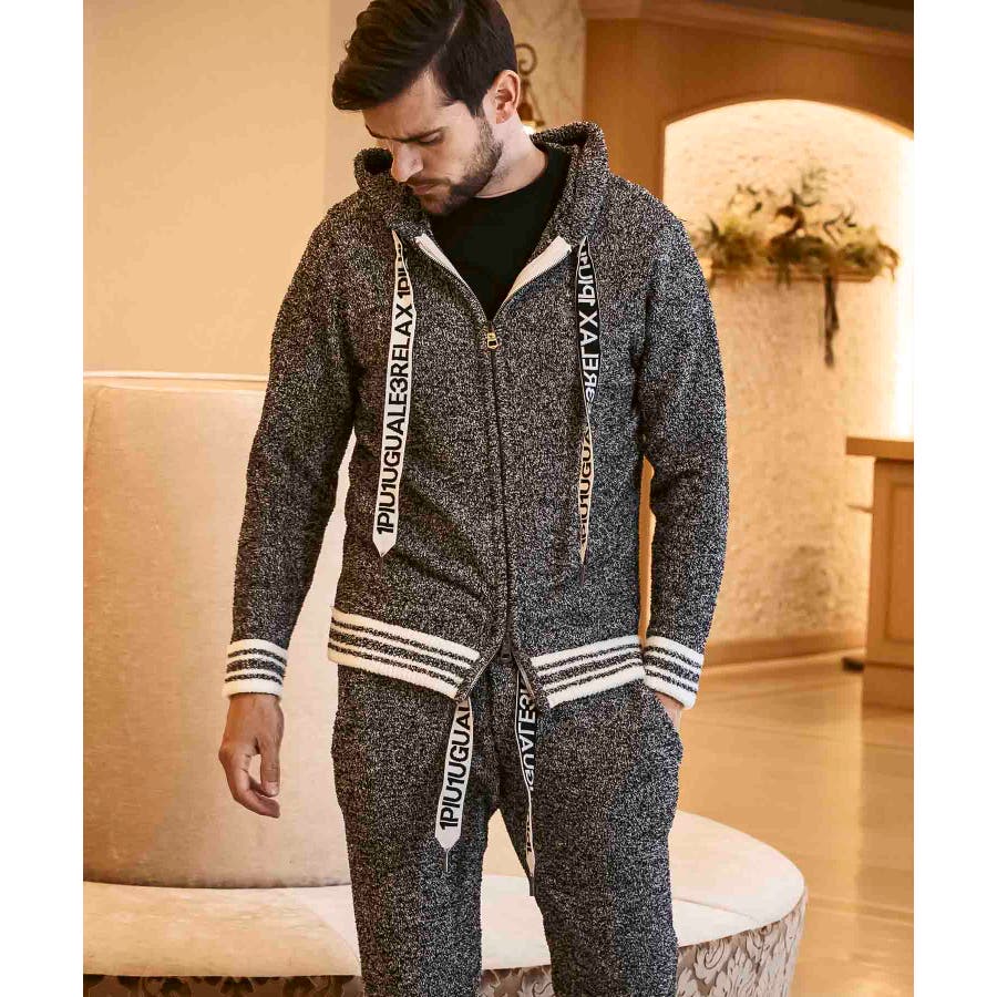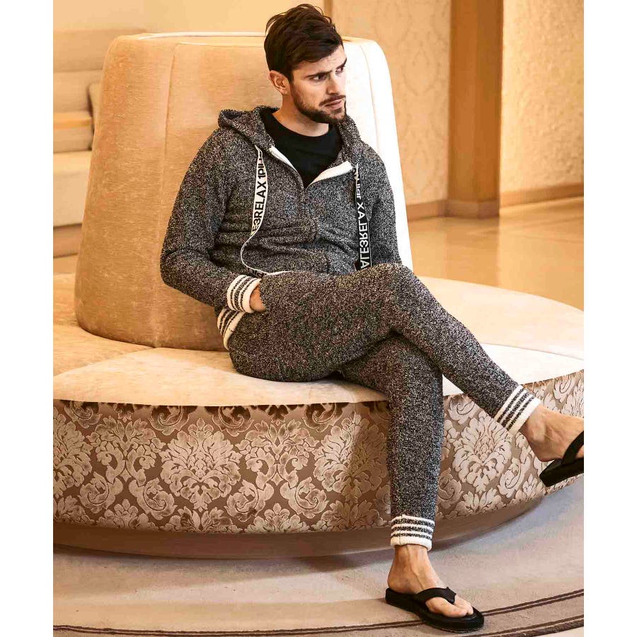 同生地のパンツ⇒usk-24042とのセットアップで、極上のくつろぎスタイルの完成です。