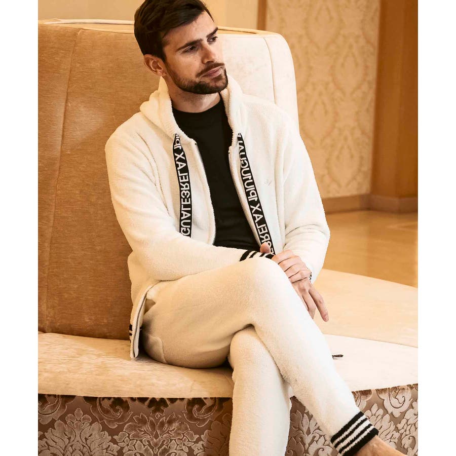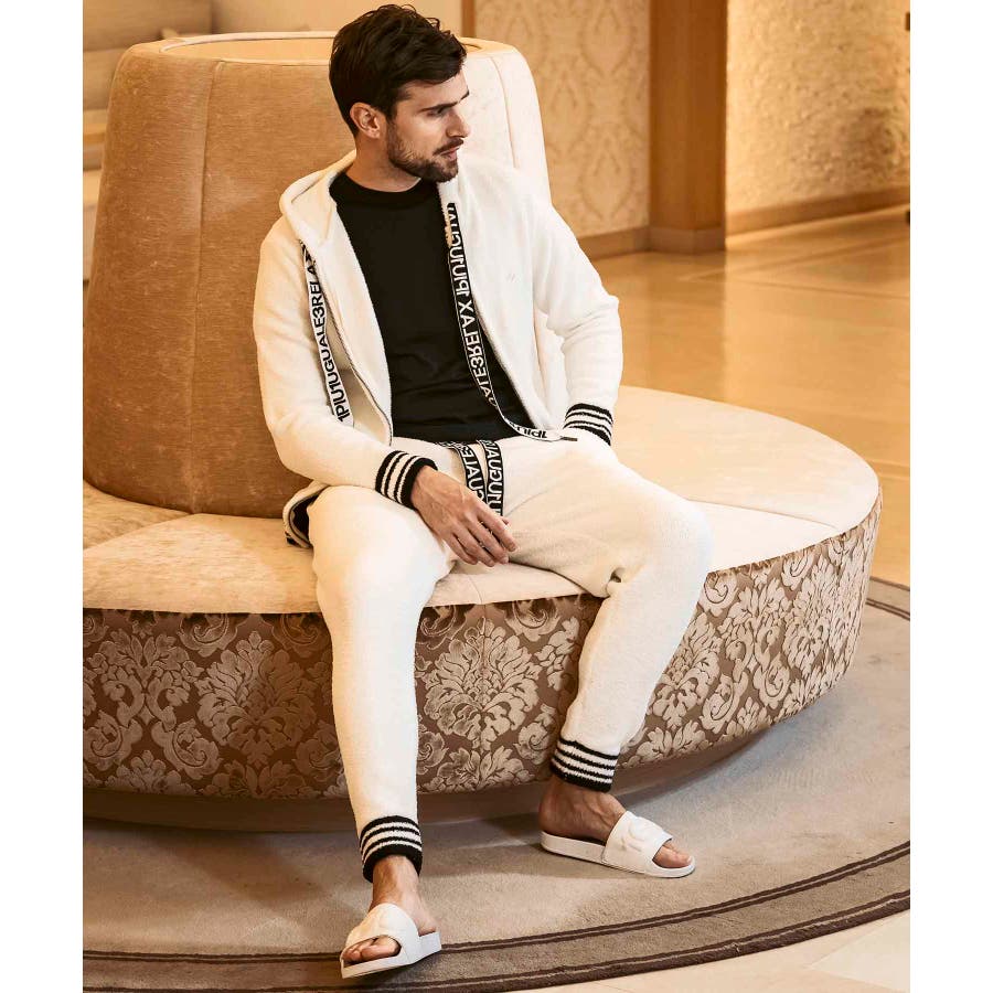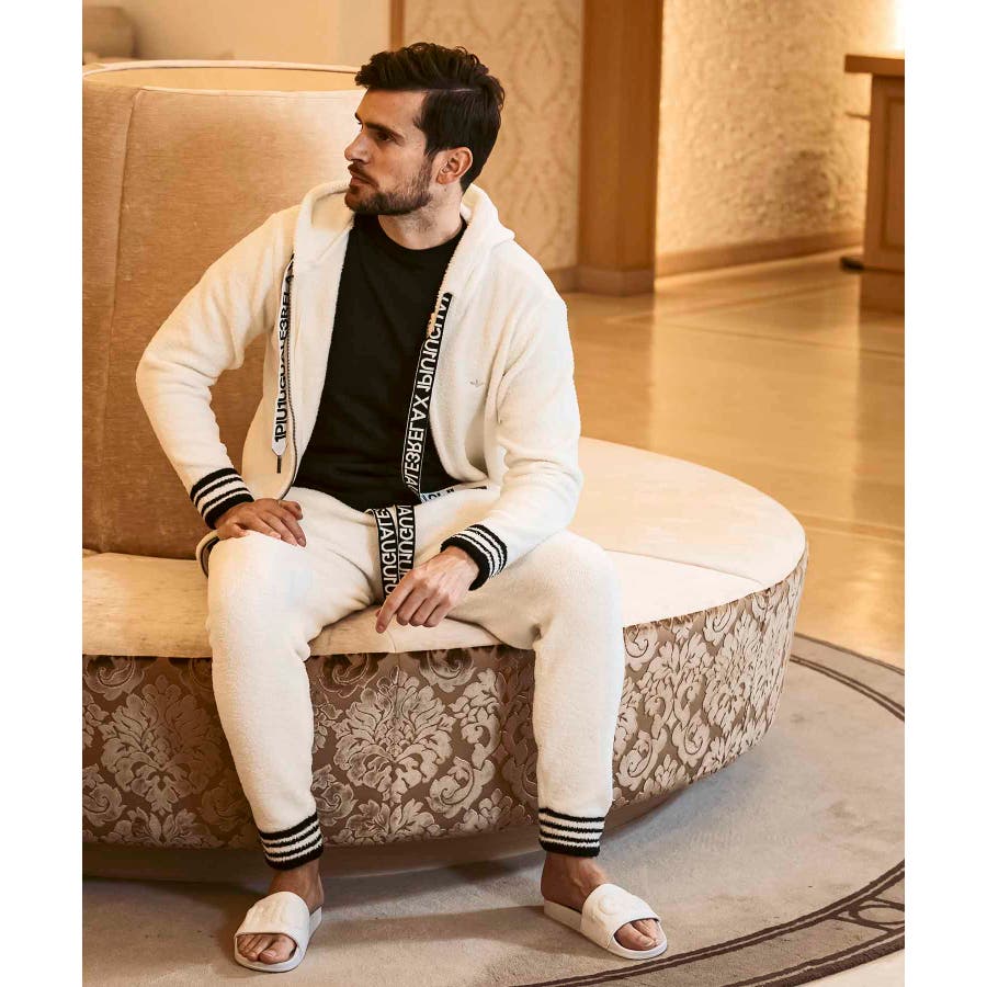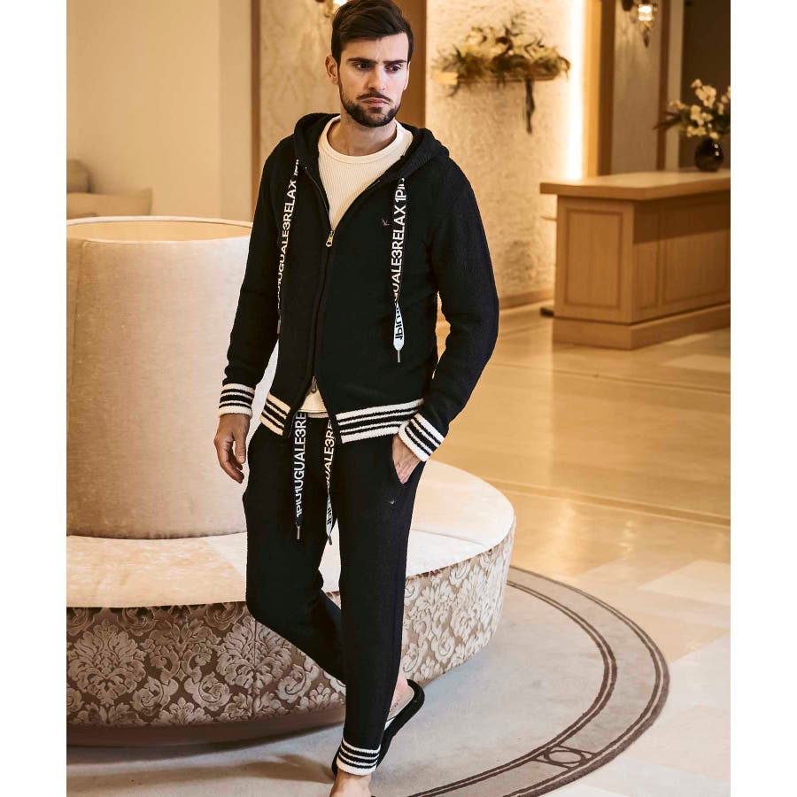 同生地のパンツ⇒usk-24042とのセットアップで、極上のくつろぎスタイルの完成です。