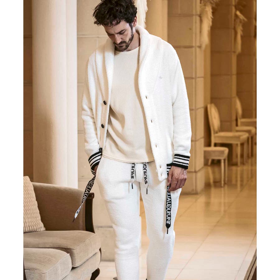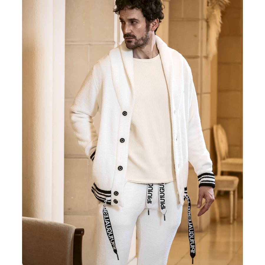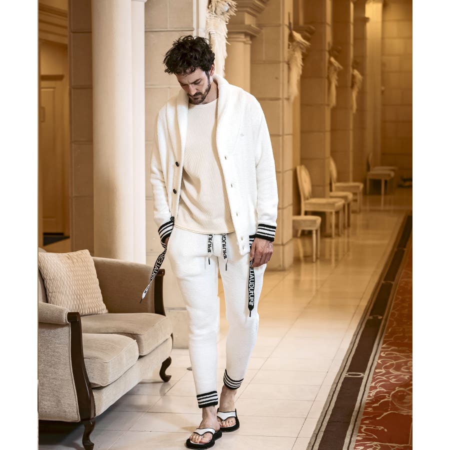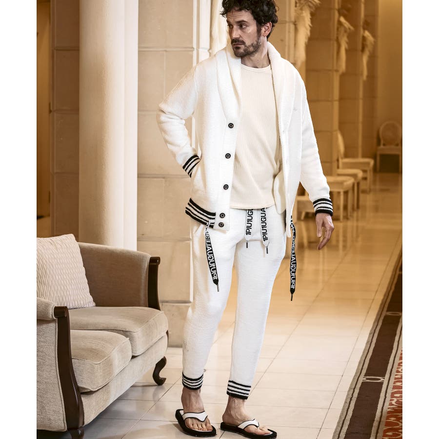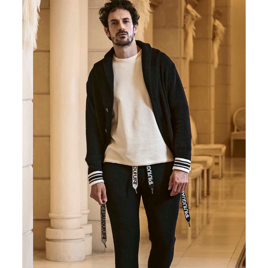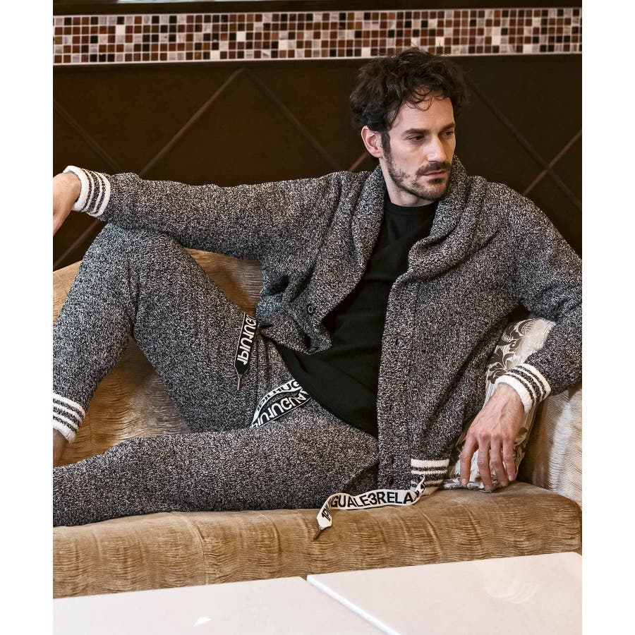 同生地のパンツ⇒usk-24042とのセットアップで、極上のくつろぎスタイルの完成です。