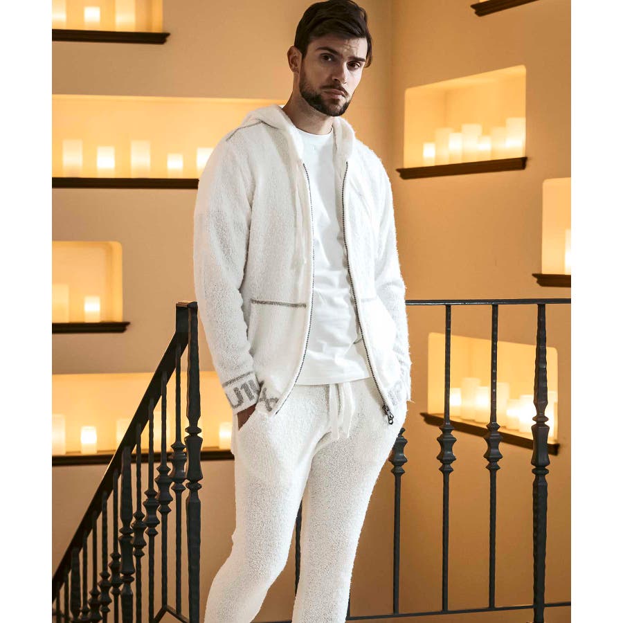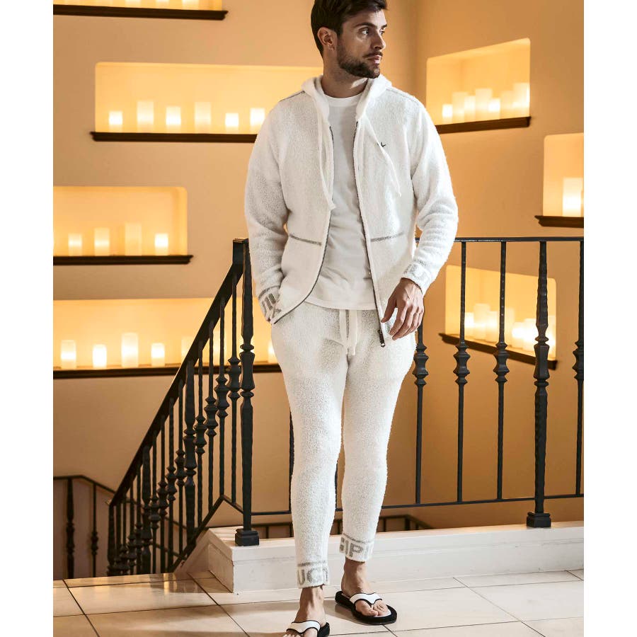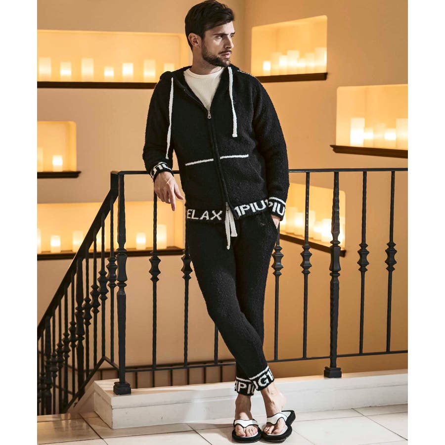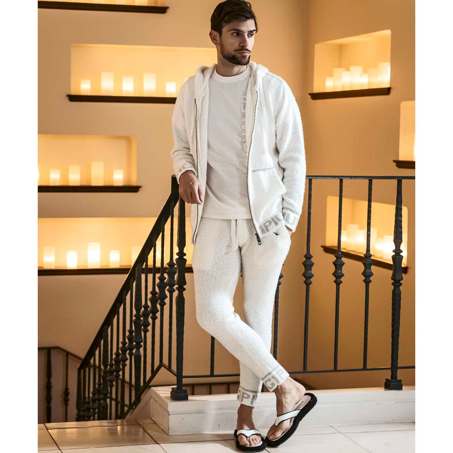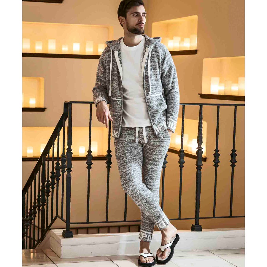 同生地のパンツ⇒usk-24046とのセットアップで、極上のくつろぎスタイルの完成です。
