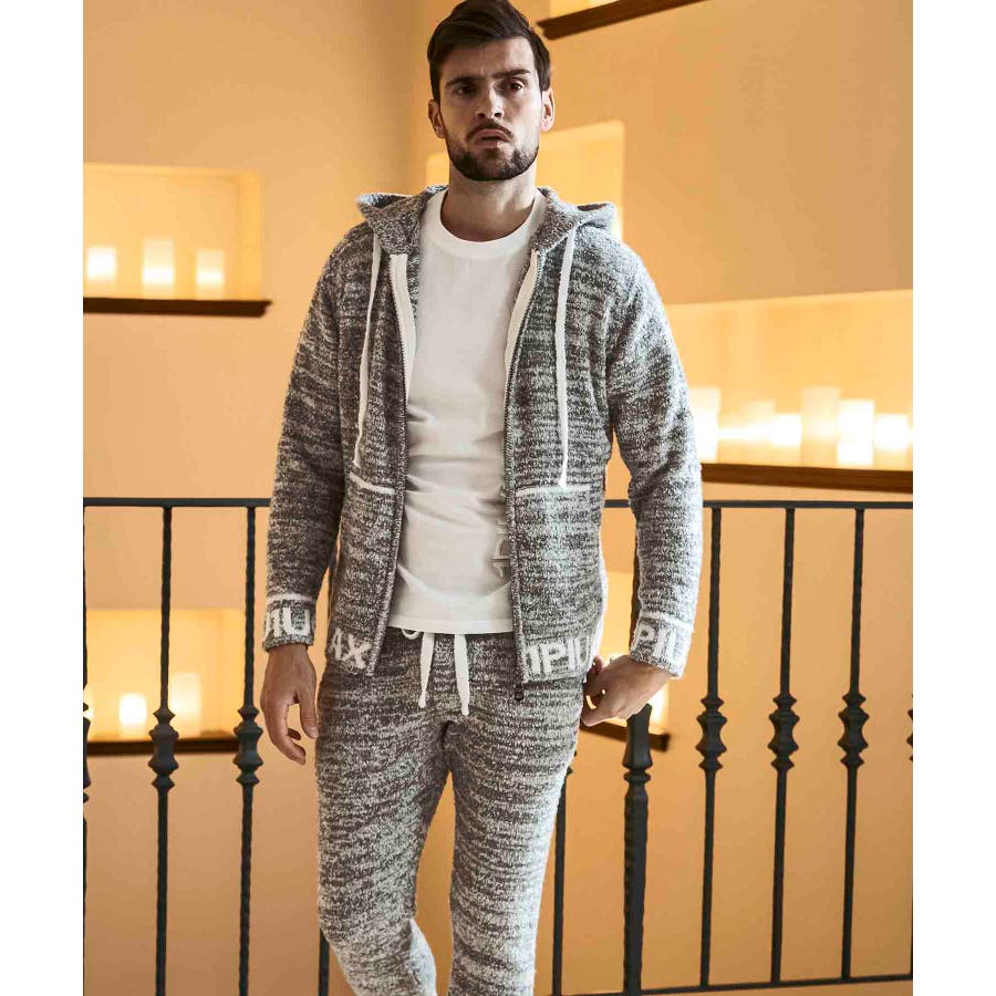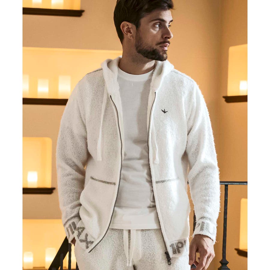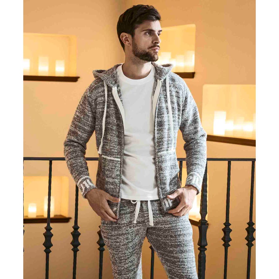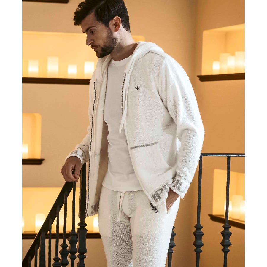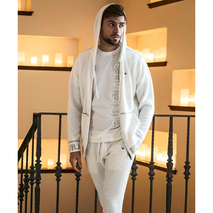 同生地のパンツ⇒usk-24046とのセットアップで、極上のくつろぎスタイルの完成です。