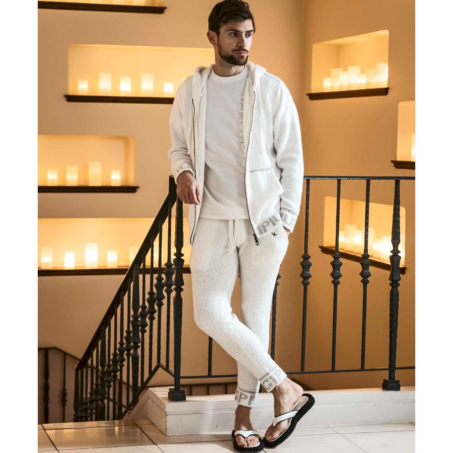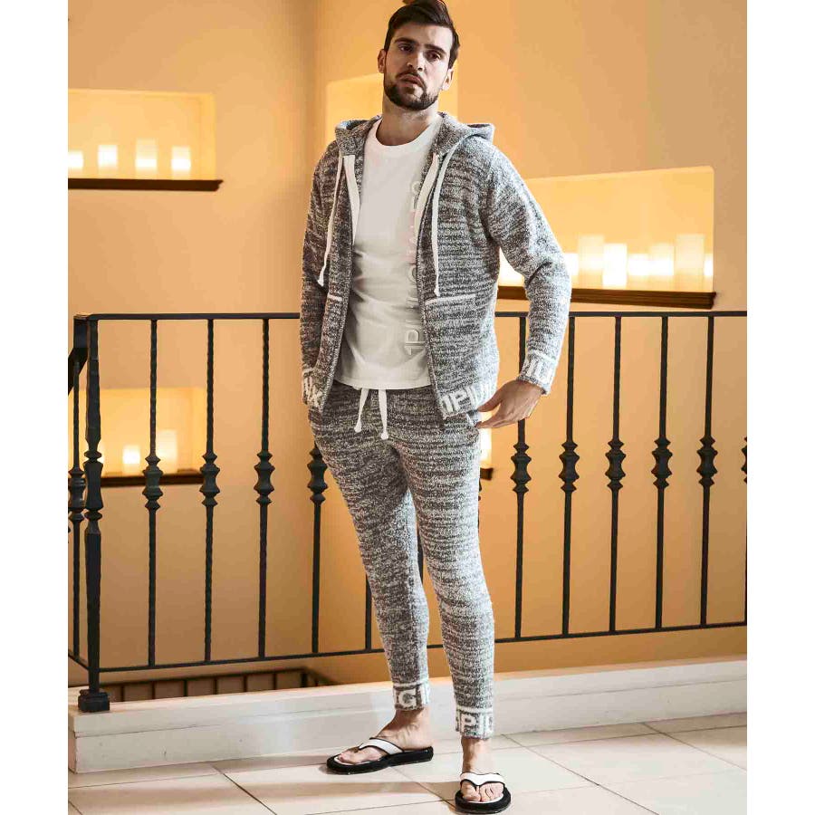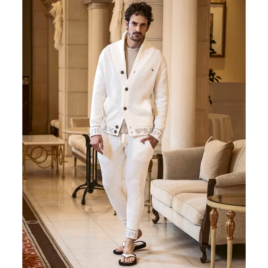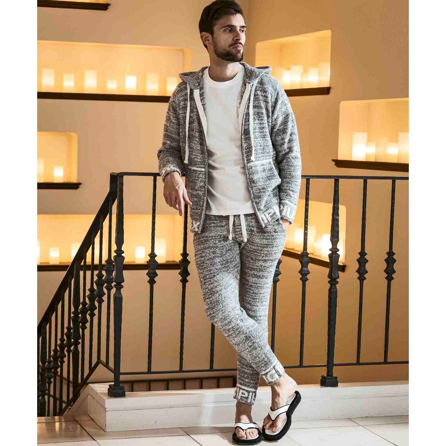 同生地のカーディガン⇒usk-24045やパーカー⇒usk-24044とのセットアップで、極上のくつろぎスタイルの完成です。