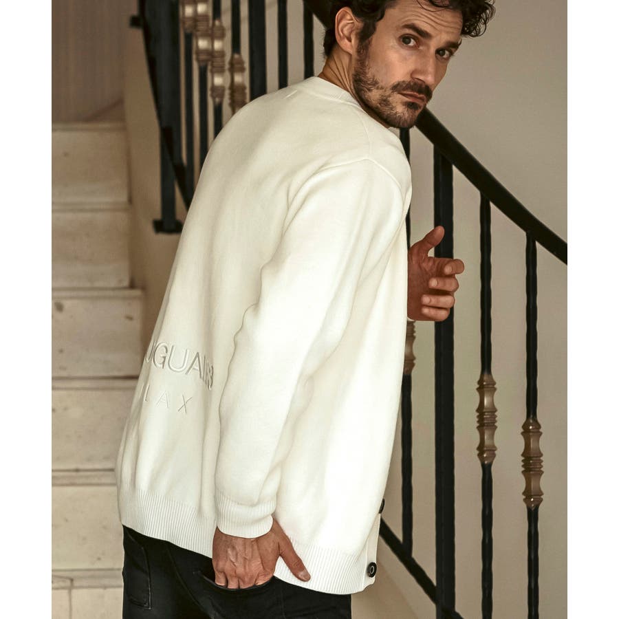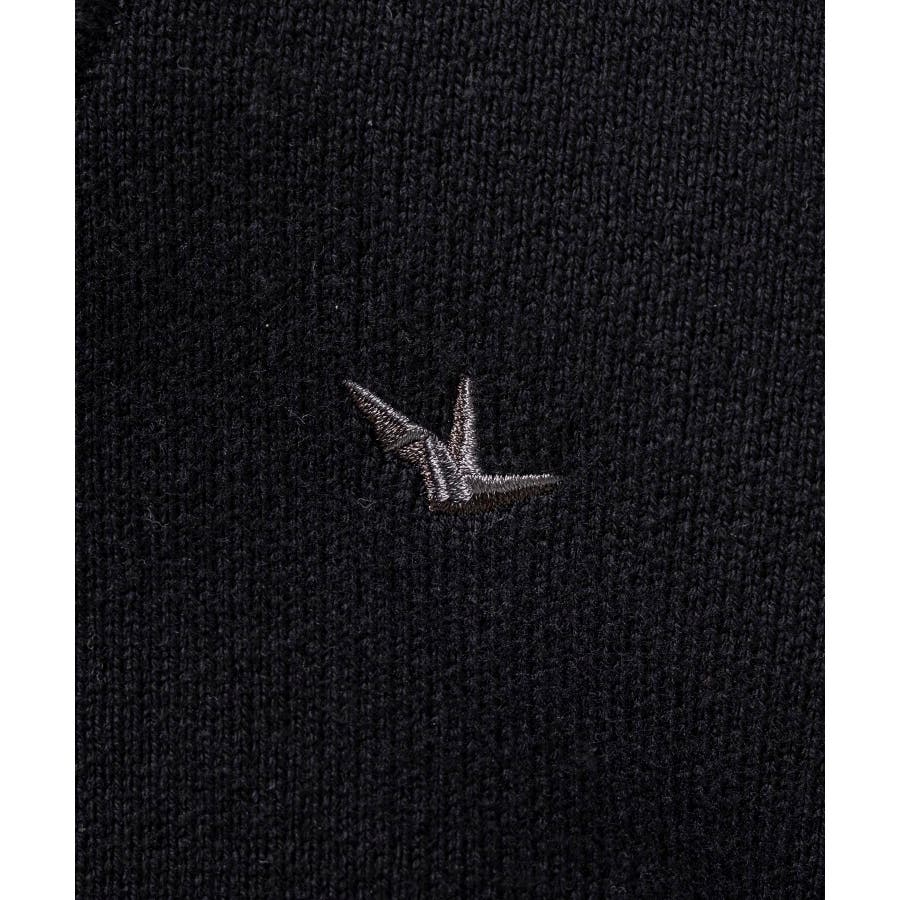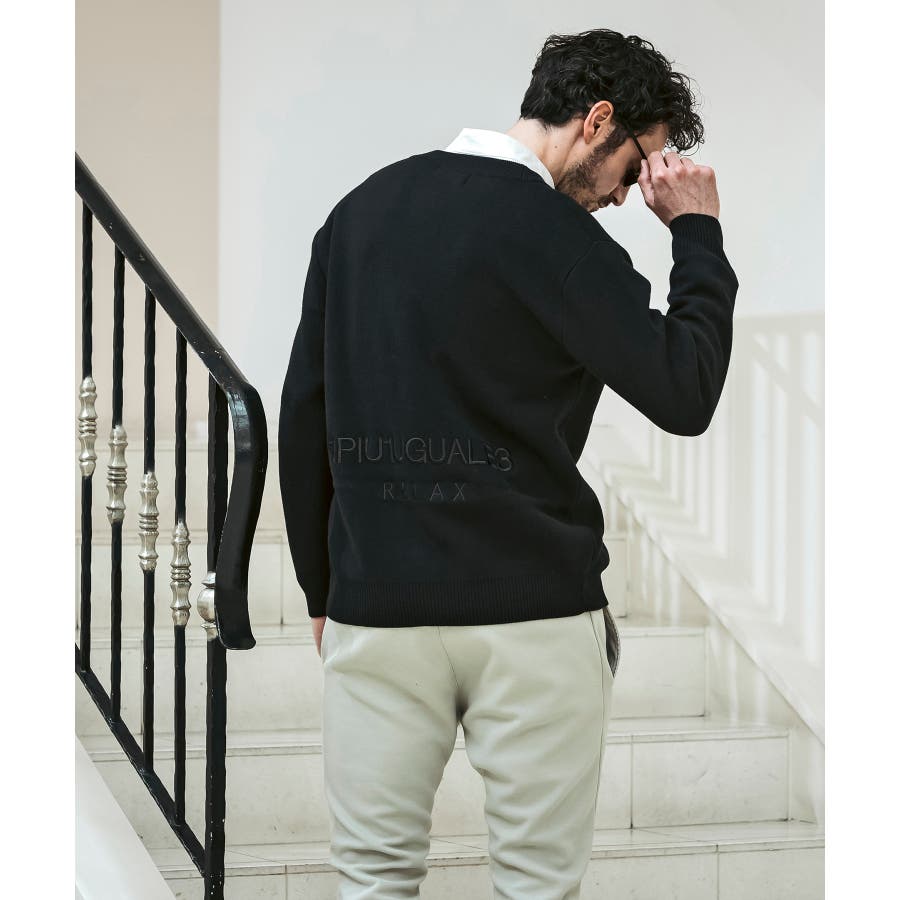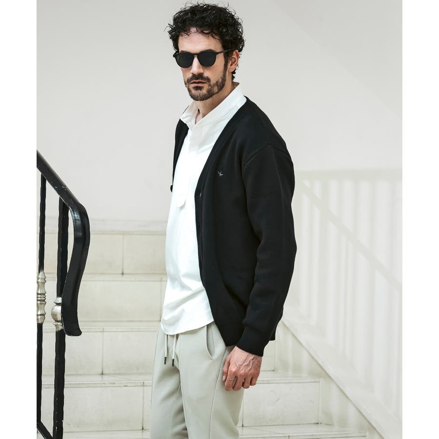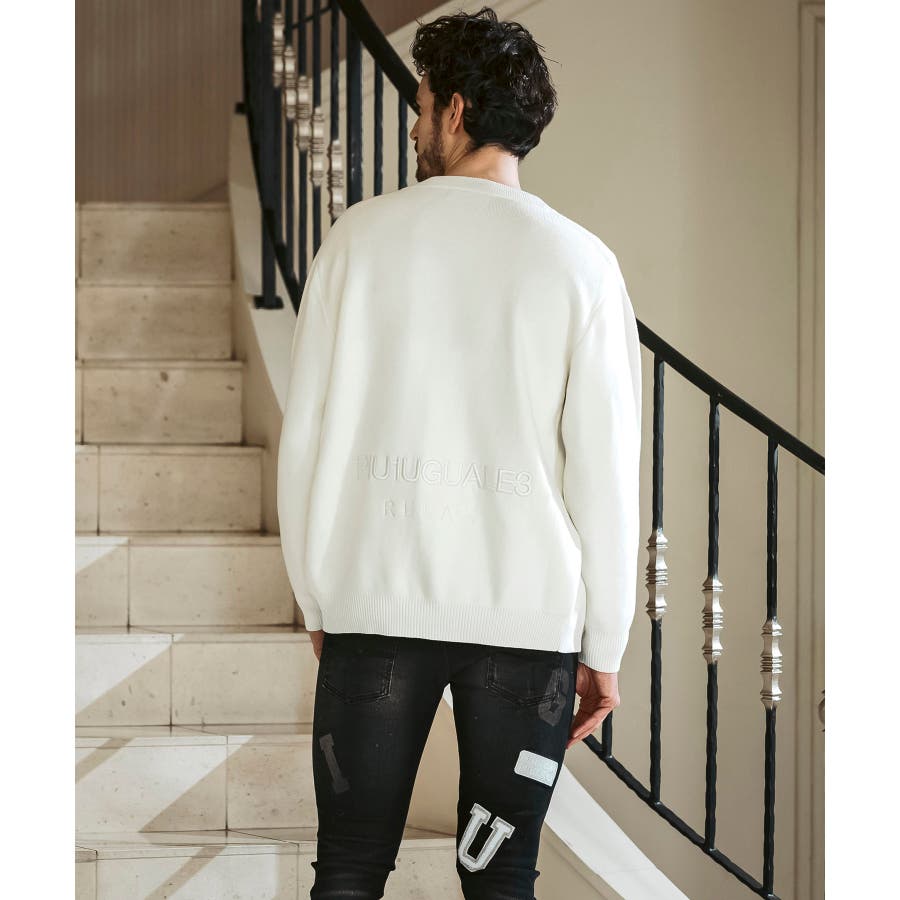 背面にブランドロゴを刺繍で配置したミドルカーデ。