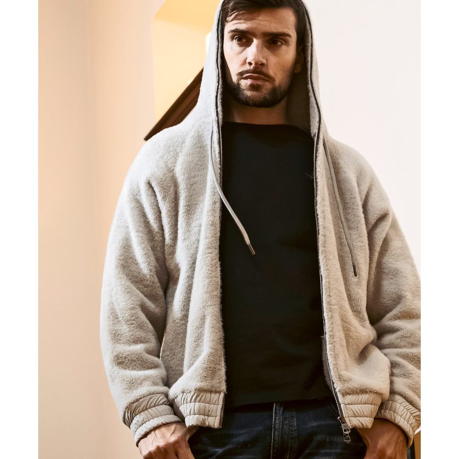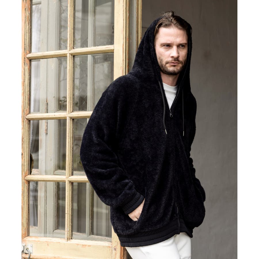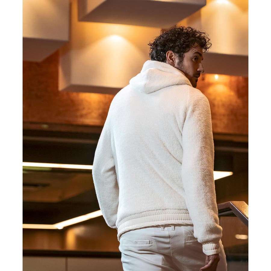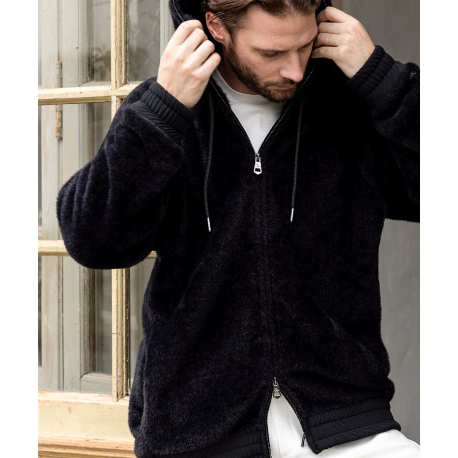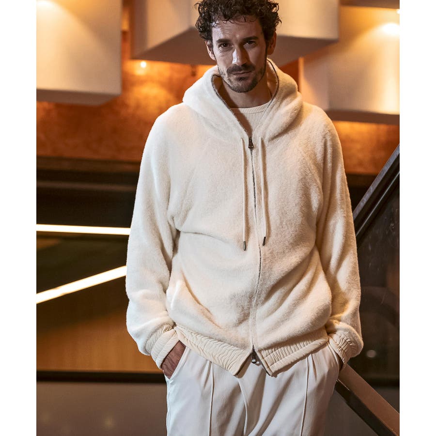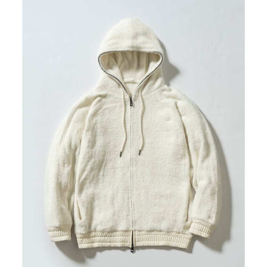 滑らかな手触りのいいシャギー生地で仕立てたジップフーディー。