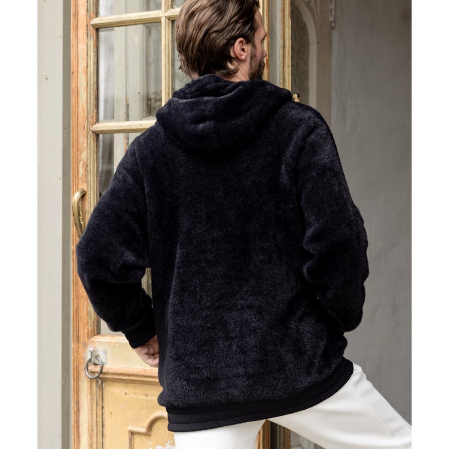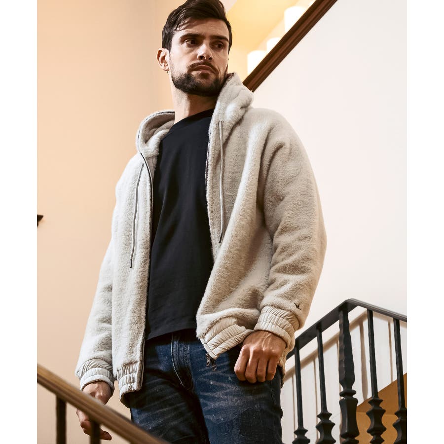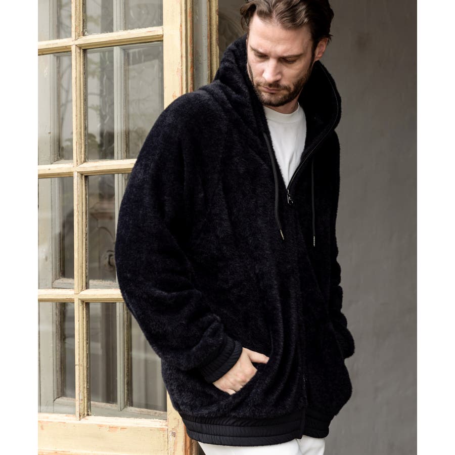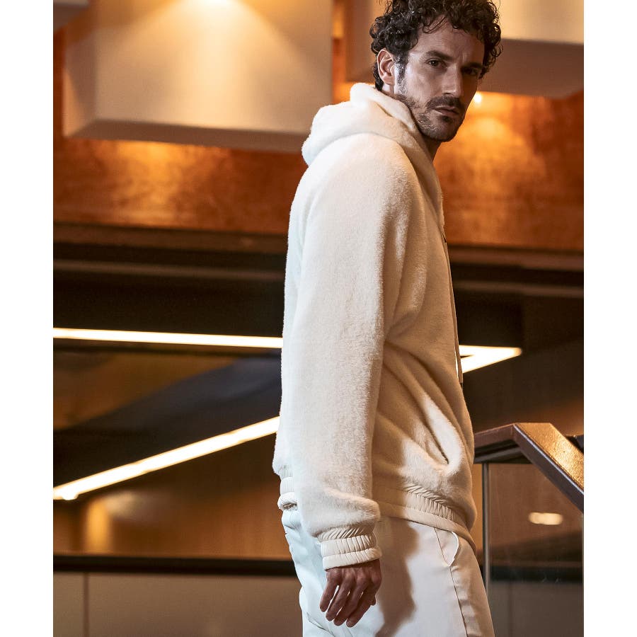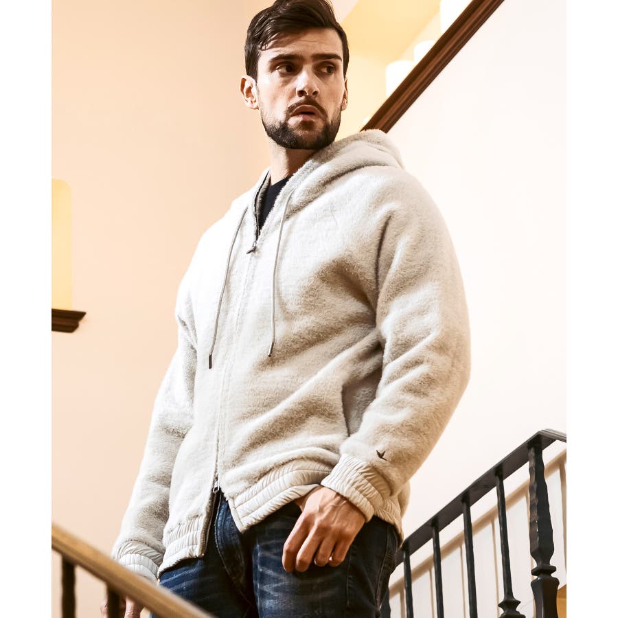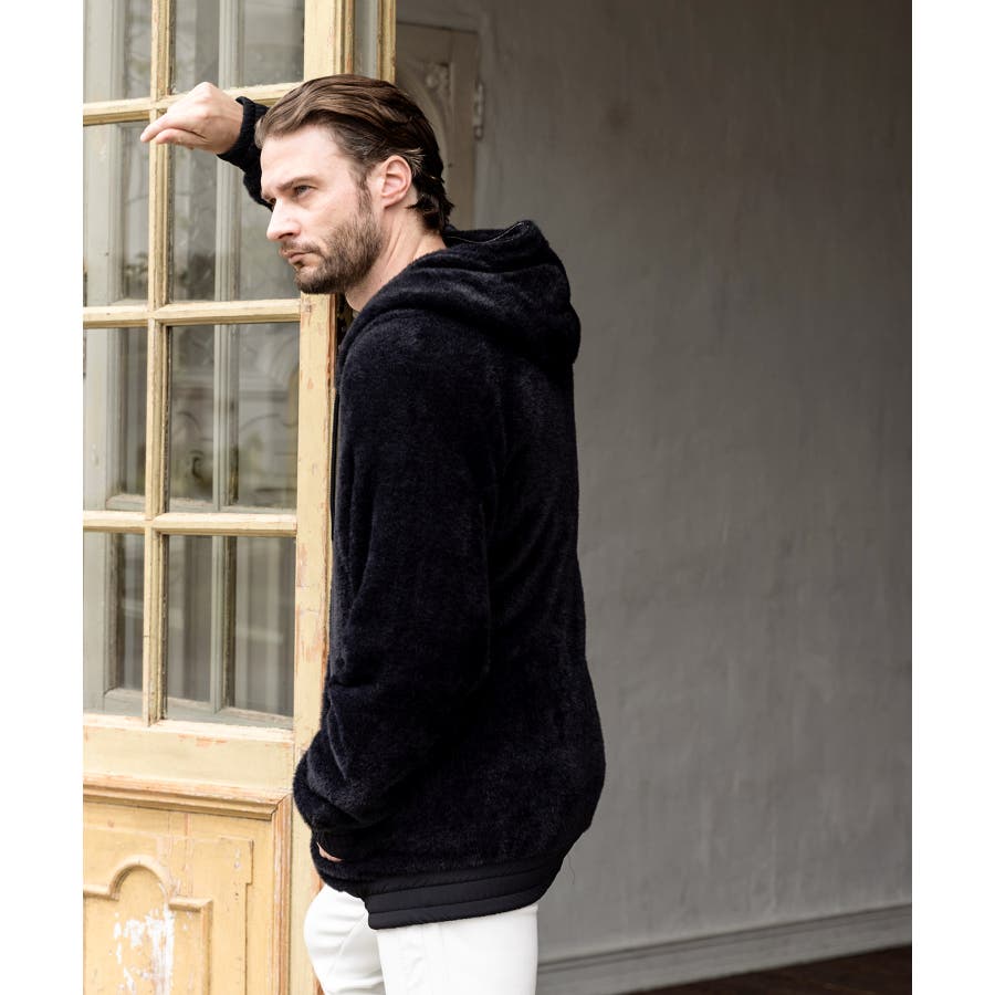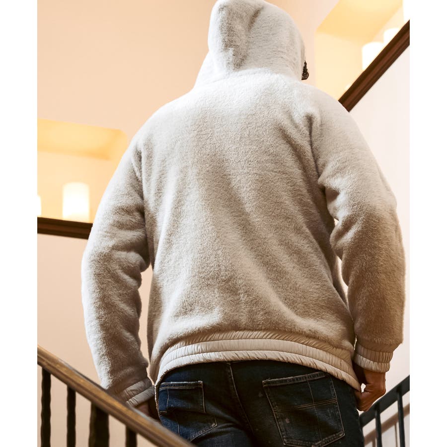 滑らかな手触りのいいシャギー生地で仕立てたジップフーディー。