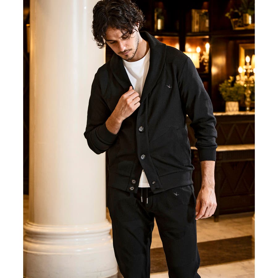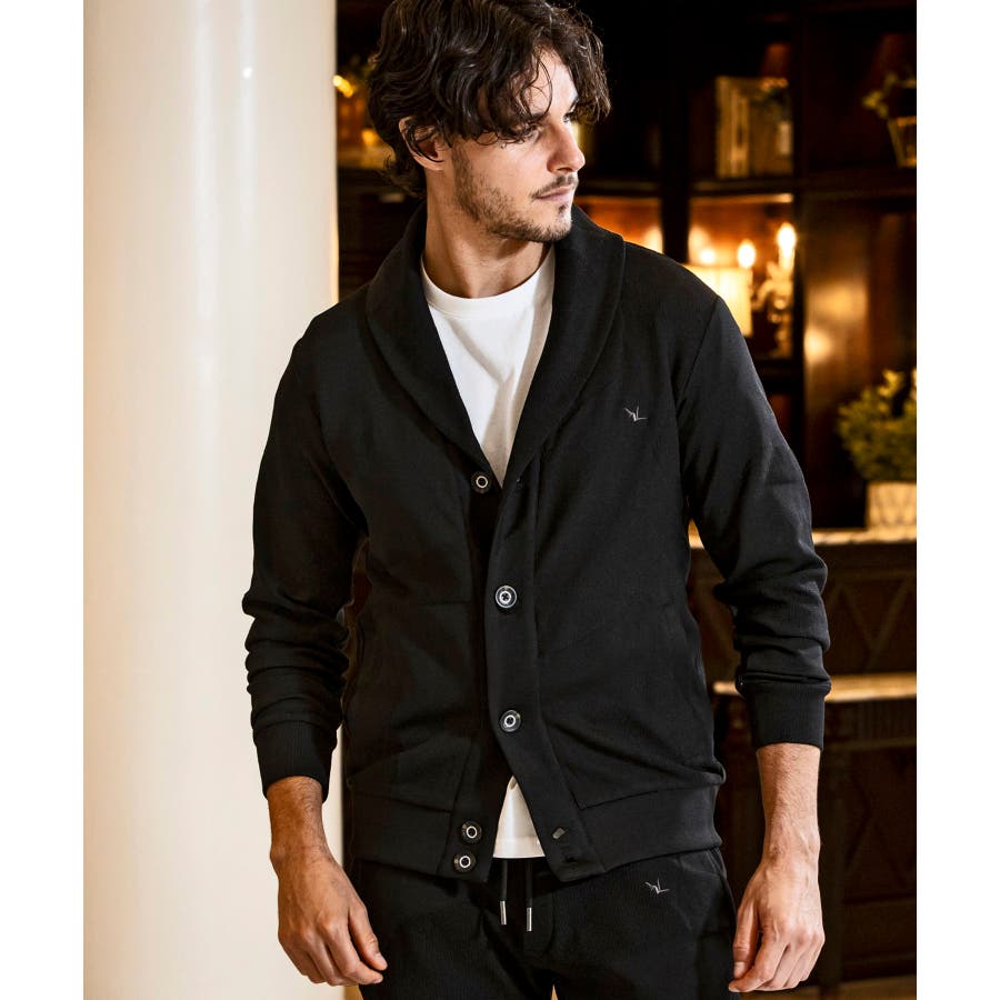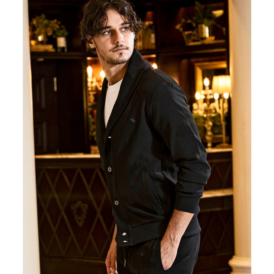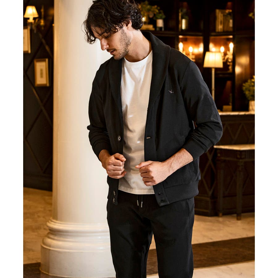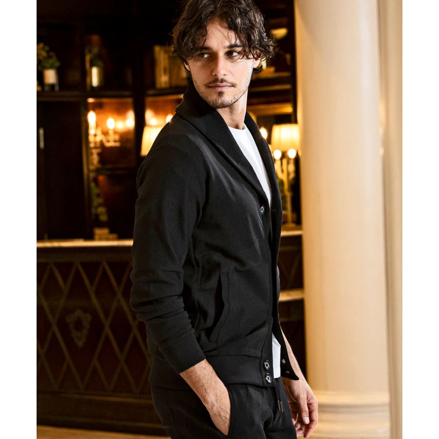 ショールカラーが顔回りにアクセントを添え高級感漂う仕上がりに。