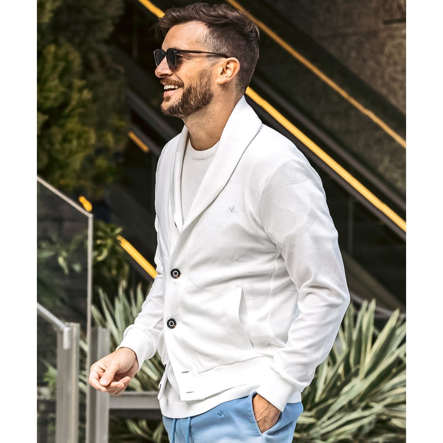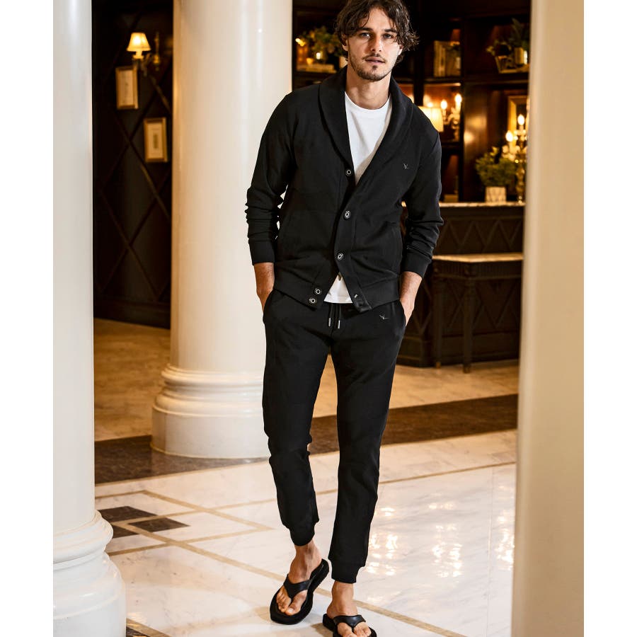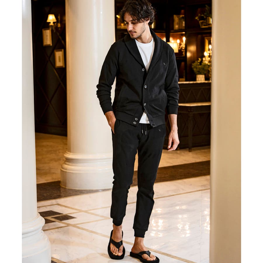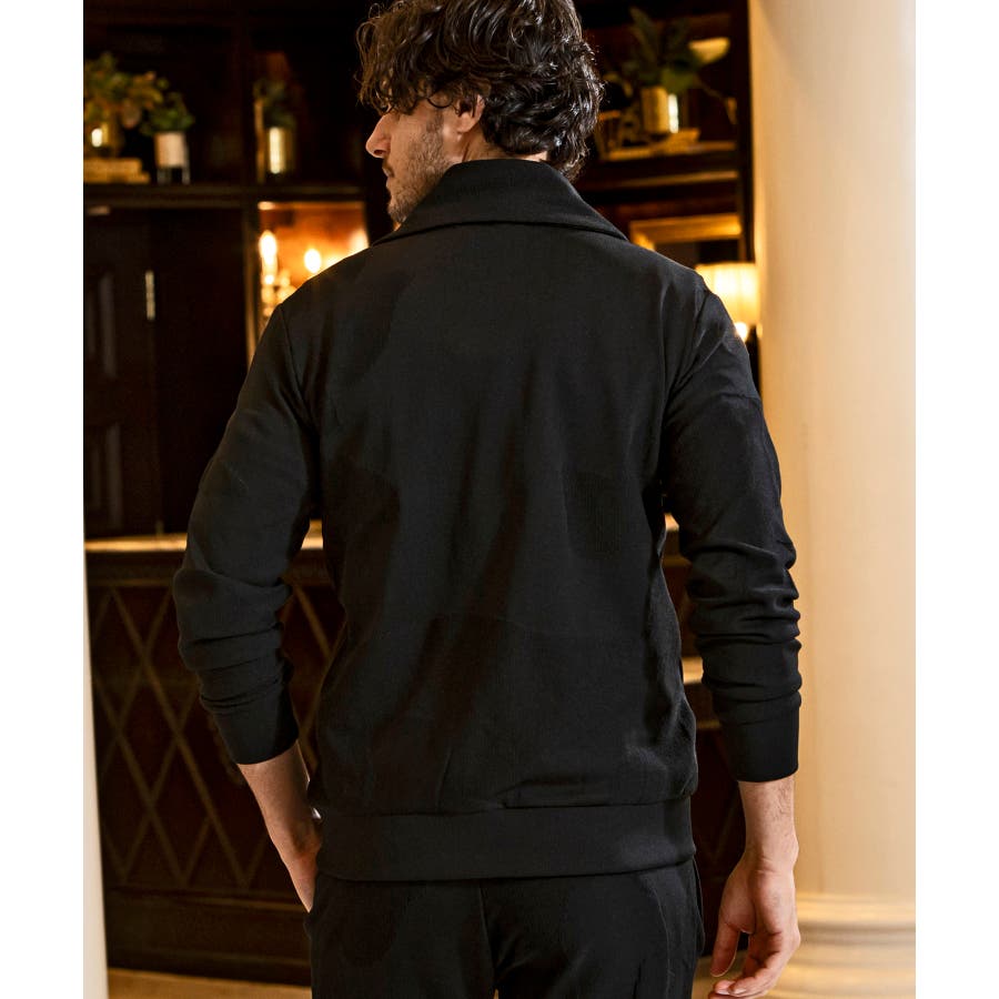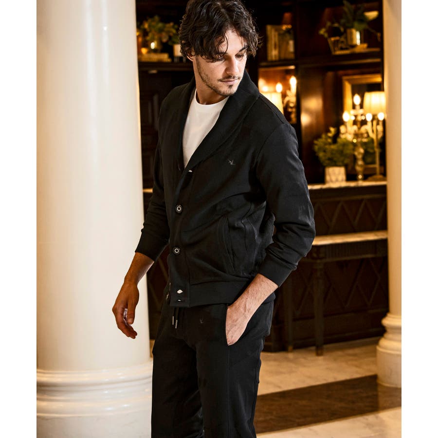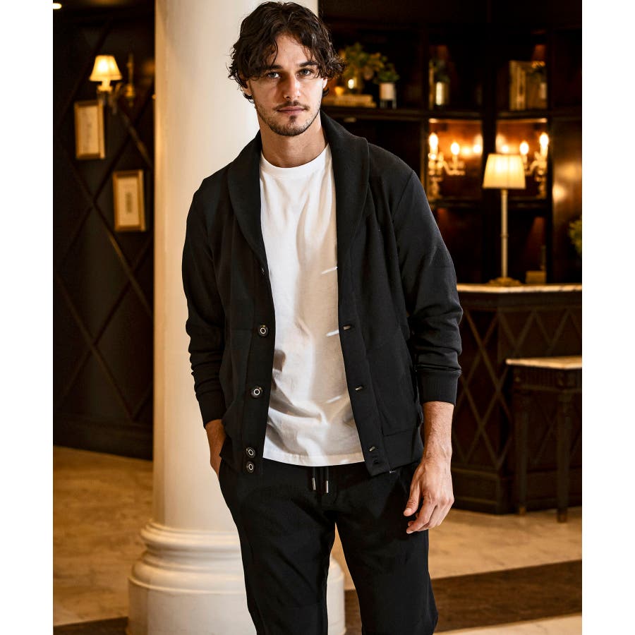 ショールカラーが顔回りにアクセントを添え高級感漂う仕上がりに。
