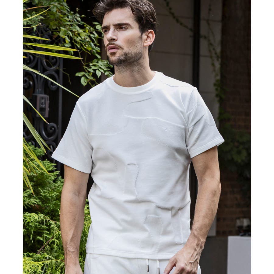 1PIU1UGUALE3 RELAXのデザインアイコンともいえるカモ柄をジャガードで表現し、目立ち過ぎず着用しやすい大人の洒落乙な雰囲気に。