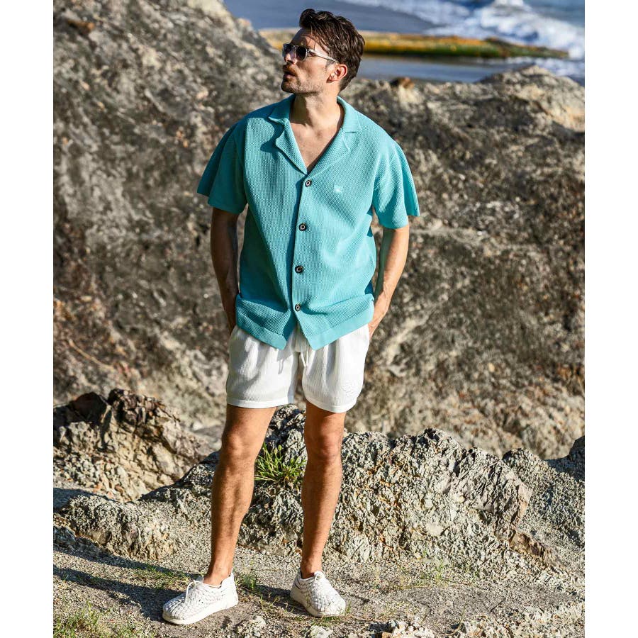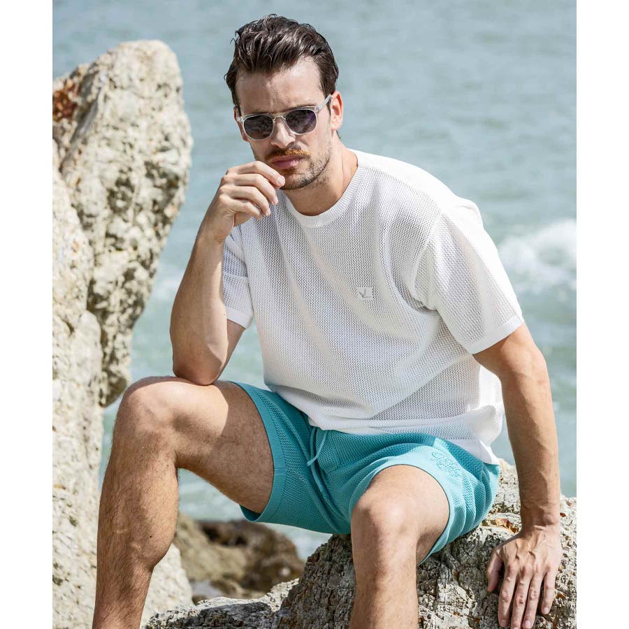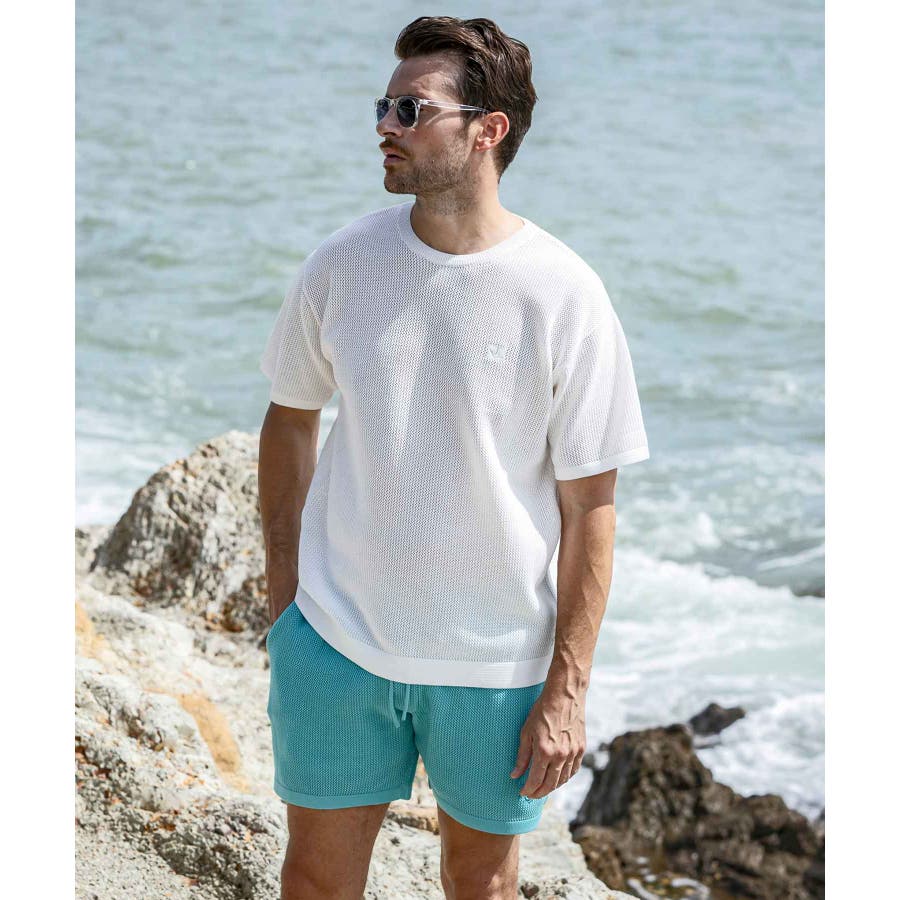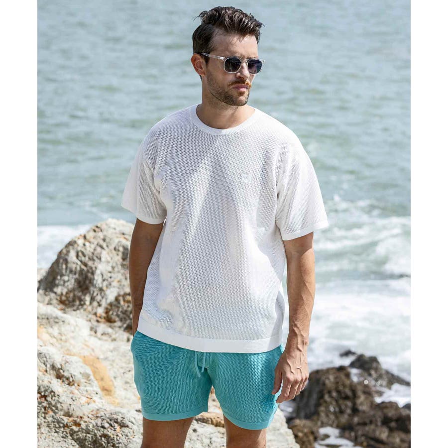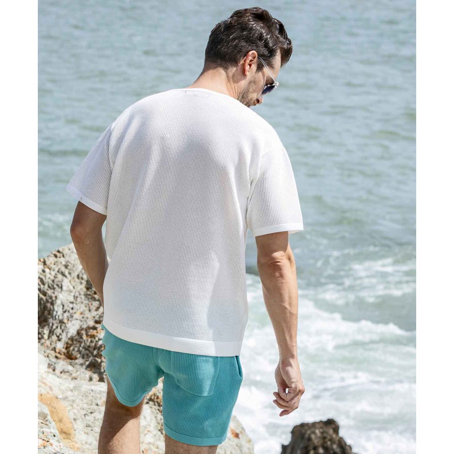 吸水性に優れた12ゲージのメッシュ編みが涼しげな透け感を演出、シンプルなデザインながら素材感が豊かな表情をもたらします。