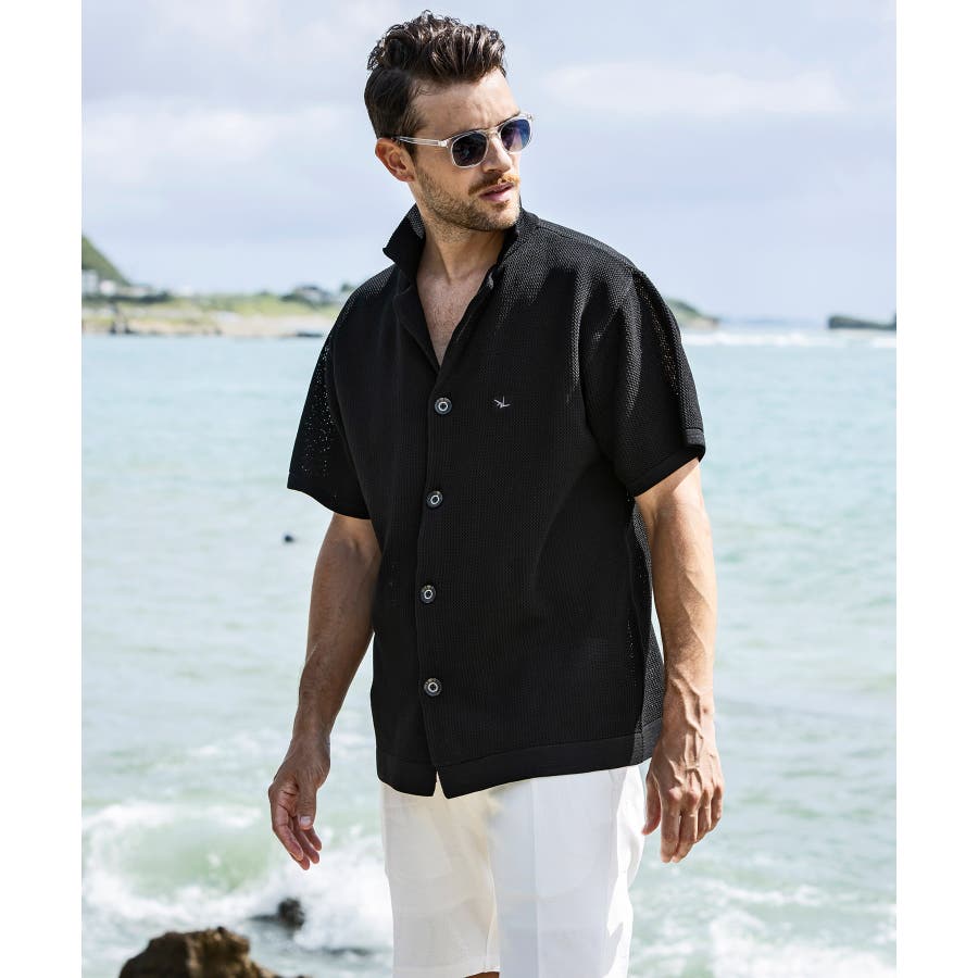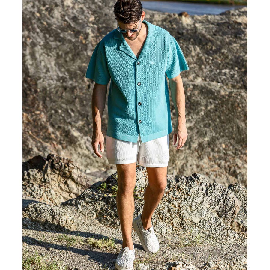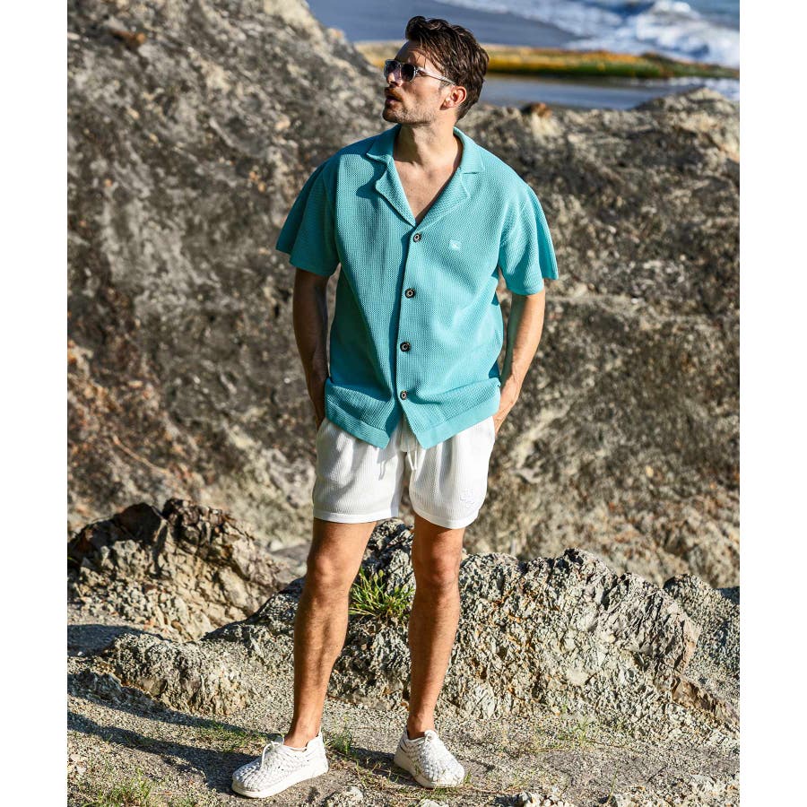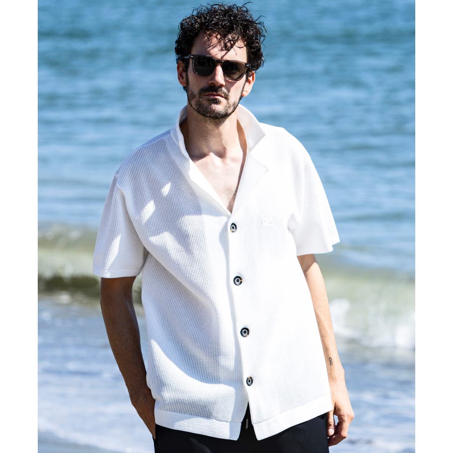 程よい膨らみとドライで肌触りの良い素材感で仕上げたニット開襟シャツ。