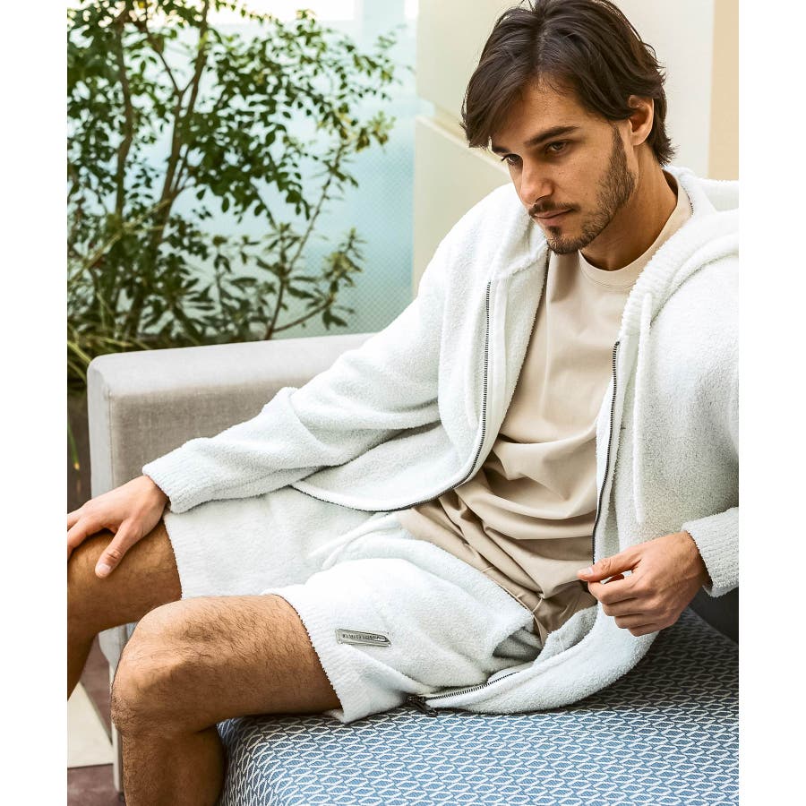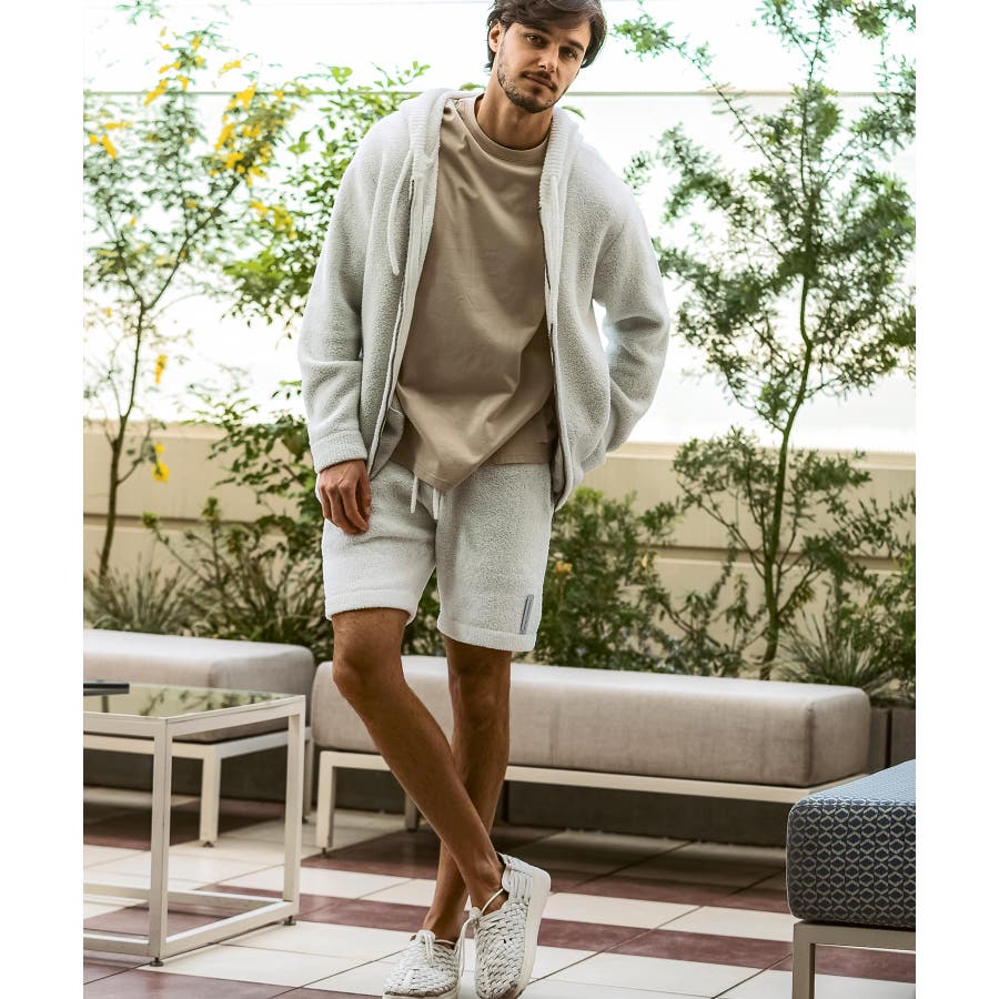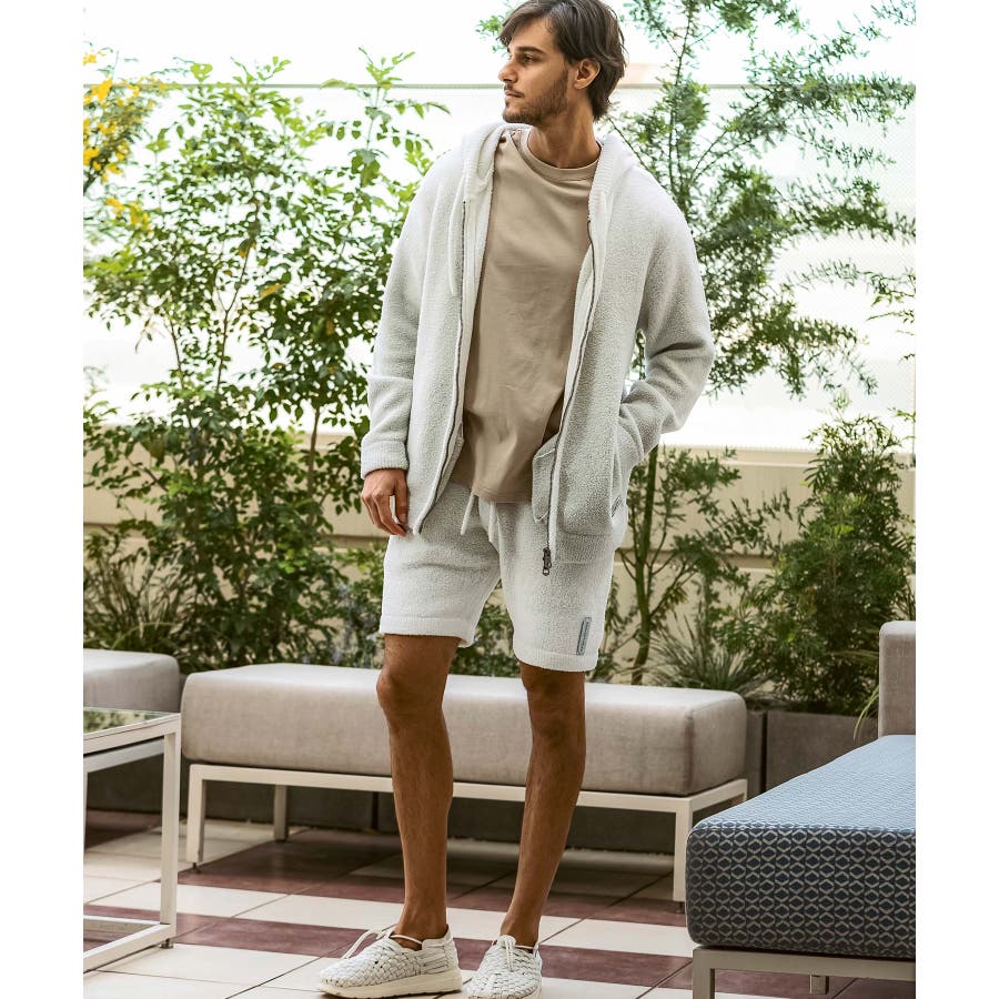 同生地のカーディガンやパーカーと合わせれば極上のくつろぎスタイルに。