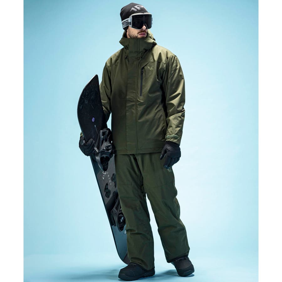 ウエストにはパウダーガードを備え、転倒時や深いパウダーの際にも安心の機能性。