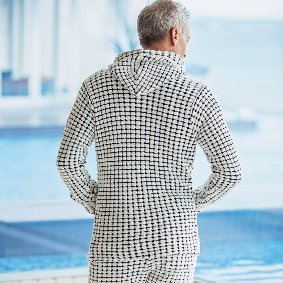 上質なタオルのような優しい肌触りで、伸縮性も高くストレスフリーかつリラクシングな着心地。