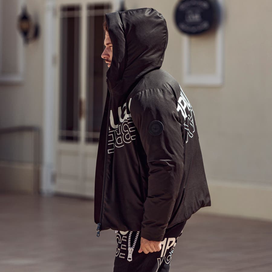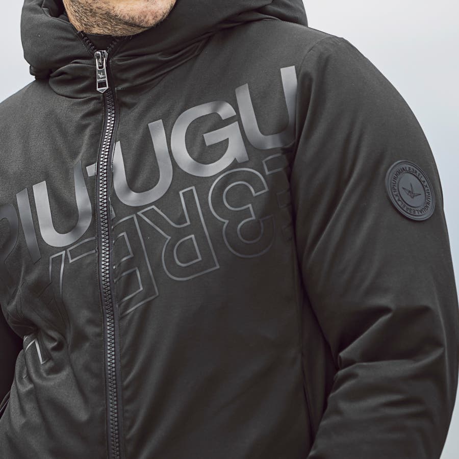 さらに風よけにも縦使いでロゴを施し、ジップを開けた状態での着用にもこだわりが見えます。