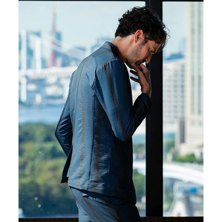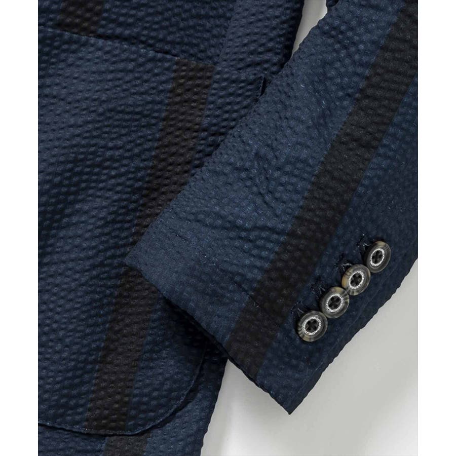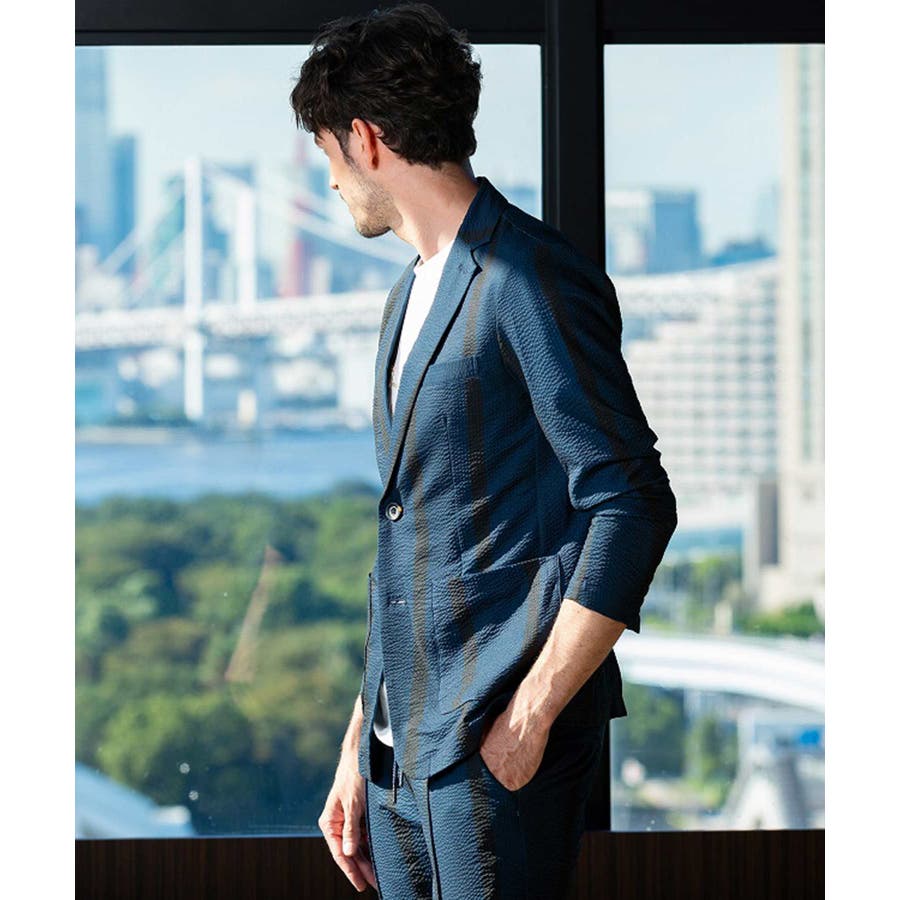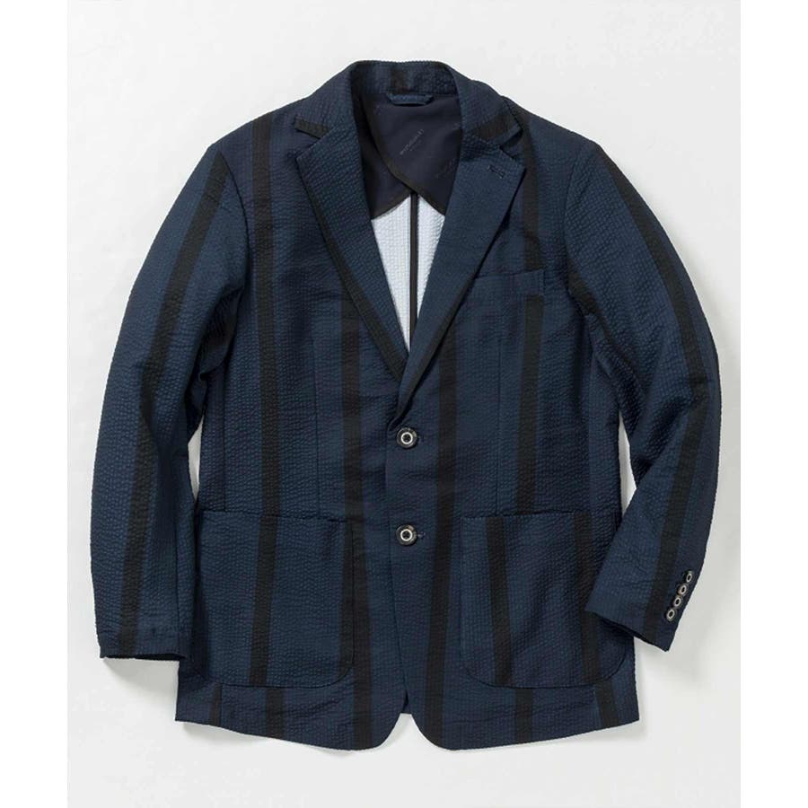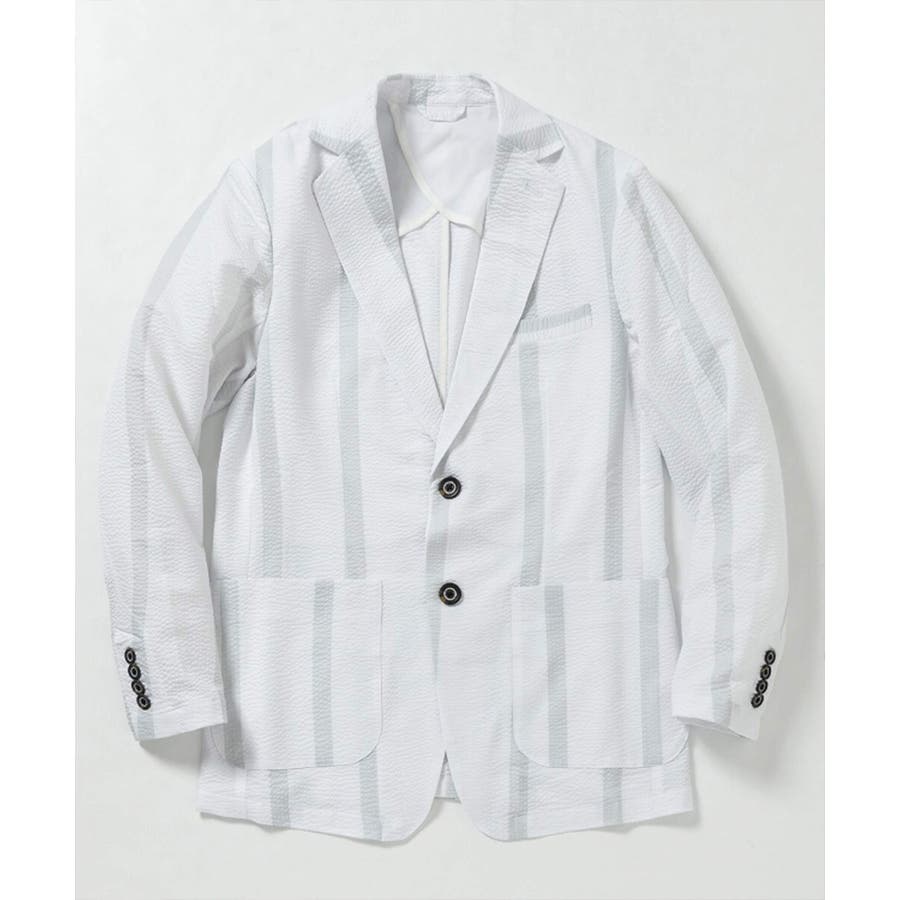 ストレッチ性のあるシアサッカー生地で仕立てたテーラードジャケット。