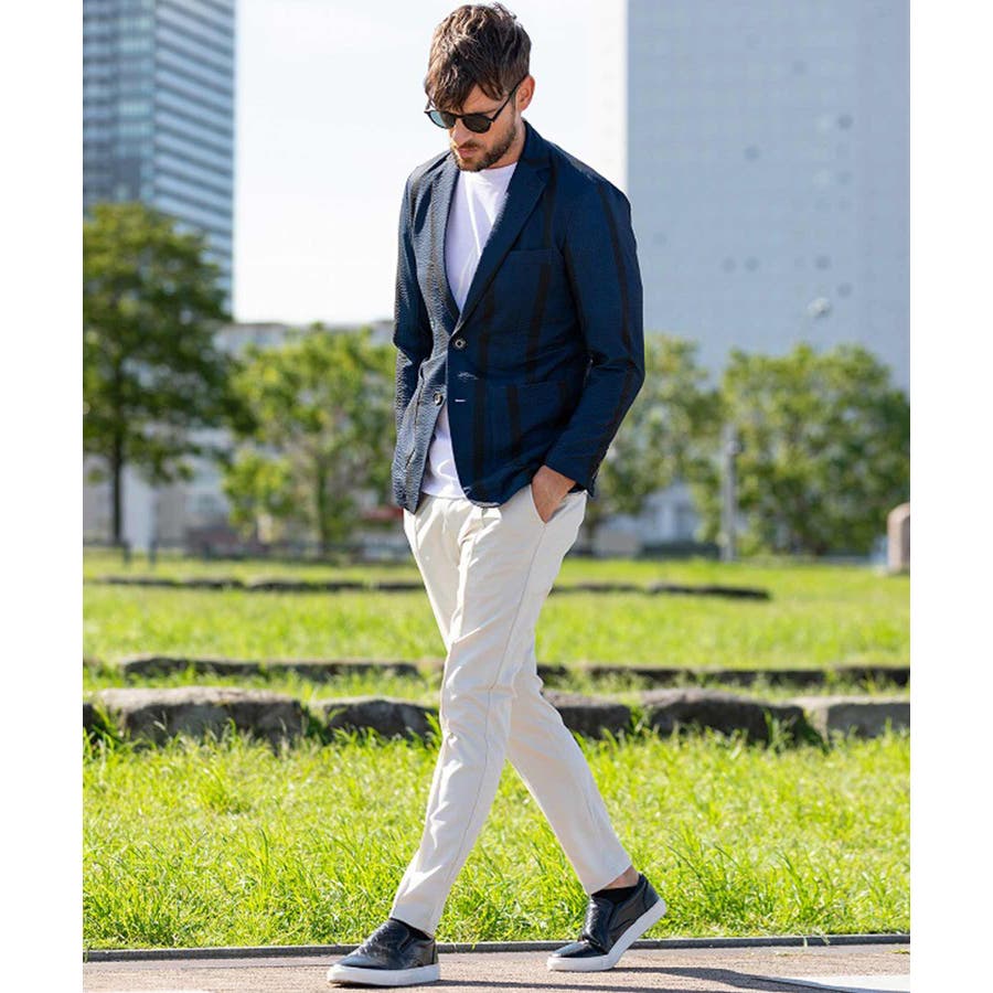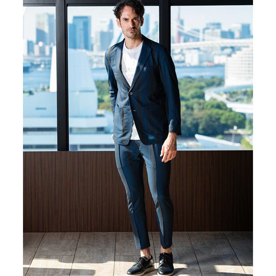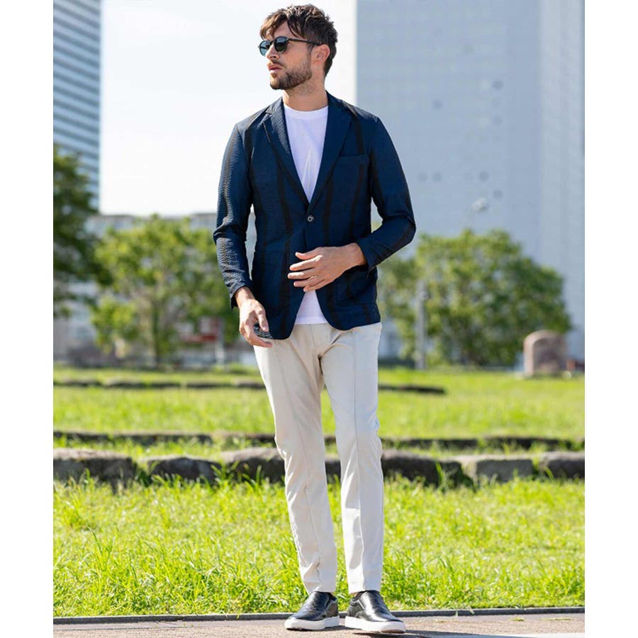存在感のあるワイドピッチのストライプが遊び心のある大人の夏を演出。