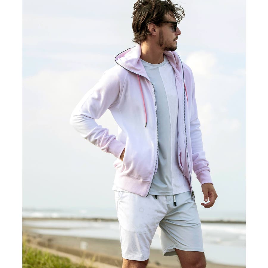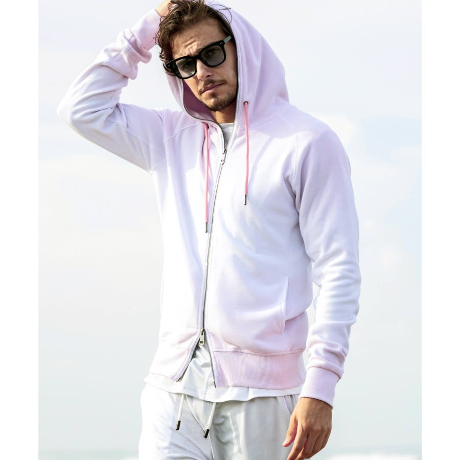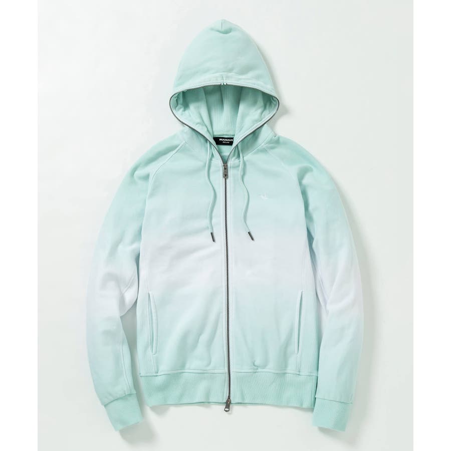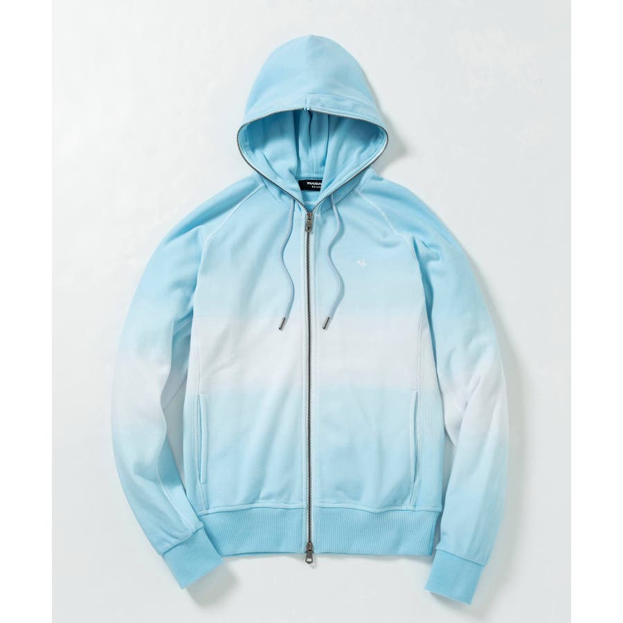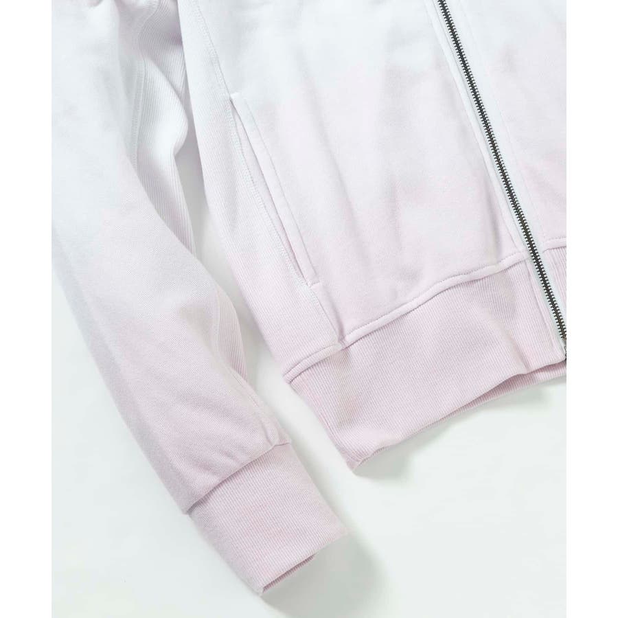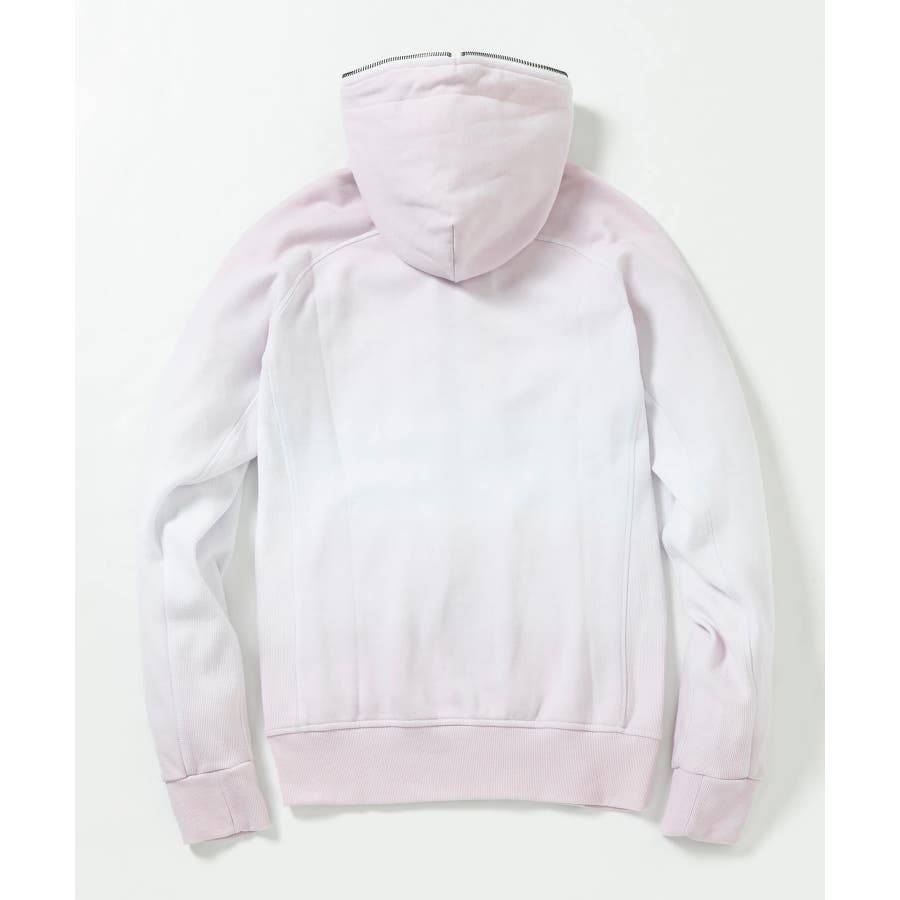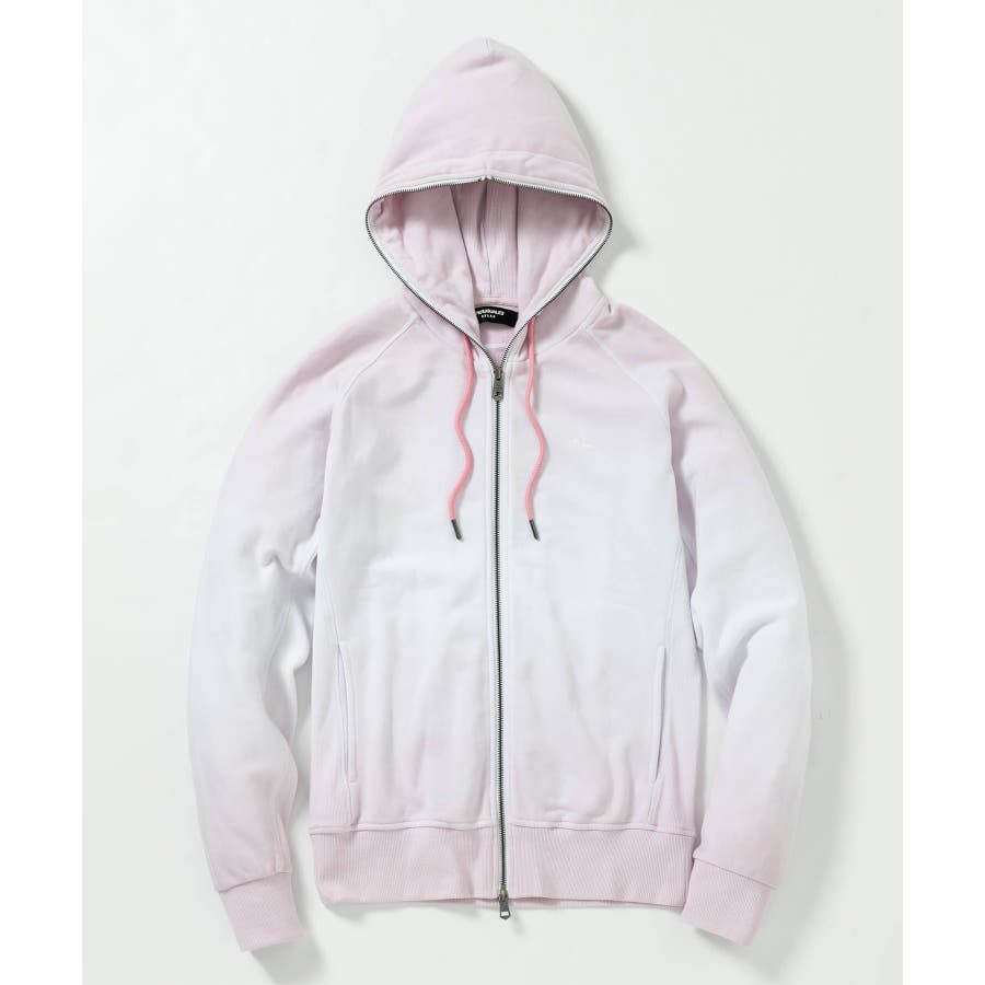 ペールカラーからホワイトへのグラデーションが華やかに彩るジップフーディー。