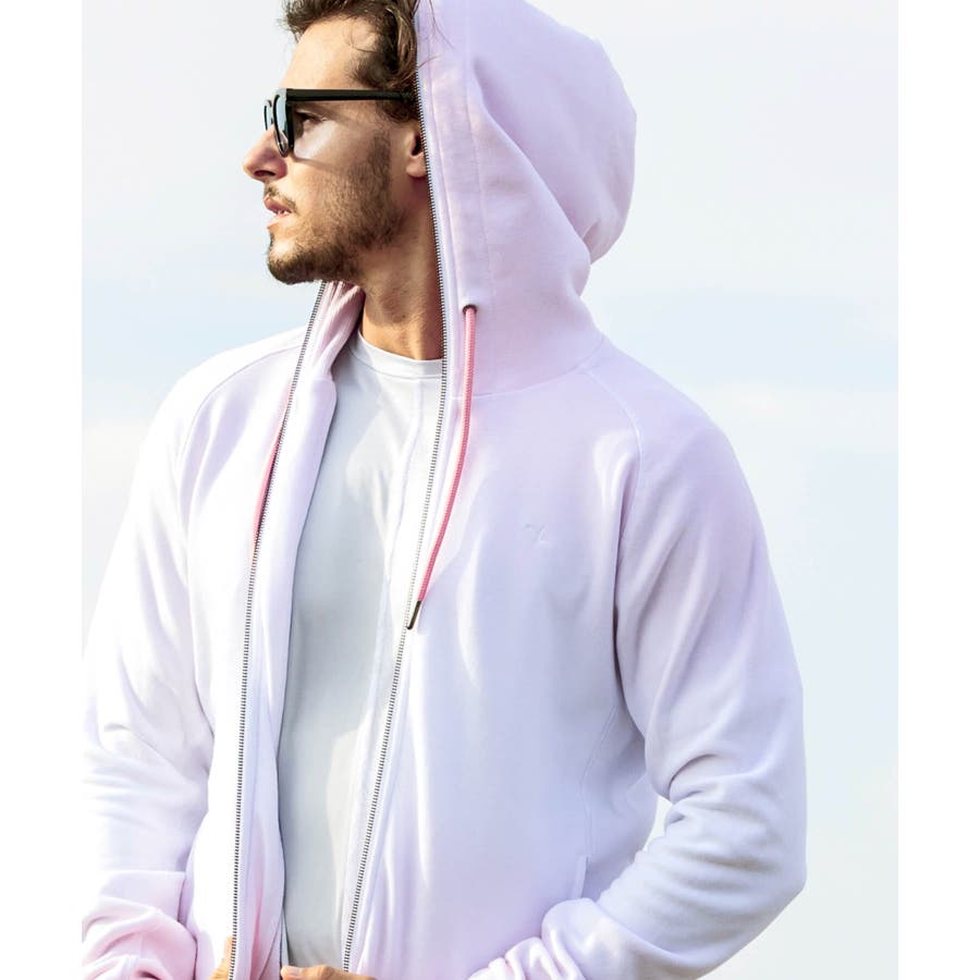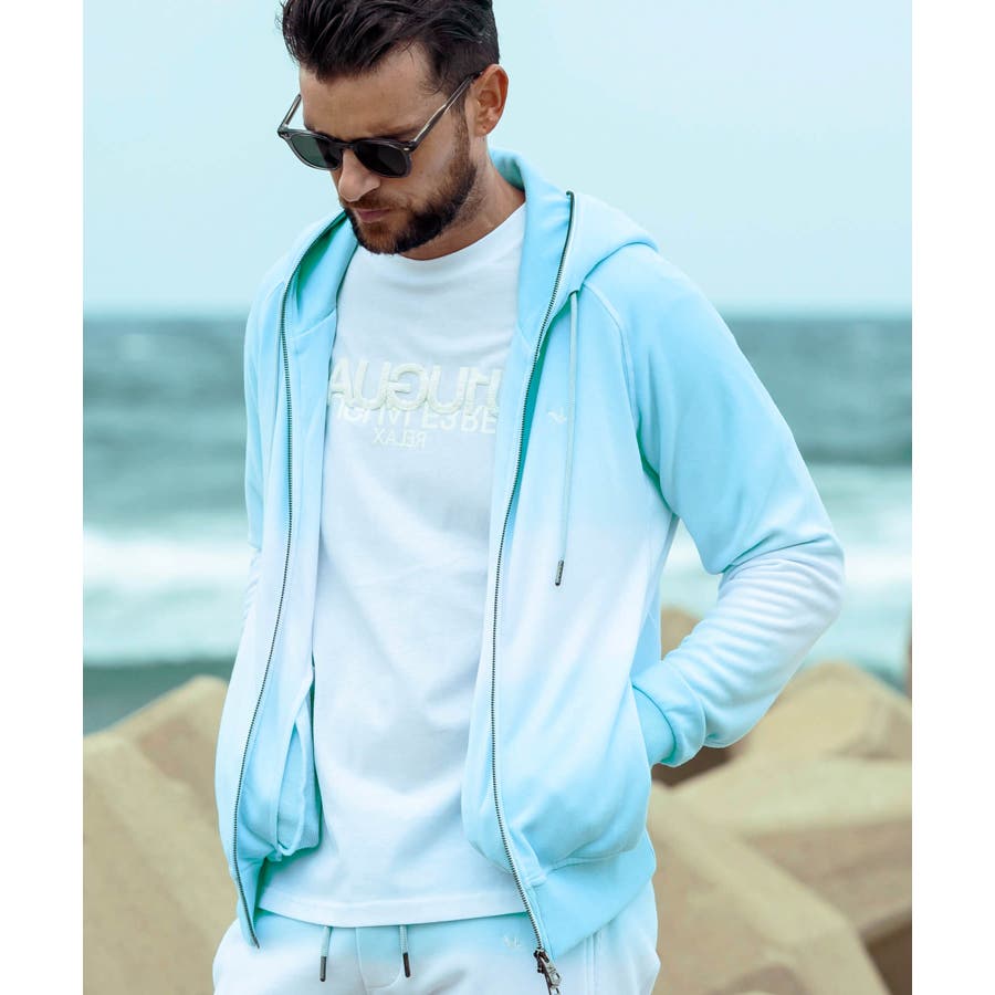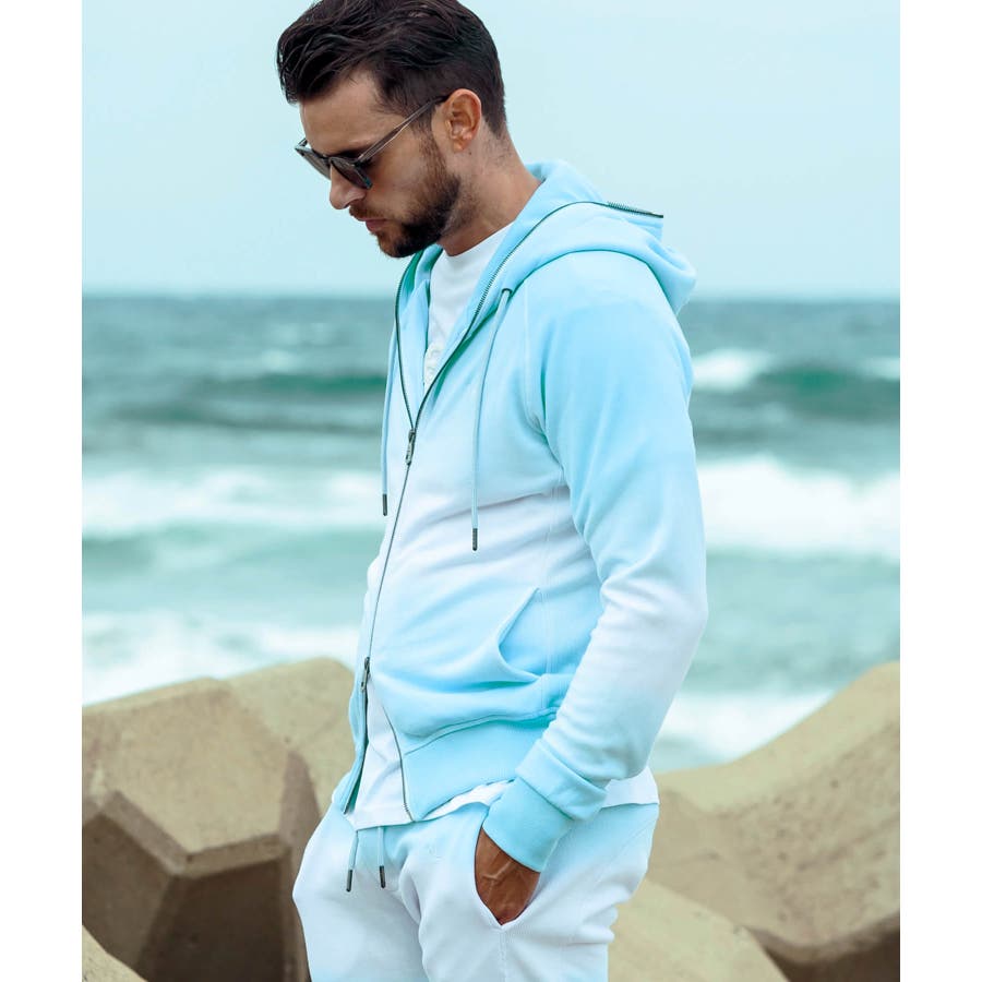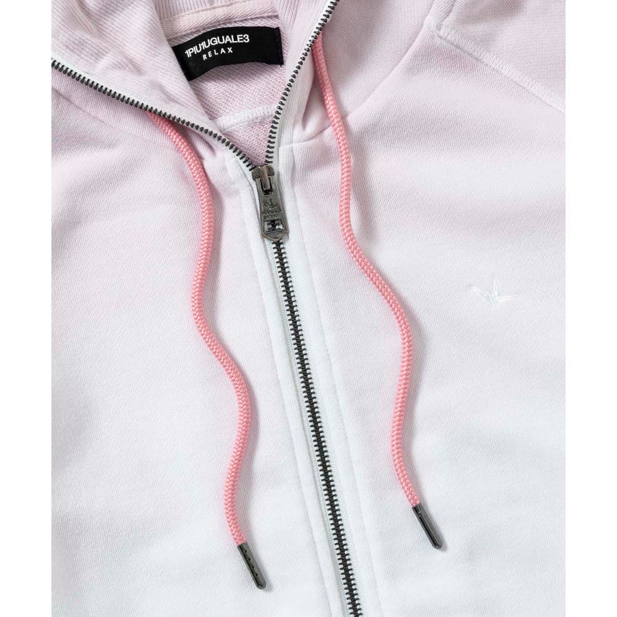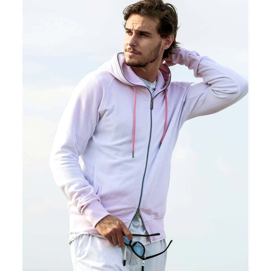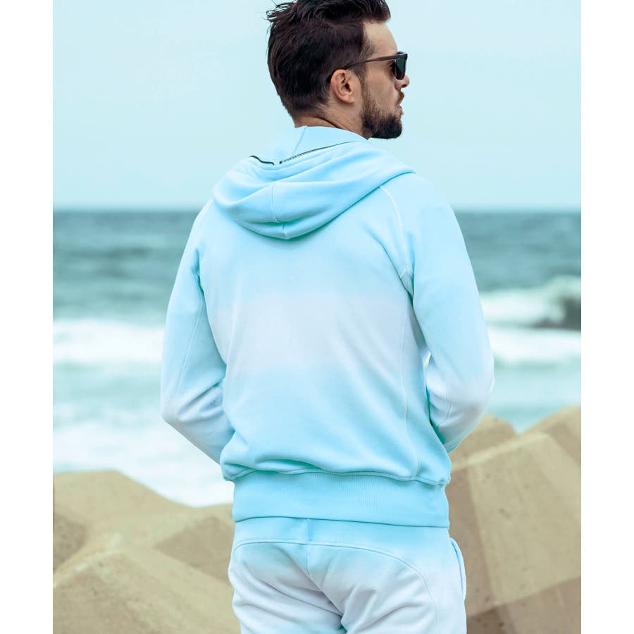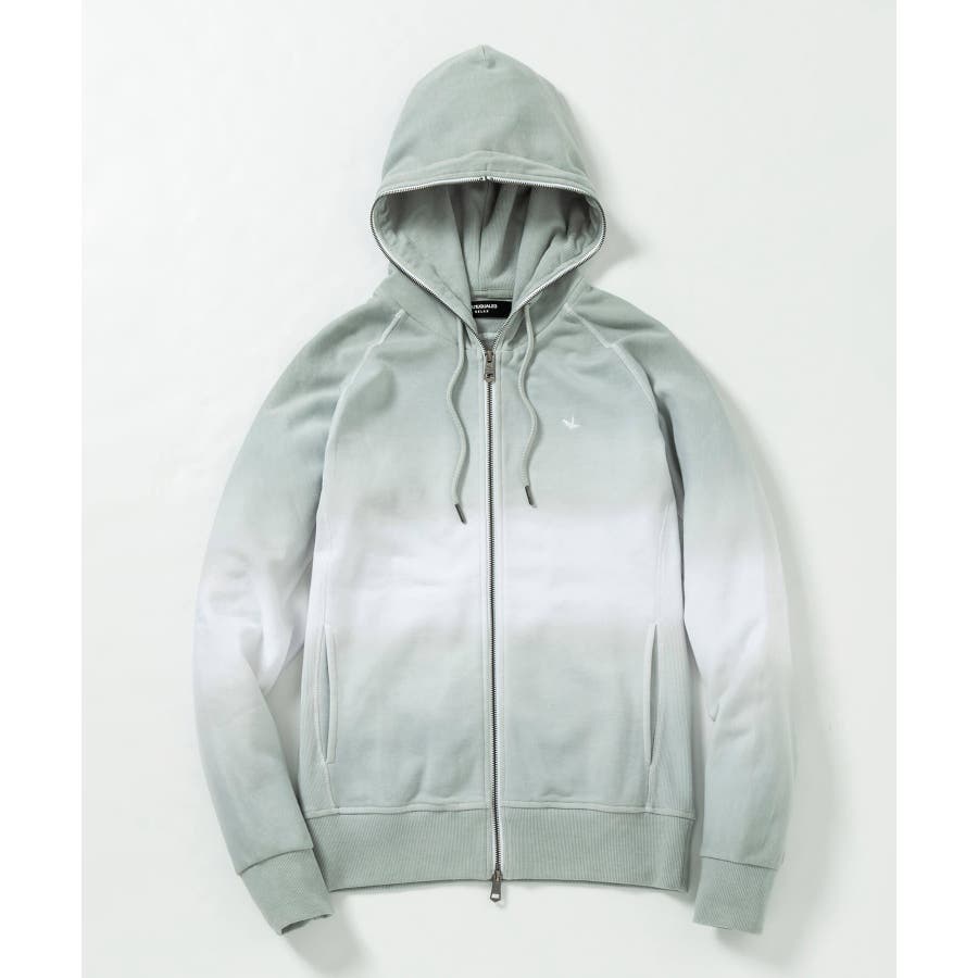 ペールカラーからホワイトへのグラデーションが華やかに彩るジップフーディー。