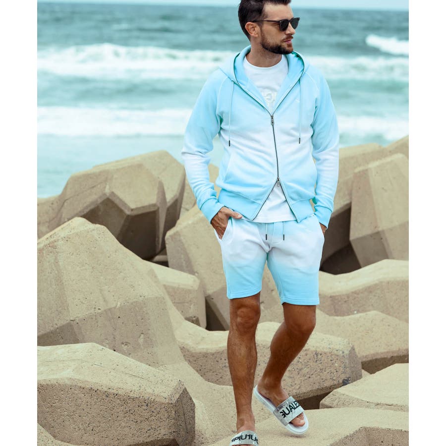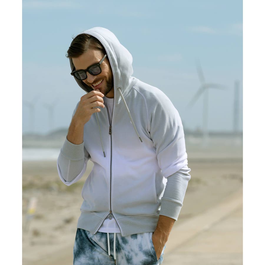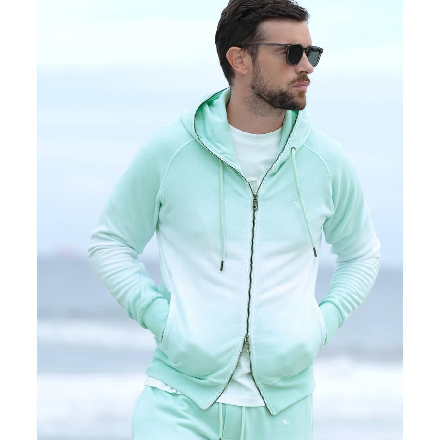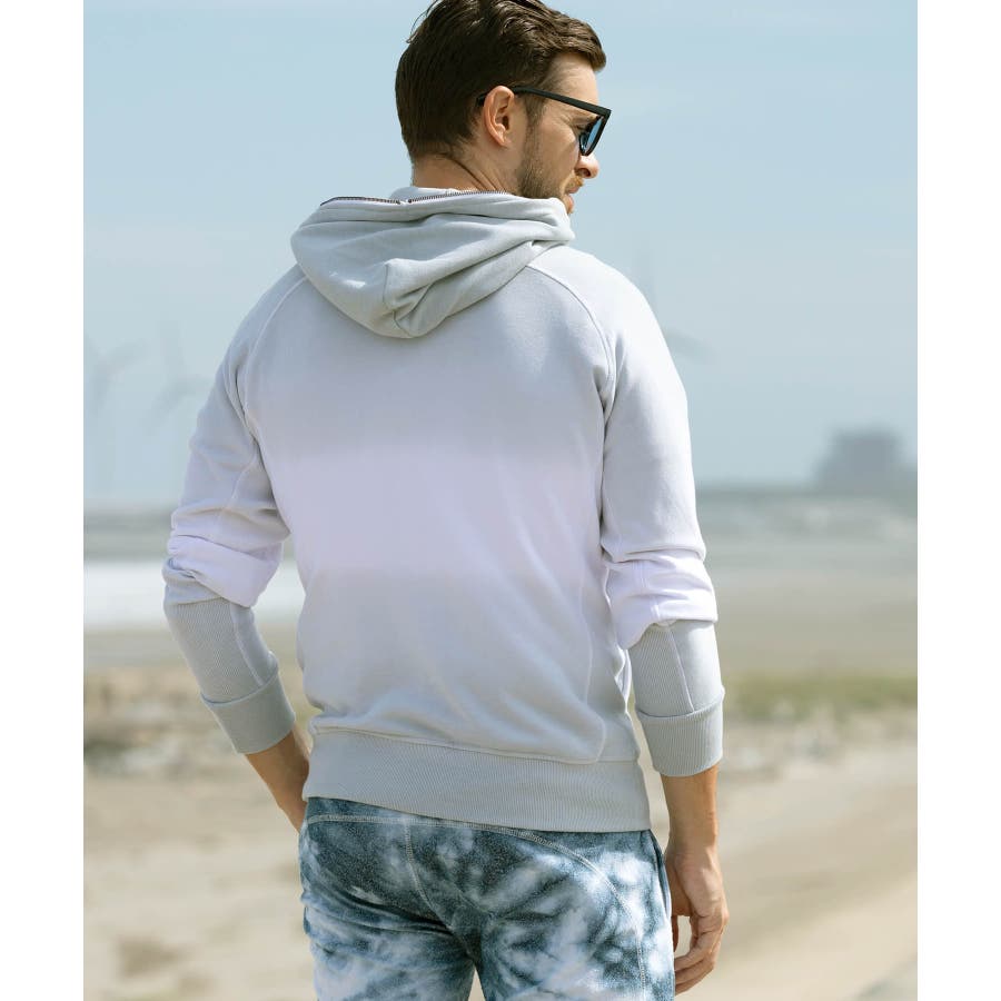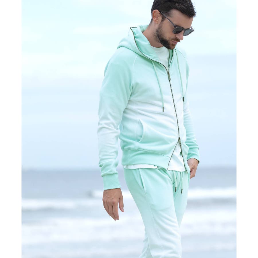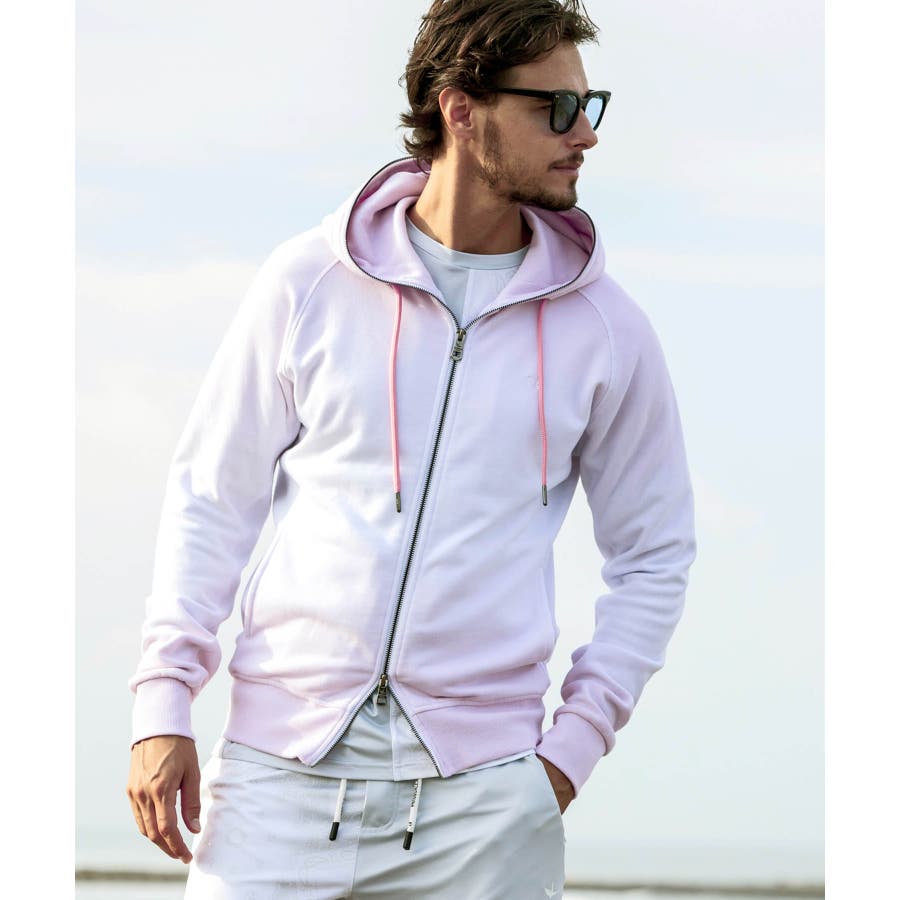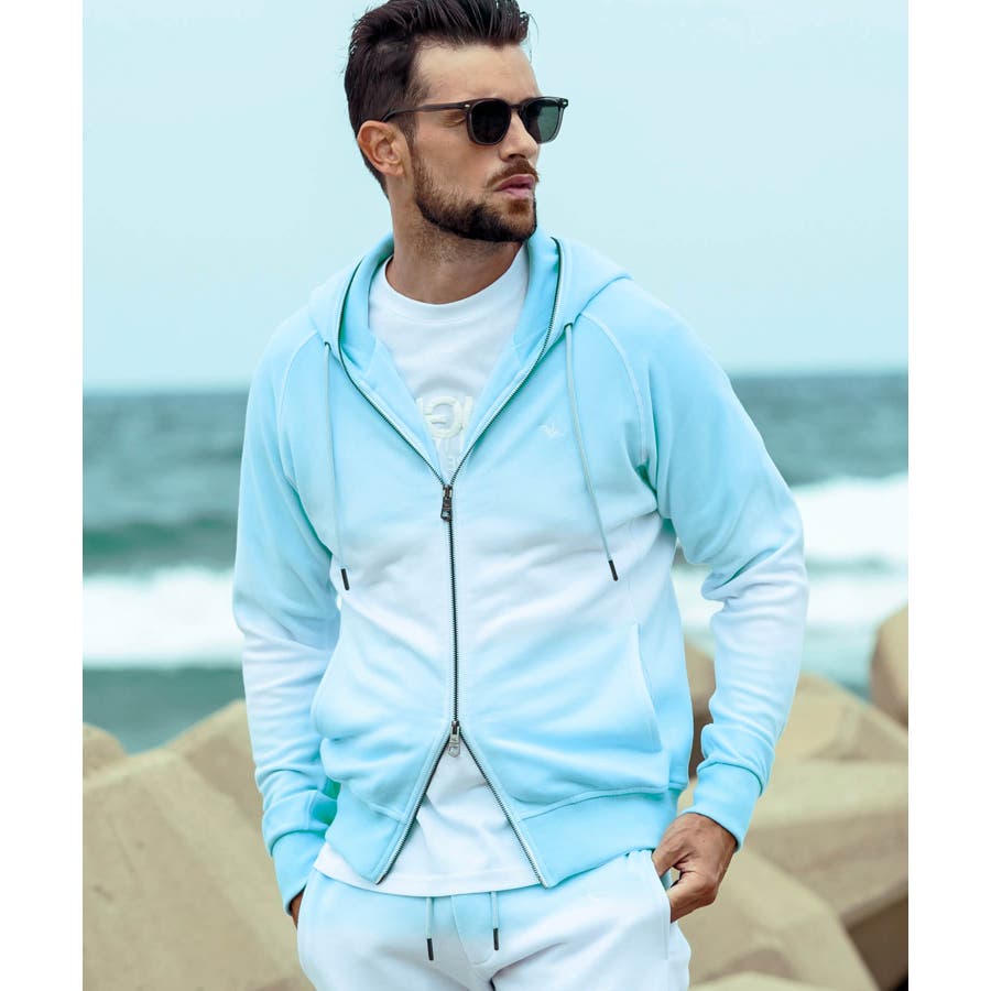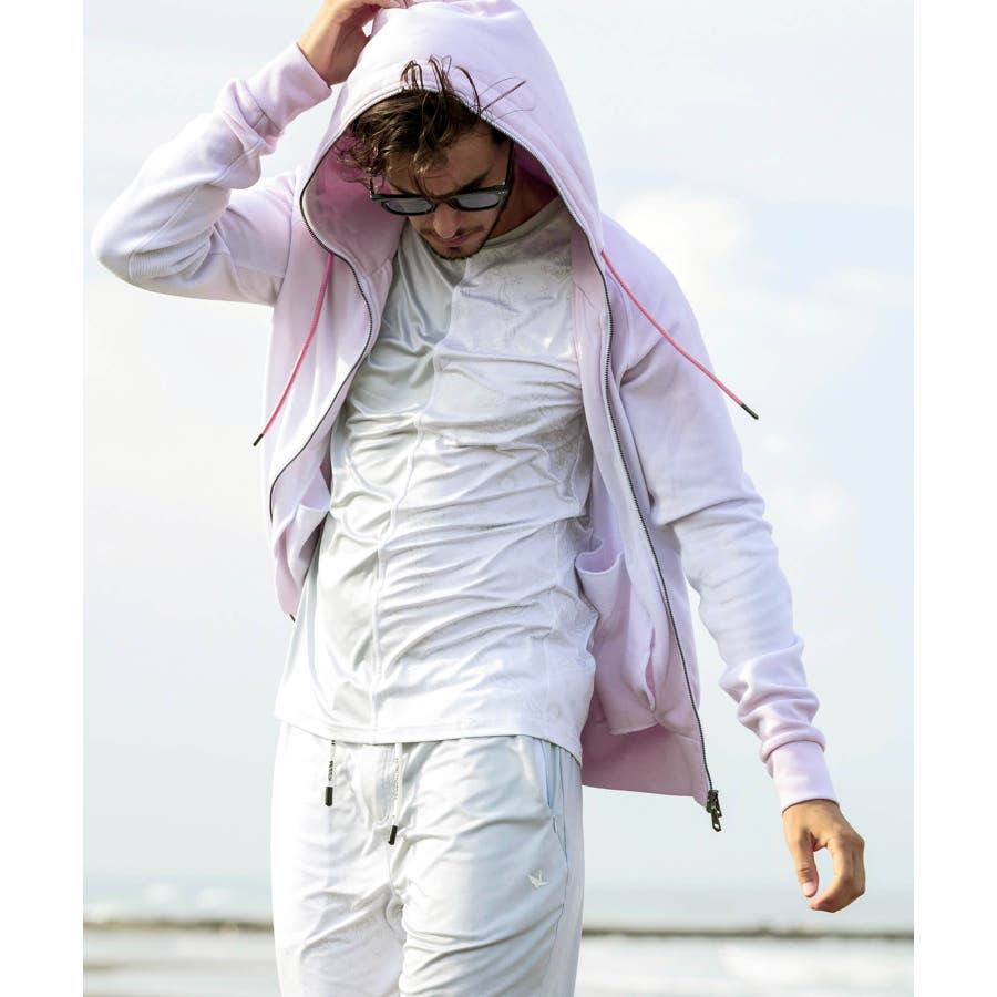 ペールカラーからホワイトへのグラデーションが華やかに彩るジップフーディー。