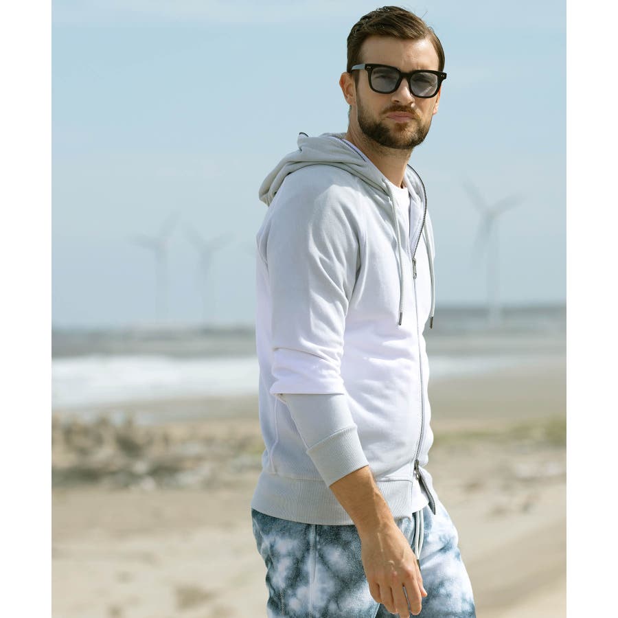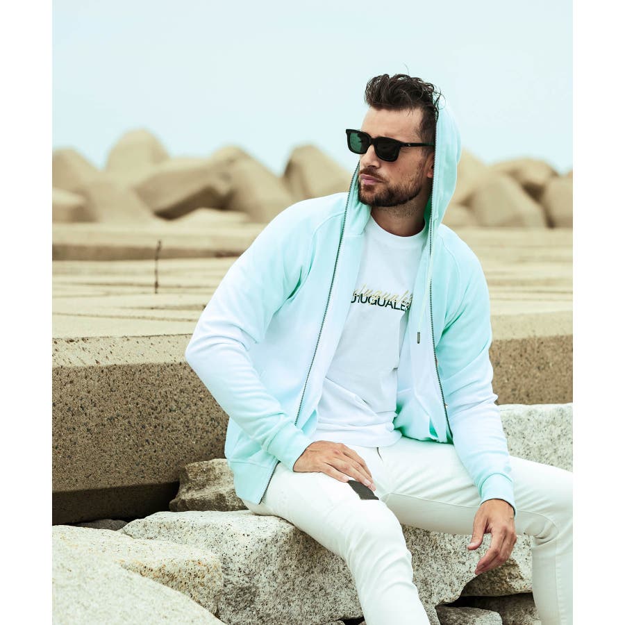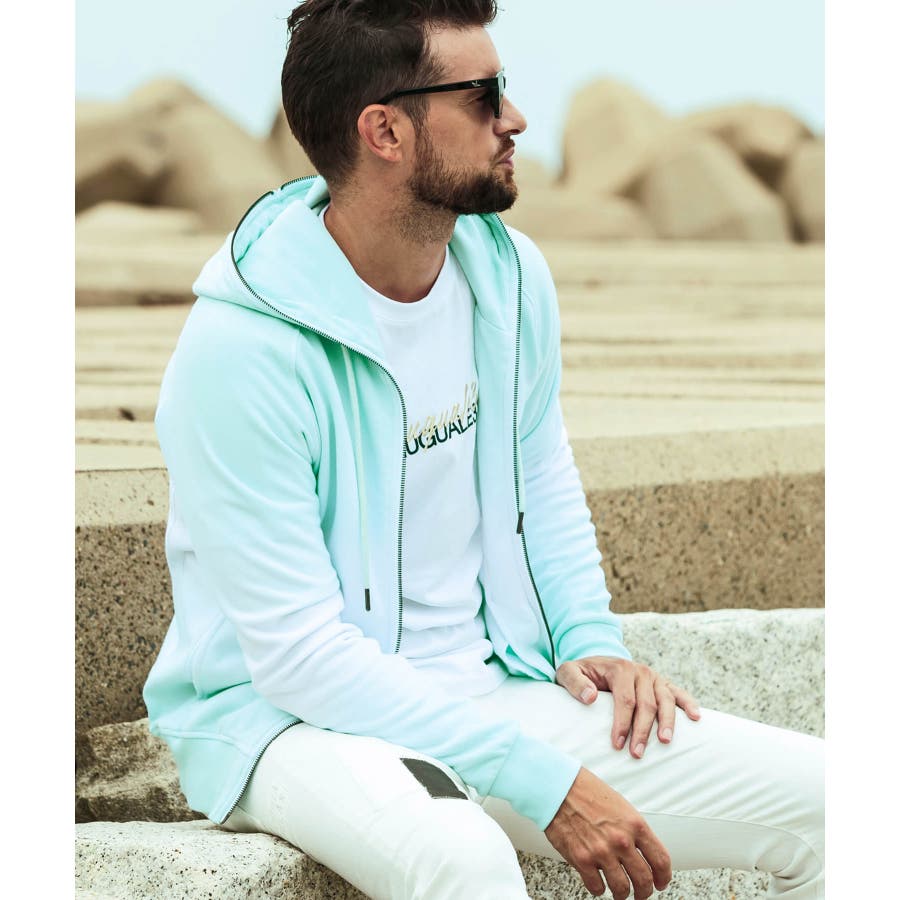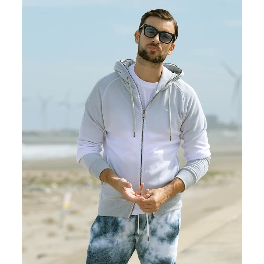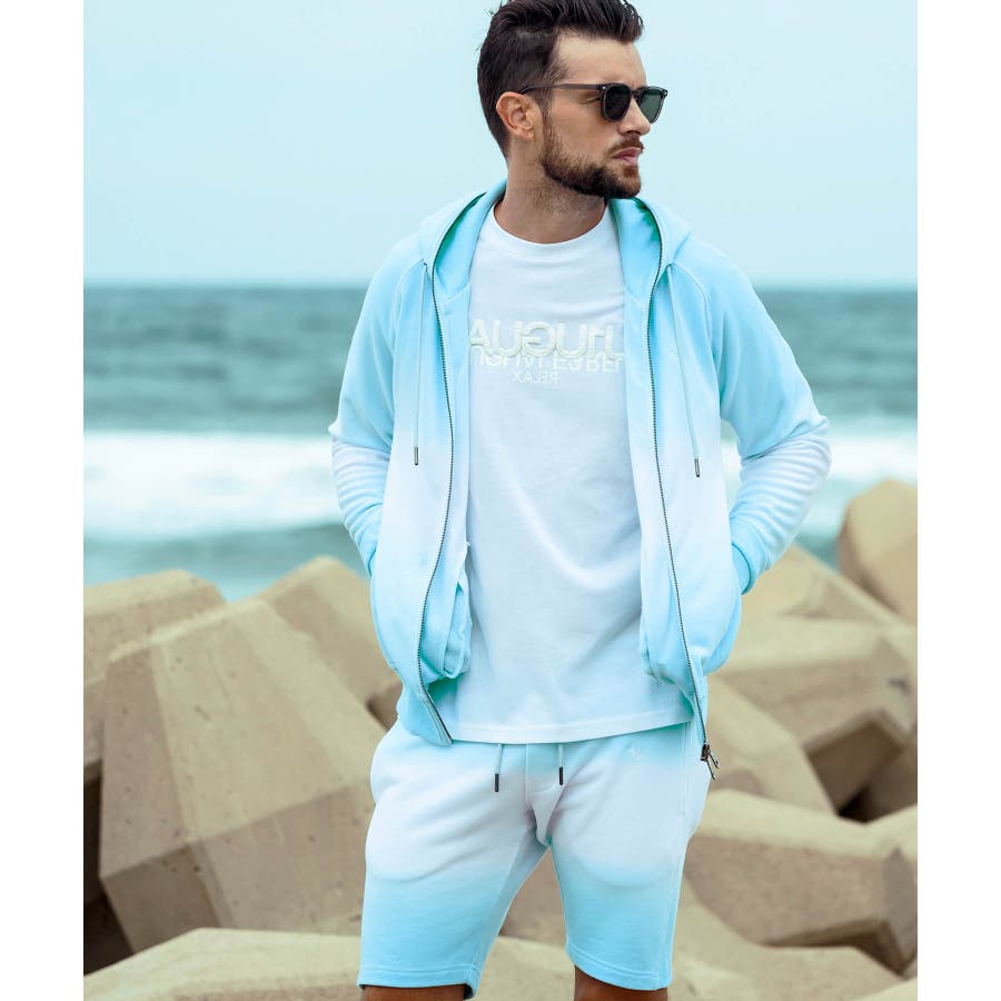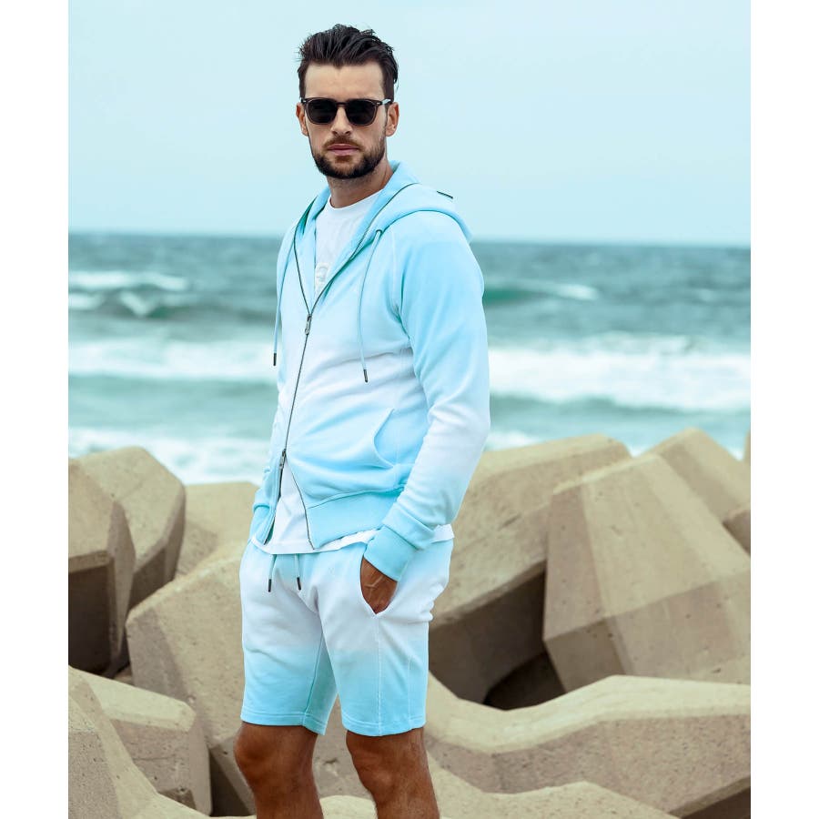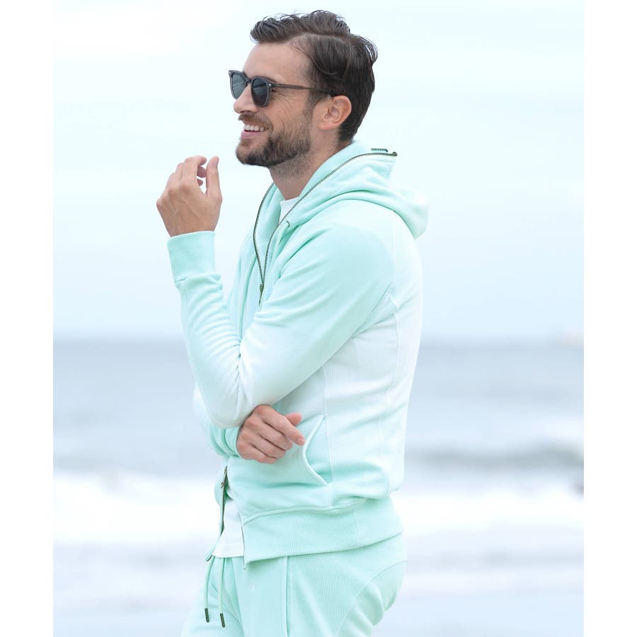 ペールカラーからホワイトへのグラデーションが華やかに彩るジップフーディー。