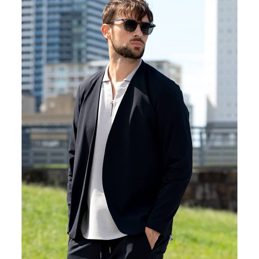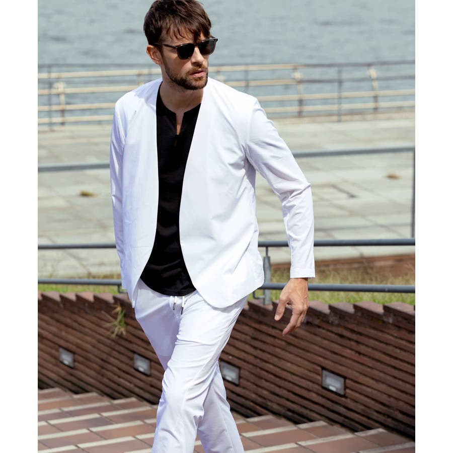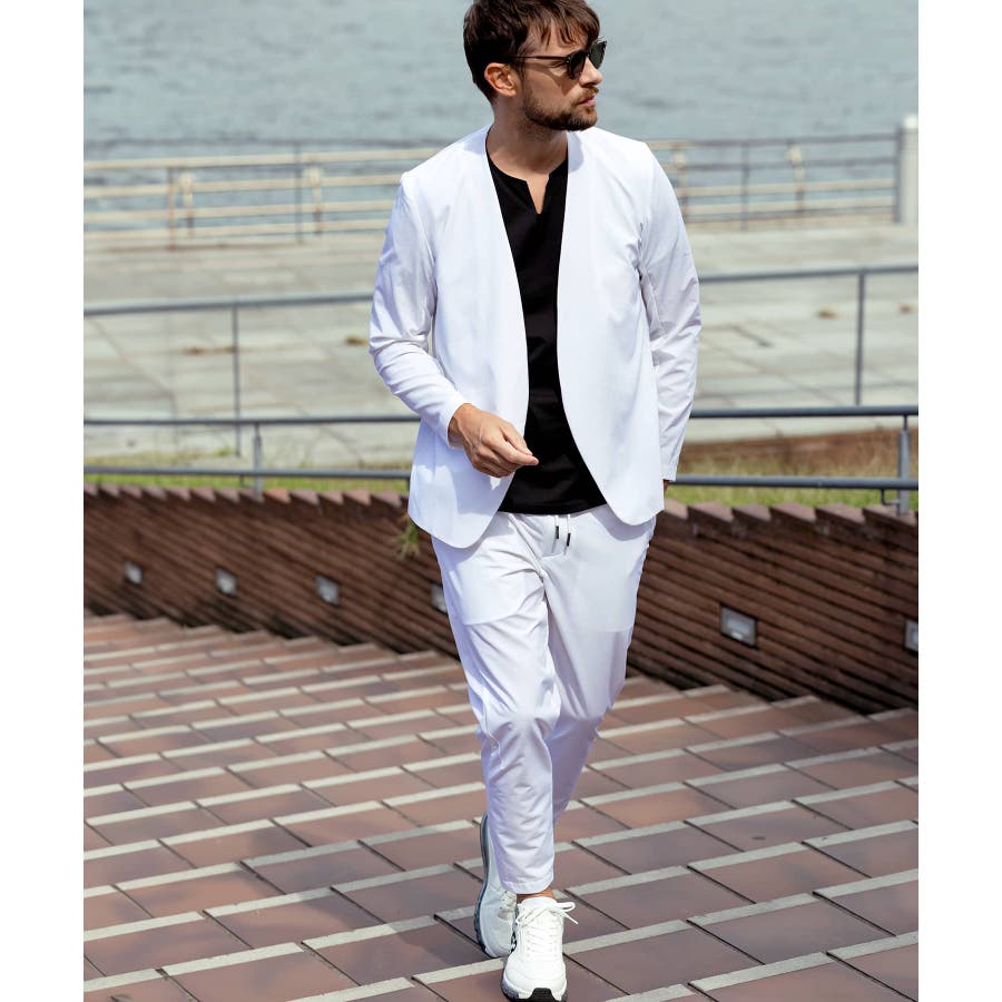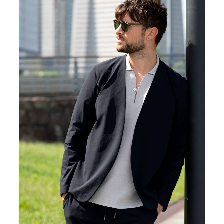 クリーンかつエレガントな雰囲気漂うノーカラージャケット。