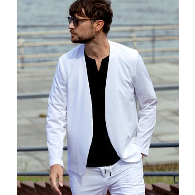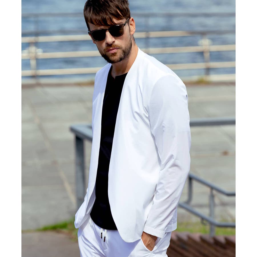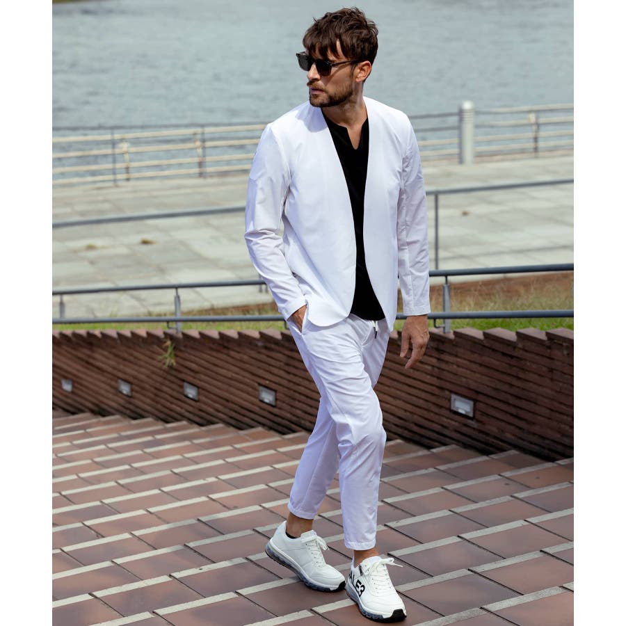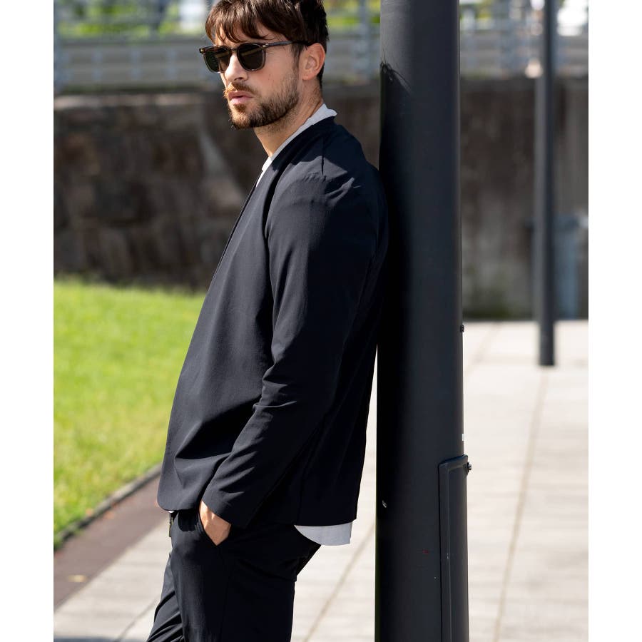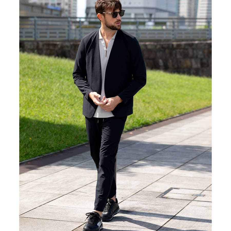 クリーンかつエレガントな雰囲気漂うノーカラージャケット。