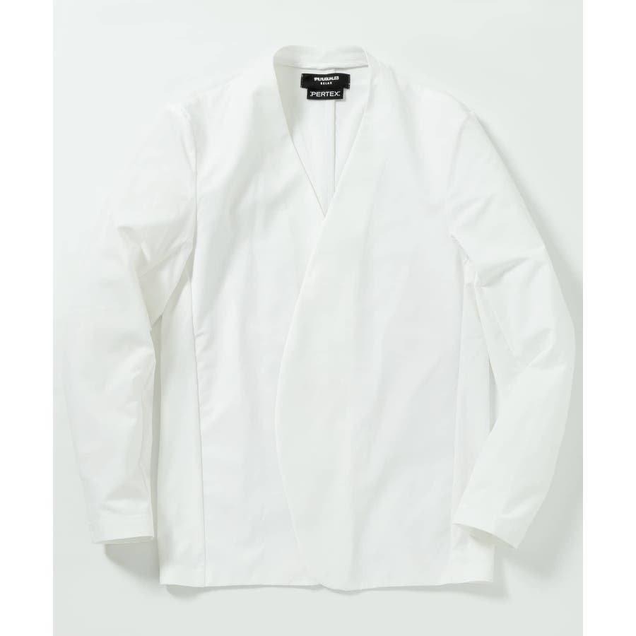 襟のない形状により、インナー次第で様々なニュアンスに変化。