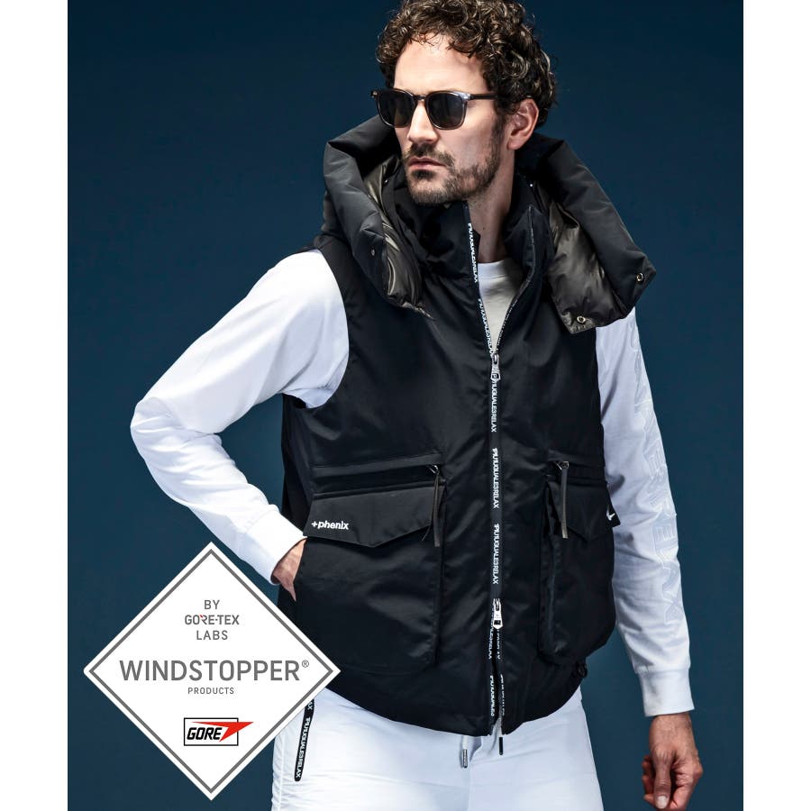 防風・透湿・撥水に優れたWINDSTOPPER PRODUCTS BY GORE-TEX LABS仕様のダウンベスト。