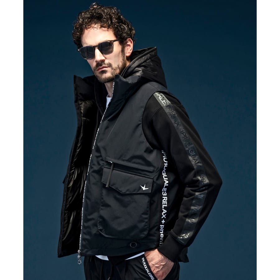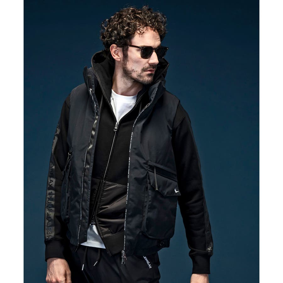 フードを外せばフーディとのレイヤードも可能と着こなしの幅が広がるポイント。